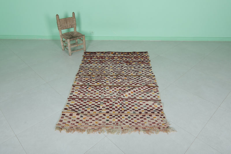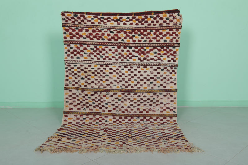 Hand-Knotted Colorful Kilim Rug 3.7 FT X 5.7 FT - Vibrant Moroccan Design