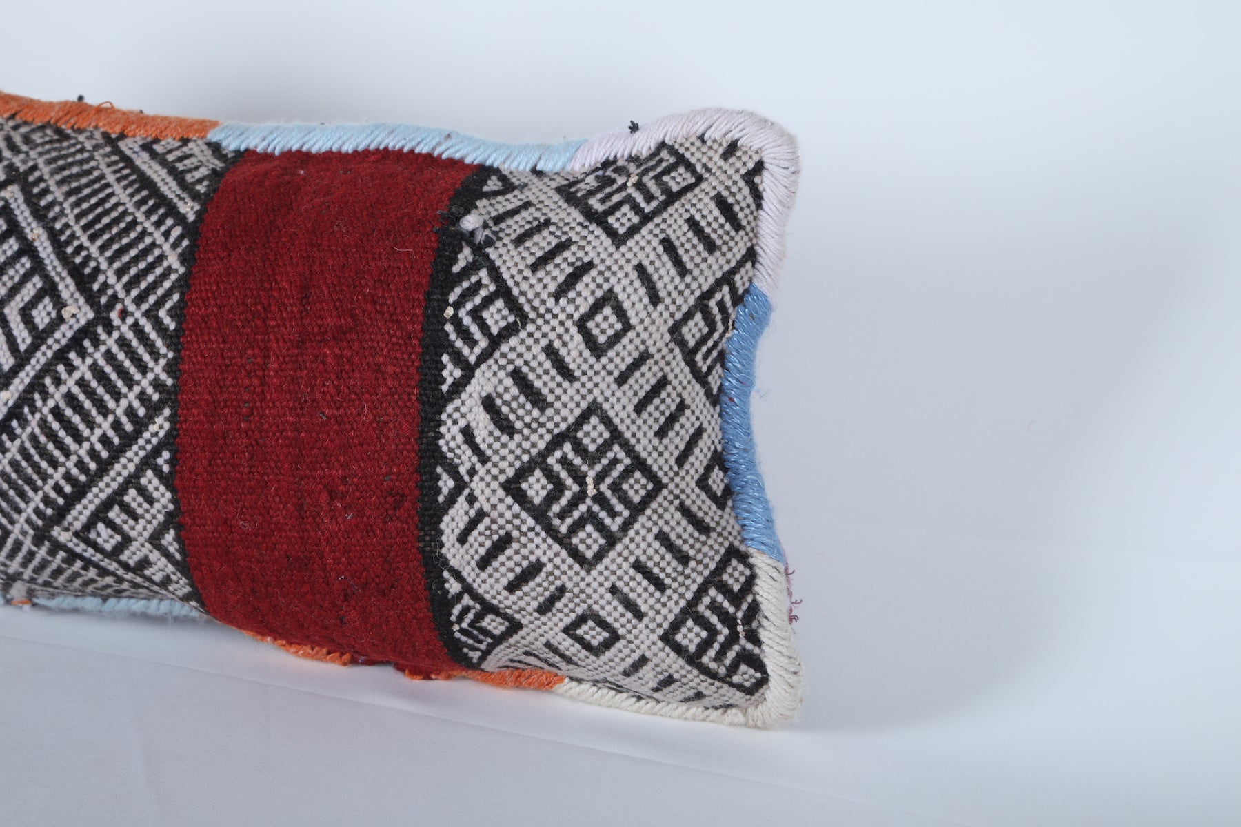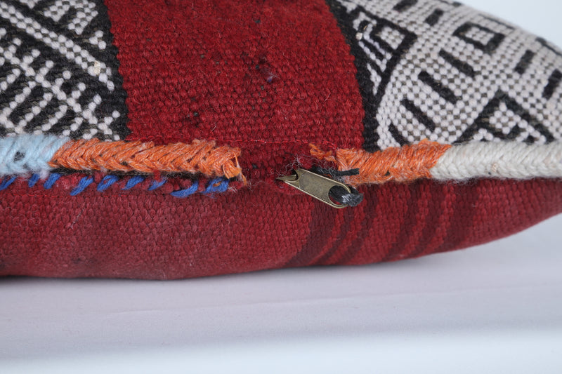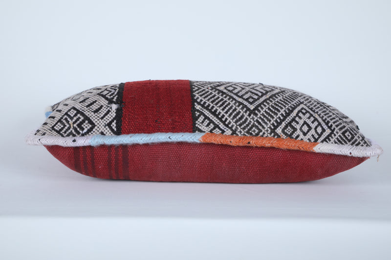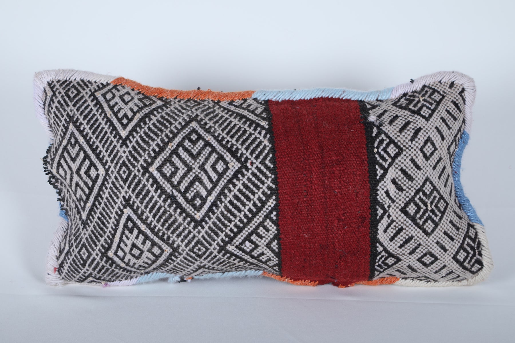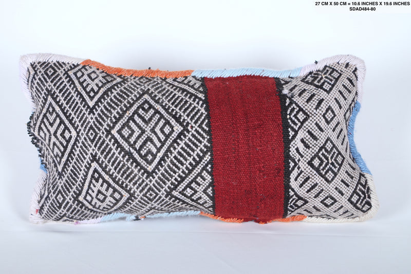 Add authentic Moroccan flair to your décor with this handwoven Moroccan Pillow, sized at 10.6 x 19.6 inches (27 CM x 50 CM). Featuring a striking blend of black and white geometric patterns with a bold red stripe, this artisan pillow combines tradition with modern style. Perfect for adding texture and color to sofas, beds, or accent chairs, it brings global charm to any space.