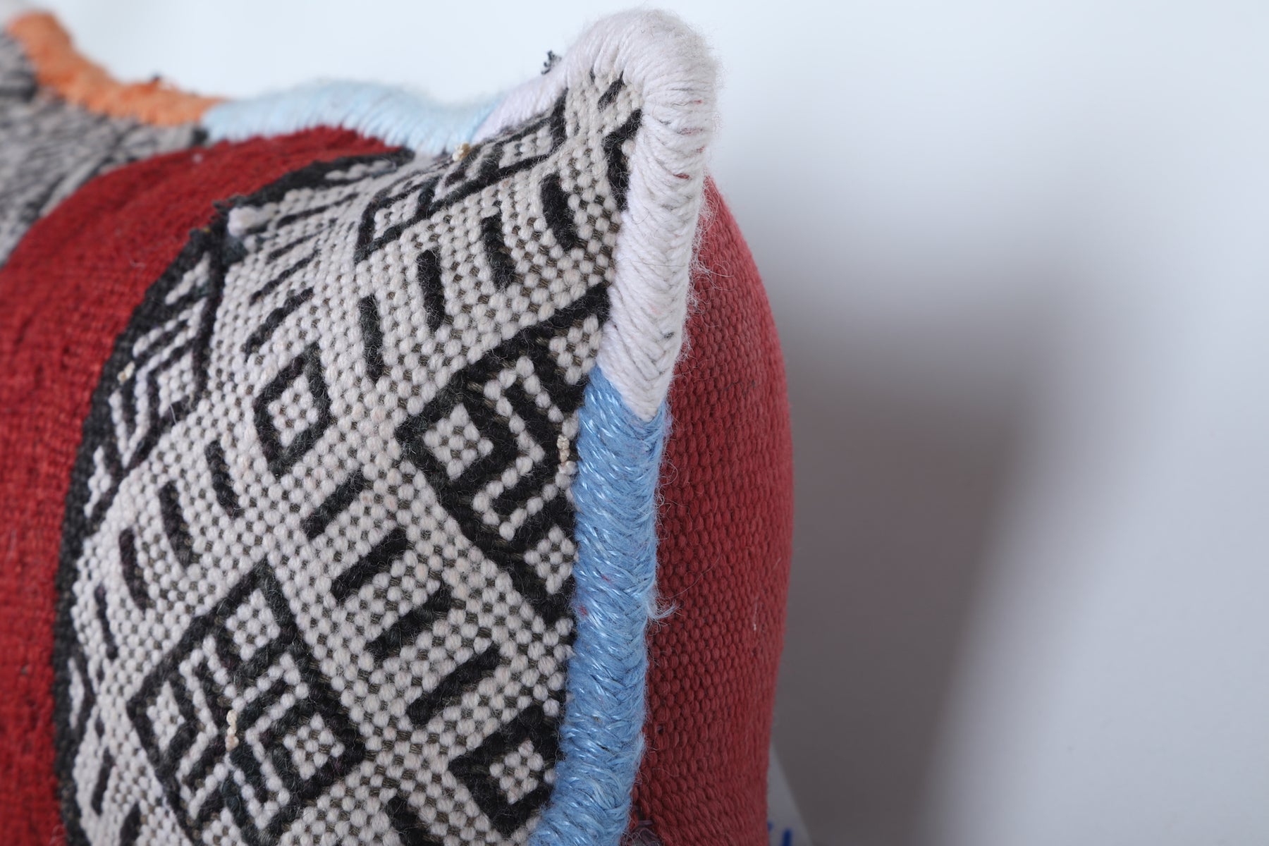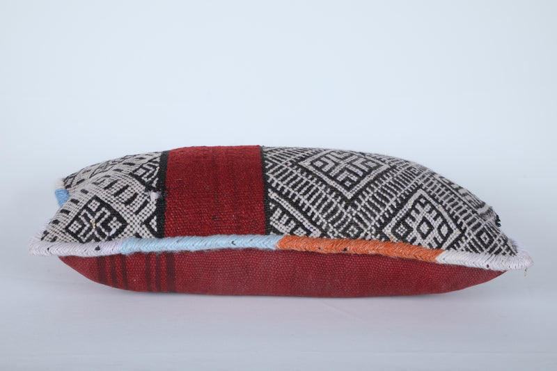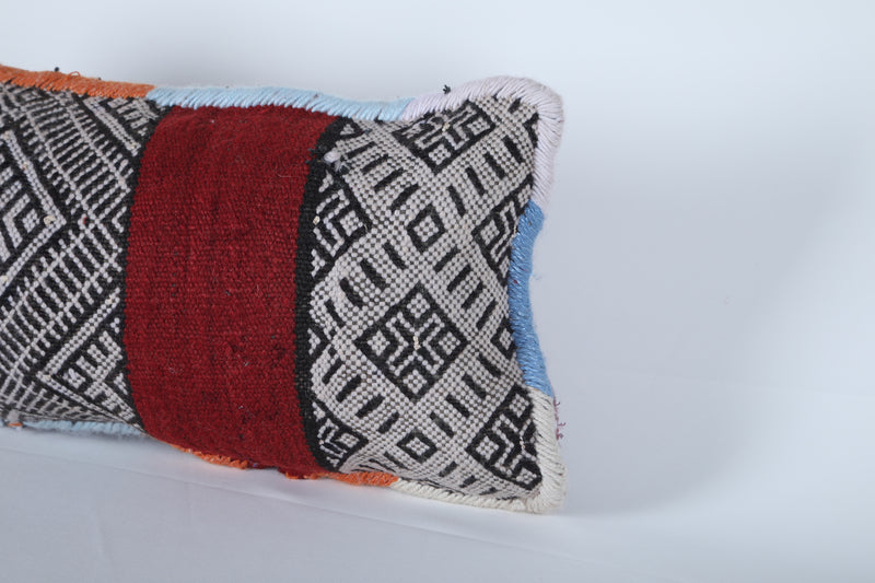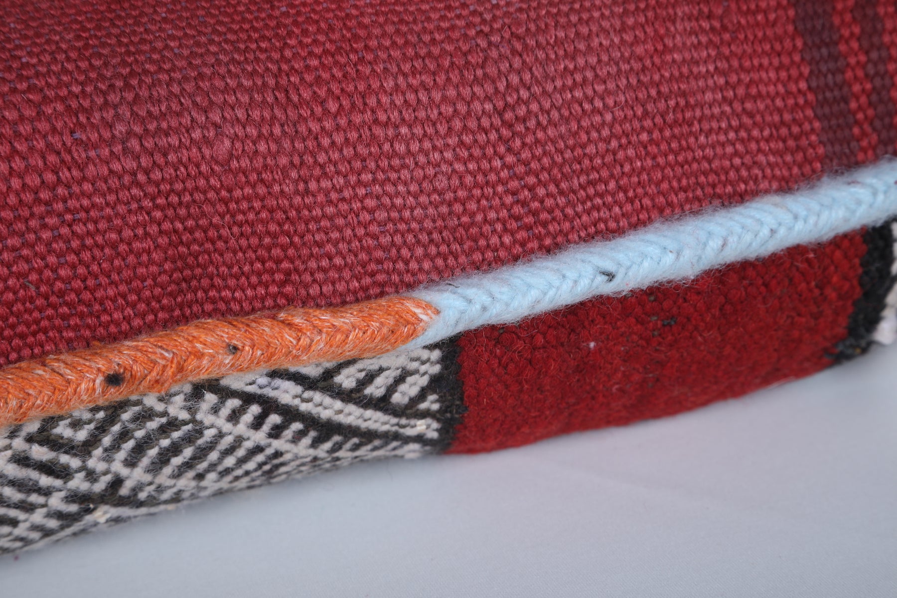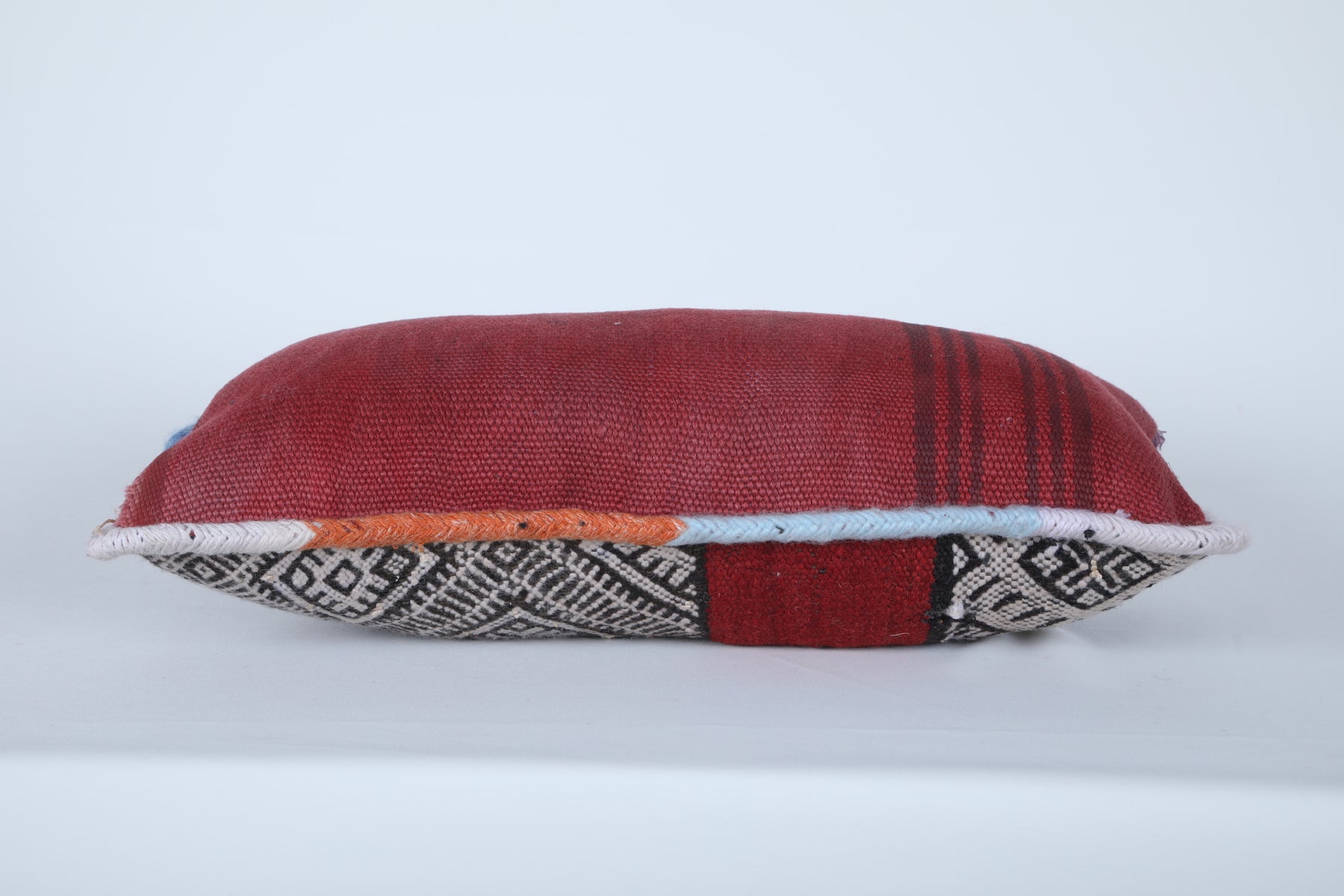 Add authentic Moroccan flair to your décor with this handwoven Moroccan Pillow, sized at 10.6 x 19.6 inches (27 CM x 50 CM). Featuring a striking blend of black and white geometric patterns with a bold red stripe, this artisan pillow combines tradition with modern style. Perfect for adding texture and color to sofas, beds, or accent chairs, it brings global charm to any space.