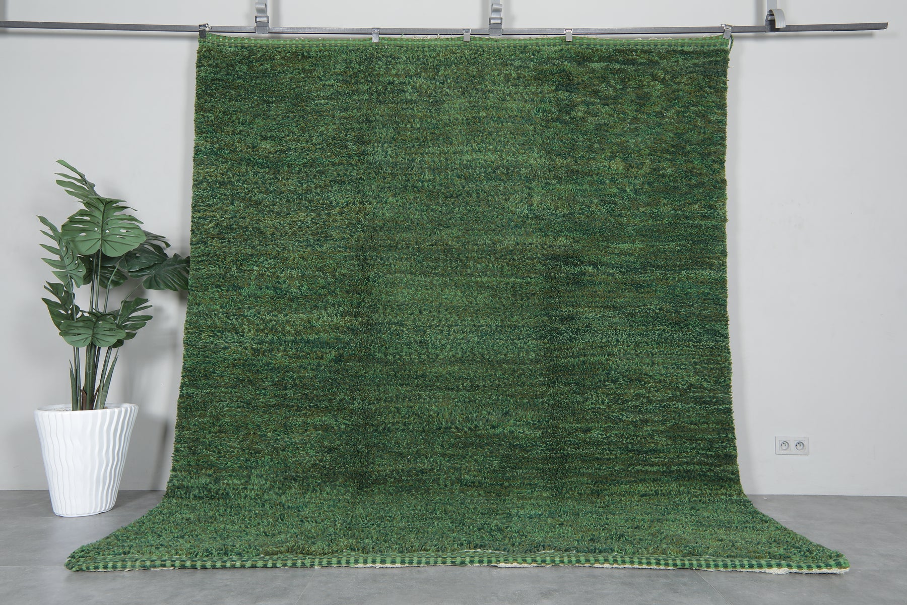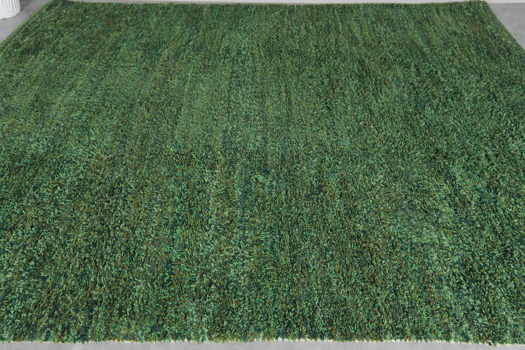 Immerse yourself in the luxurious beauty of this hand-knotted Moroccan rug, meticulously crafted from 100% premium wool. Designed to bring warmth, sophistication, and a touch of nature into your home, its rich green hue creates a serene and stylish atmosphere. The plush, ultra-soft texture provides unmatched comfort underfoot, making it an inviting addition to living rooms, bedrooms, and cozy spaces.