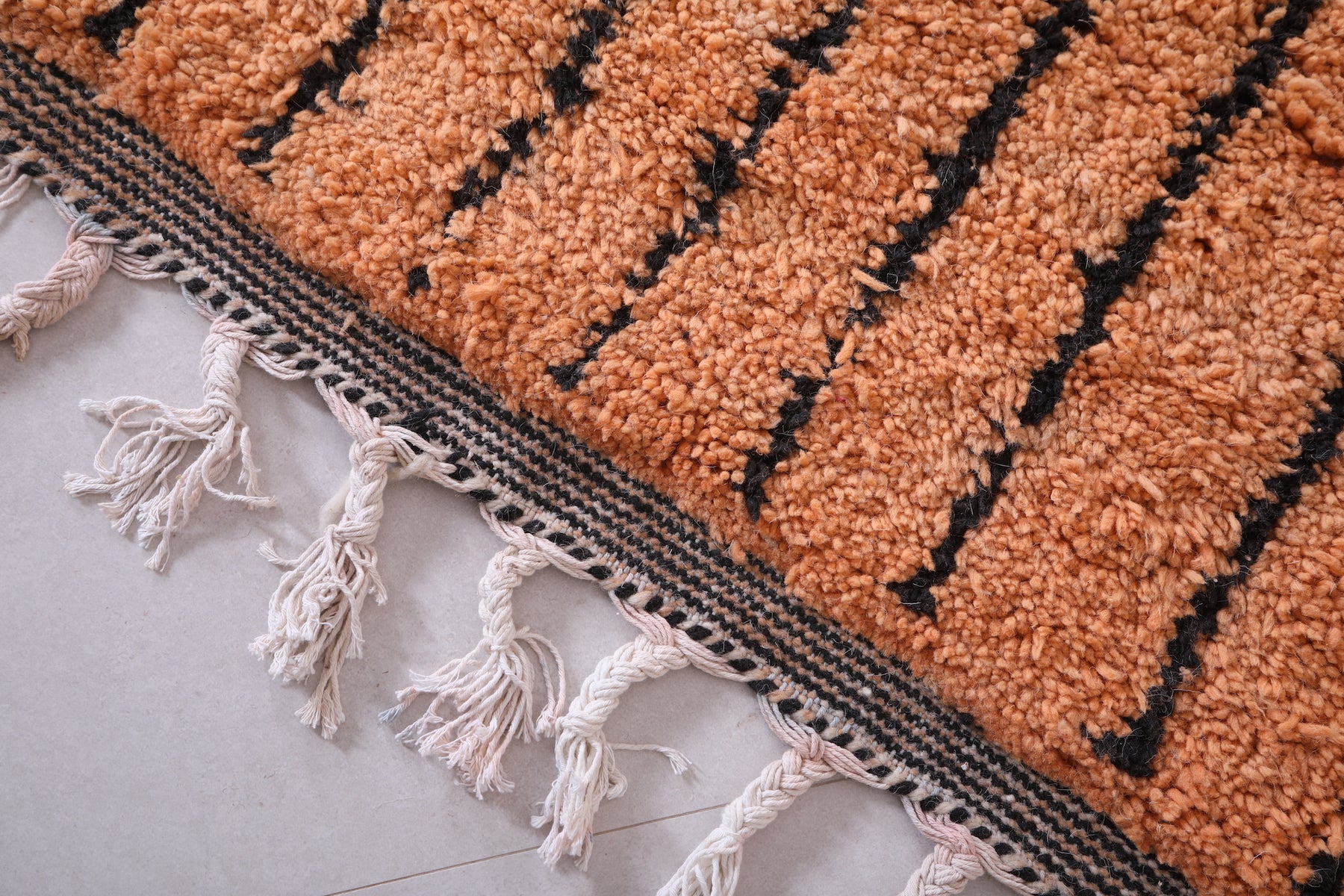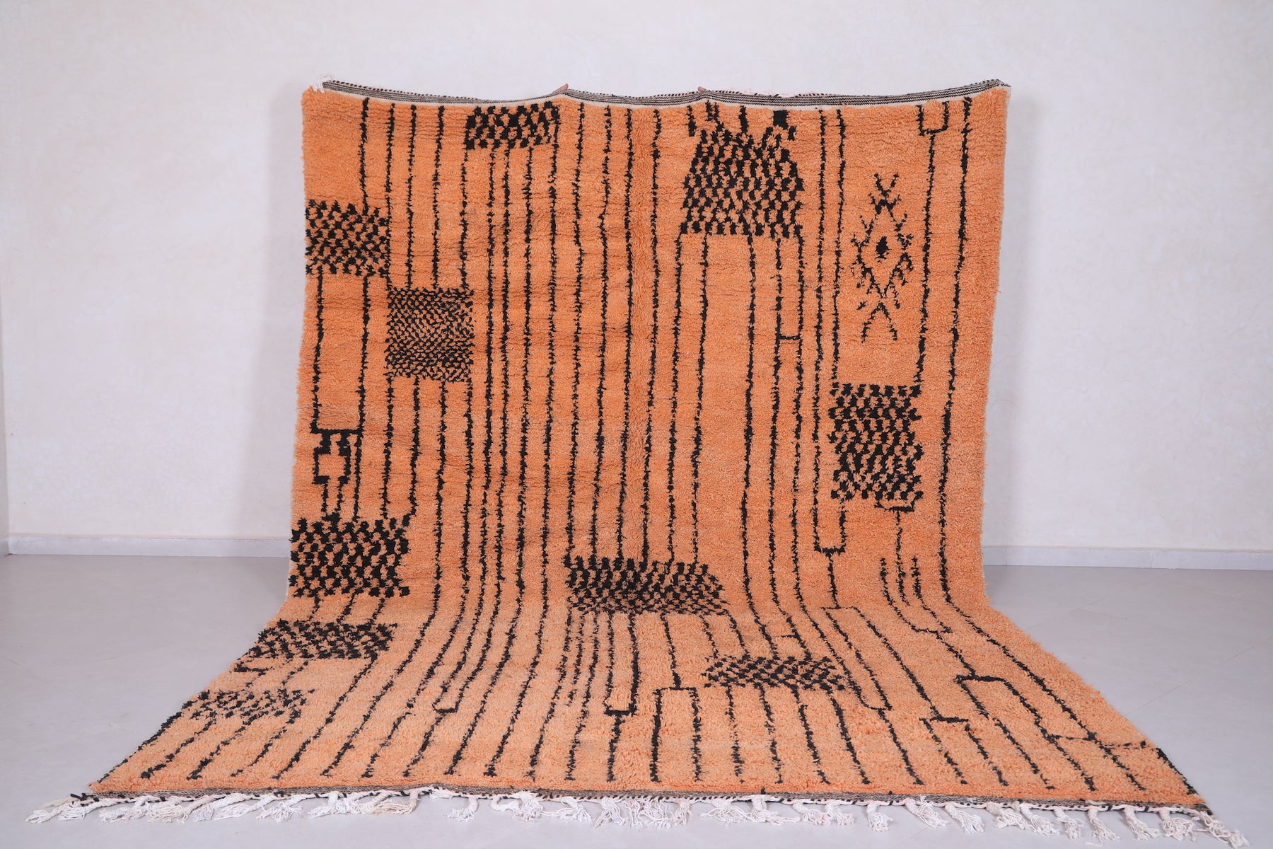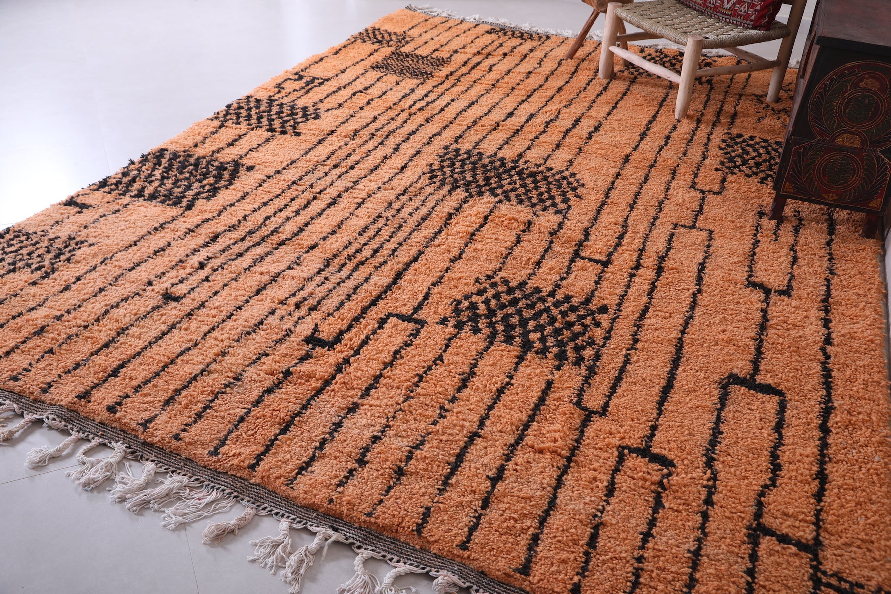 Add timeless Moroccan artistry to your home with this hand-knotted Berber rug, crafted entirely from natural wool. Its bold geometric motifs over a warm burnt orange base create a dynamic focal point perfect for boho, eclectic, or earthy modern interiors.