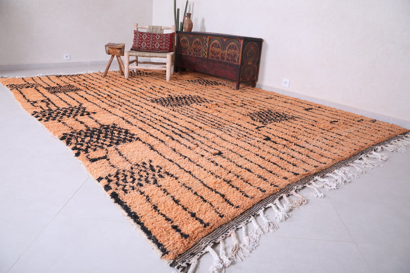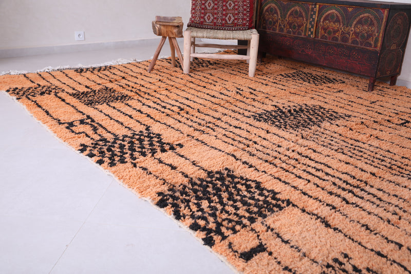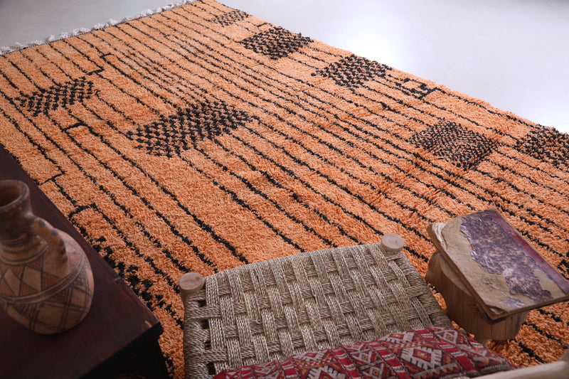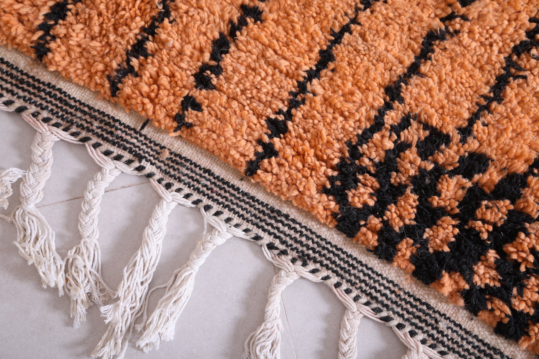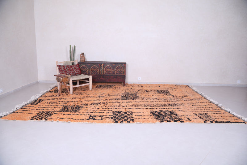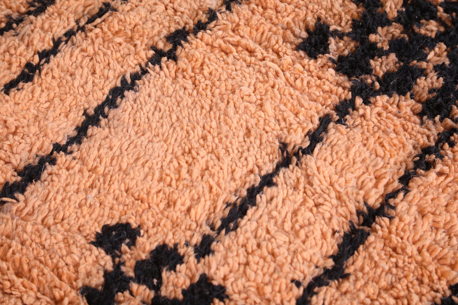 Add timeless Moroccan artistry to your home with this hand-knotted Berber rug, crafted entirely from natural wool. Its bold geometric motifs over a warm burnt orange base create a dynamic focal point perfect for boho, eclectic, or earthy modern interiors.