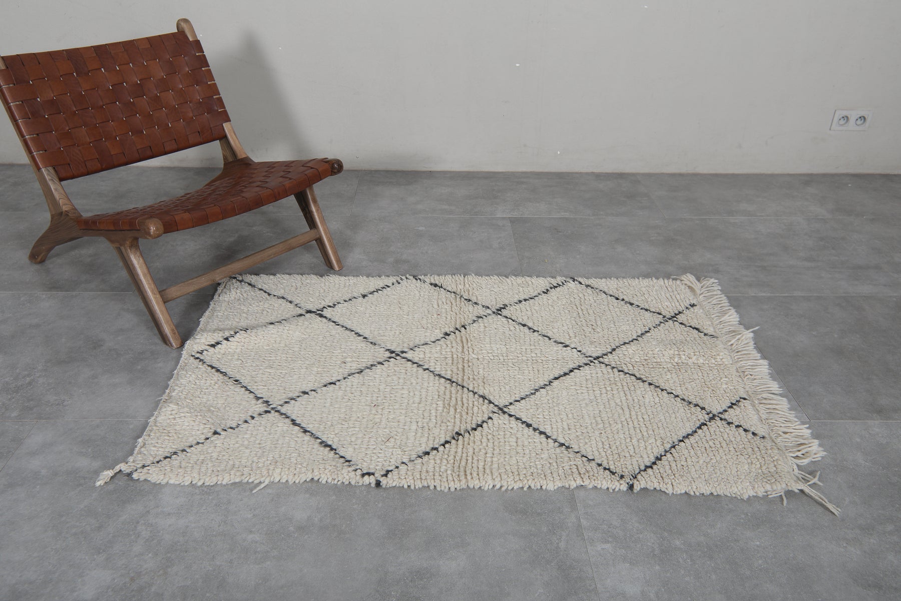 Handmade Beige Beni Ourain Rug – 3 x 4.8 ft Moroccan Wool Carpet