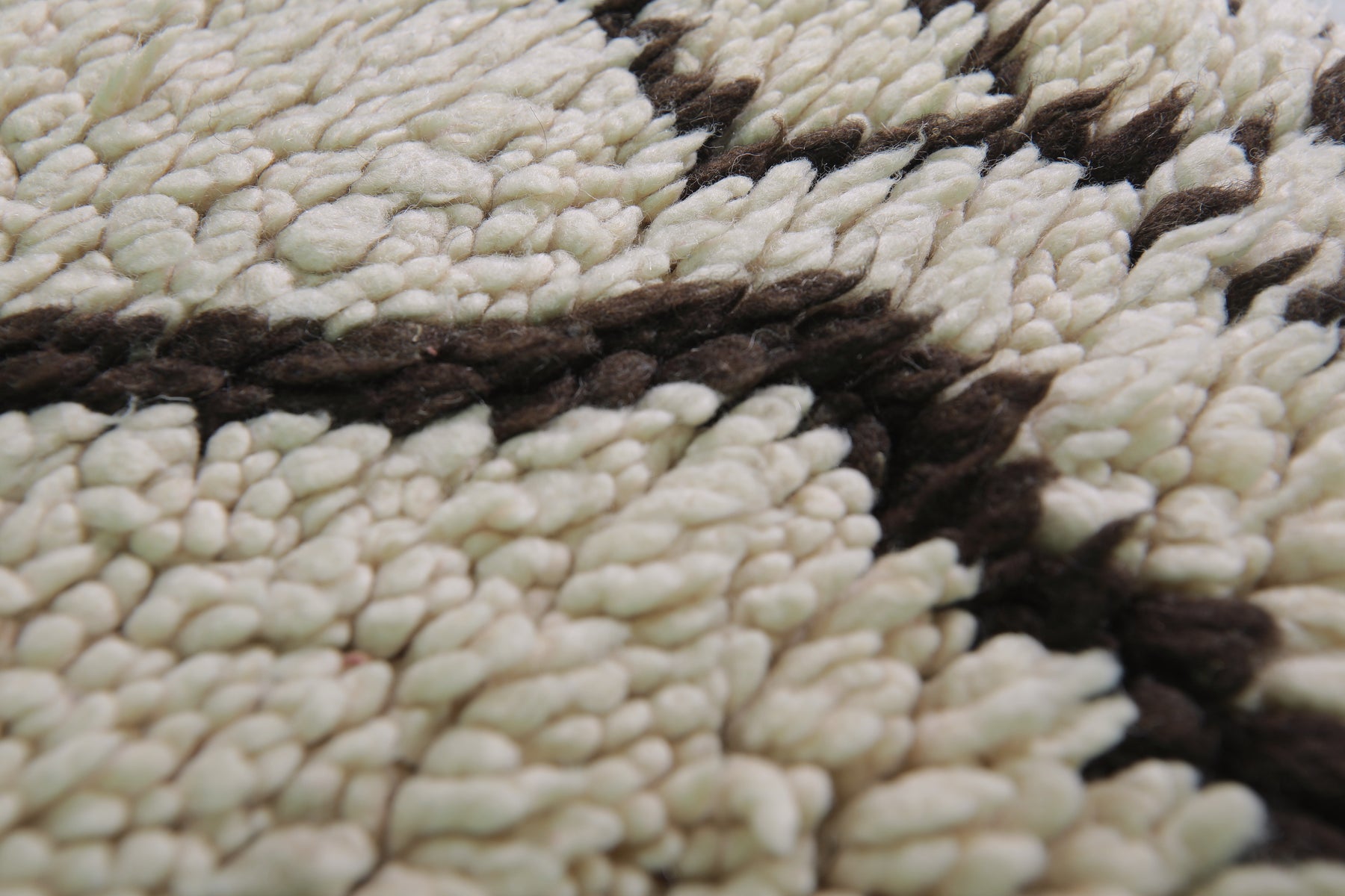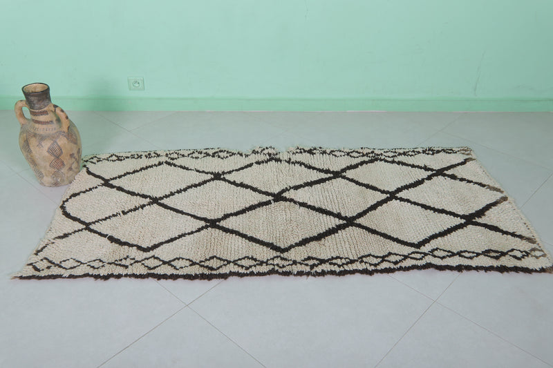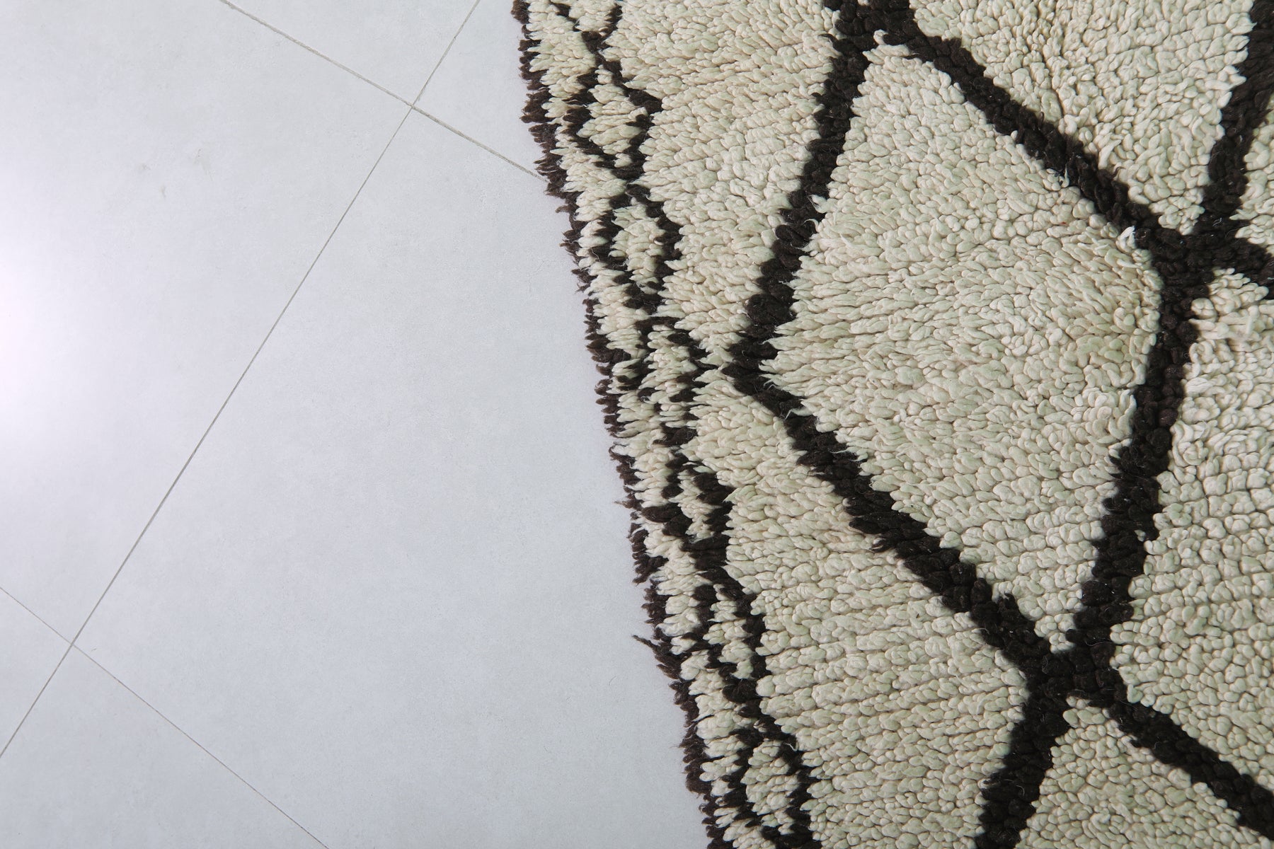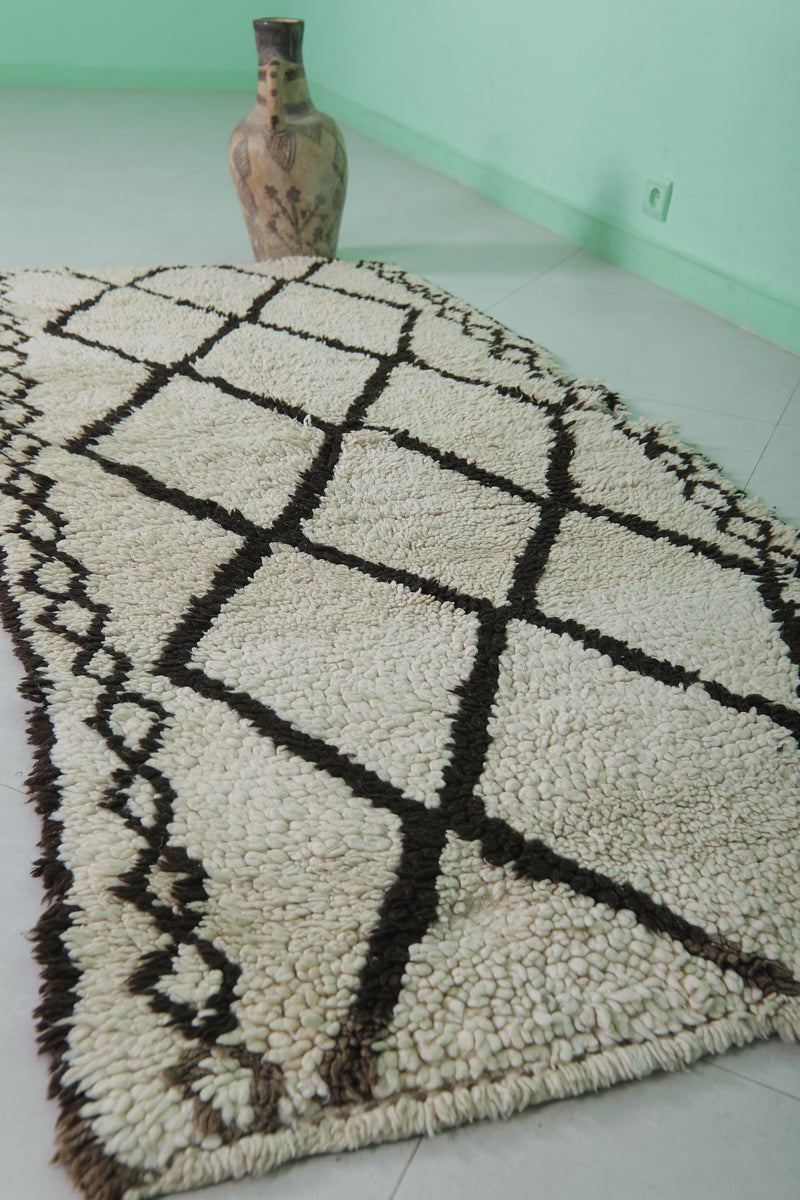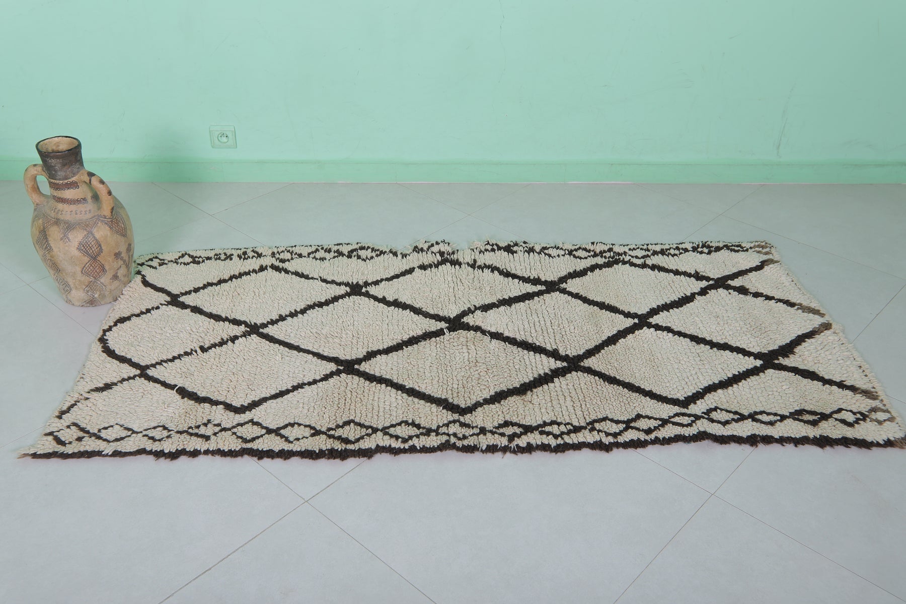- Classic Beni Ourain diamond pattern in black on a neutral base.