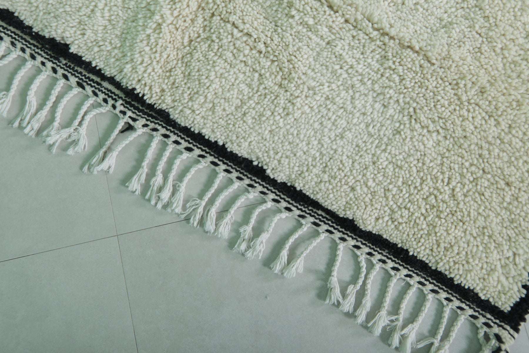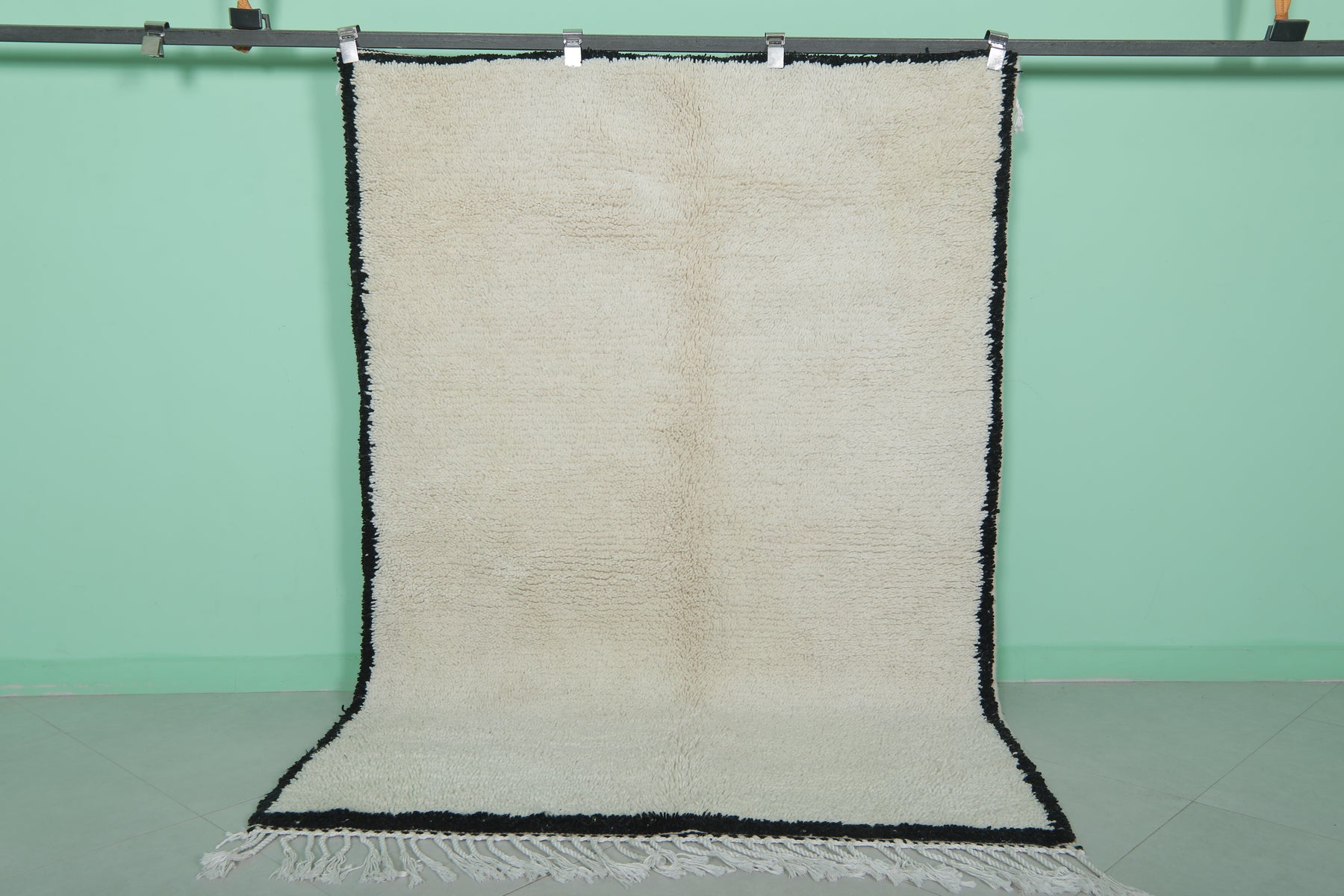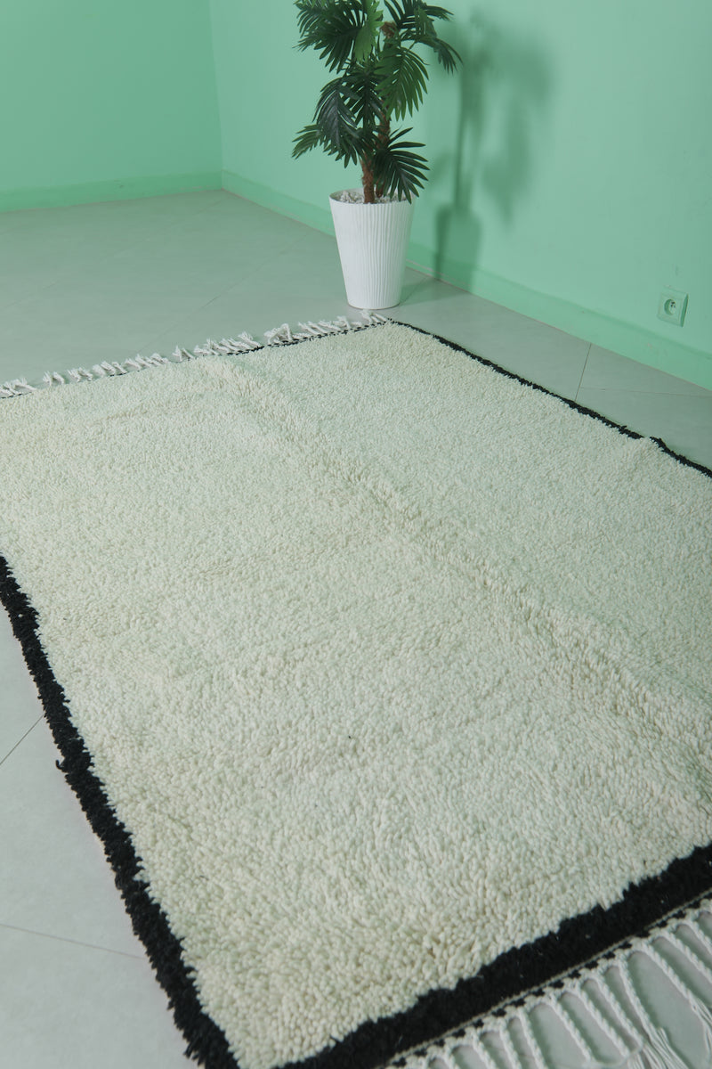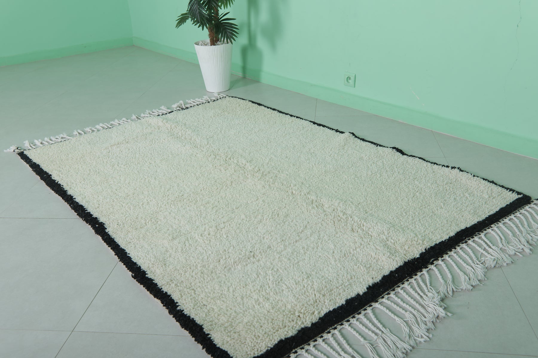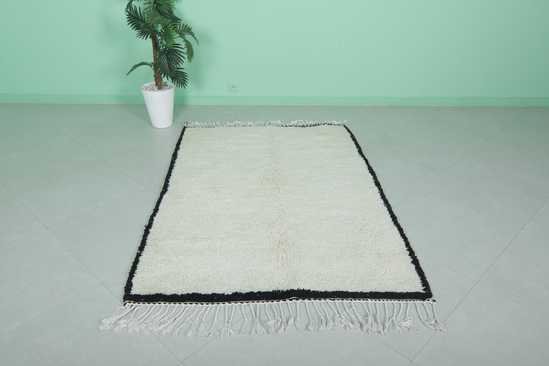 Elevate your space with this Handmade Beni Ourain Rug, sized at 4.5 x 6.5 feet (140 CM x 200 CM). Featuring a minimalist black border design, this handmade rug is a sophisticated statement piece.