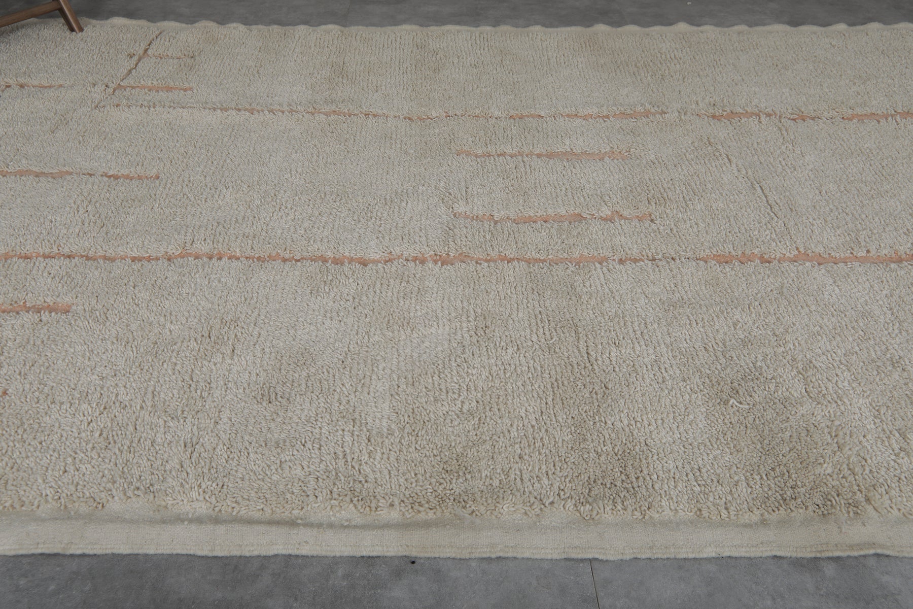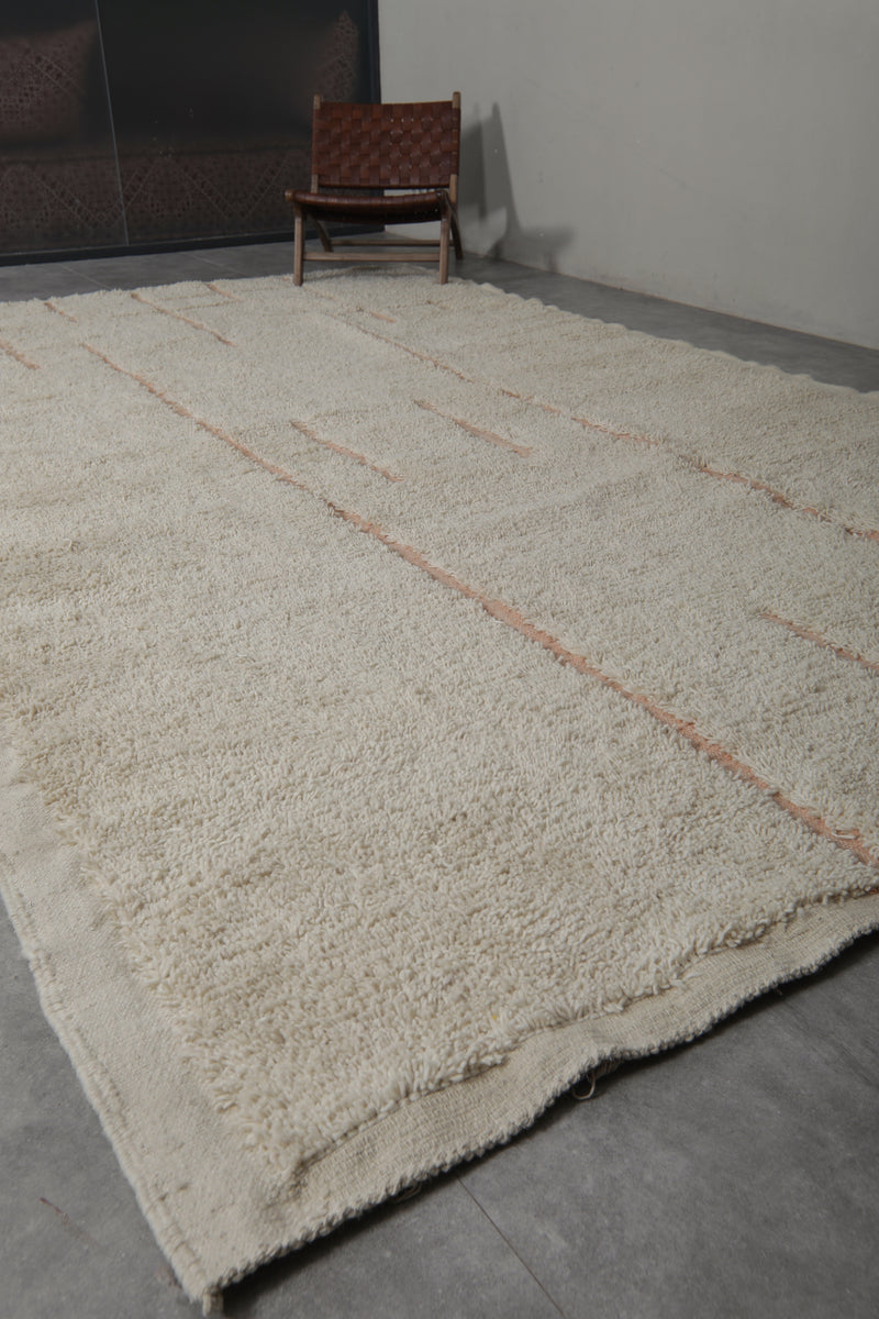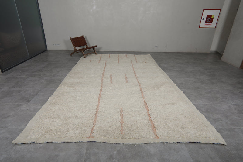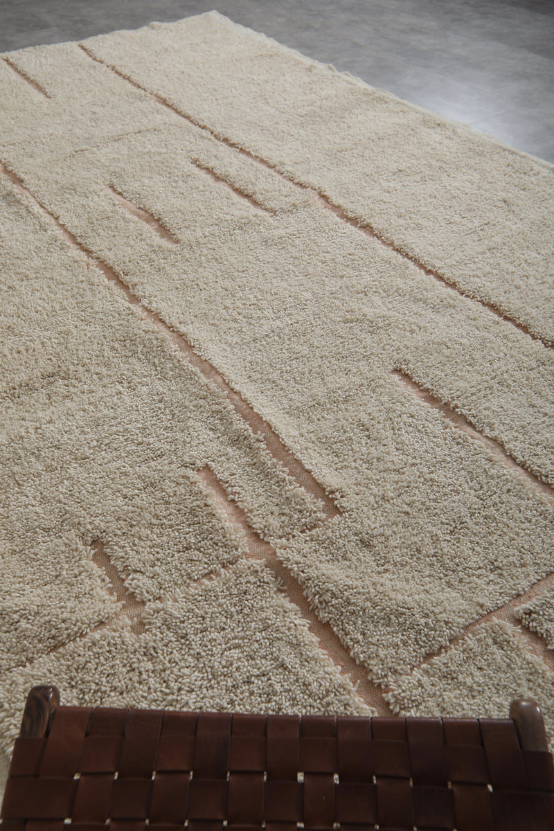Add an authentic touch of Moroccan artistry to your home with this Handmade Berber Wool Rug, a timeless blend of tradition and modern simplicity. Woven by skilled Moroccan artisans, this rug features a soft white wool base, highlighted by delicate beige geometric lines, creating a subtle yet eye-catching design. The result is a versatile, elegant rug that fits seamlessly into modern, bohemian, minimalist, or Scandinavian interiors.