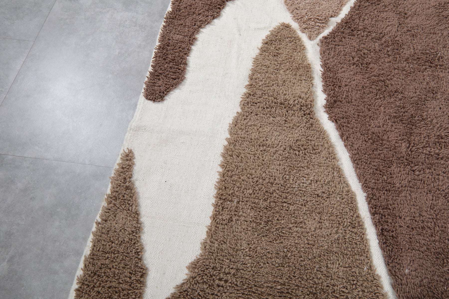 Make a bold yet balanced statement with our White, Brown & Beige Geometric Moroccan Rug—a harmonious blend of modern design and traditional craftsmanship. Handwoven by skilled Moroccan artisans, this eye-catching rug features abstract, organic shapes in earthy tones, creating a sculptural feel that elevates any room.