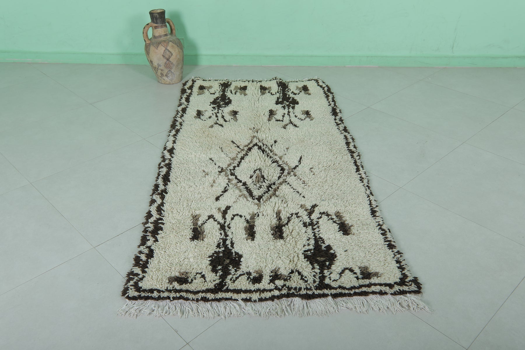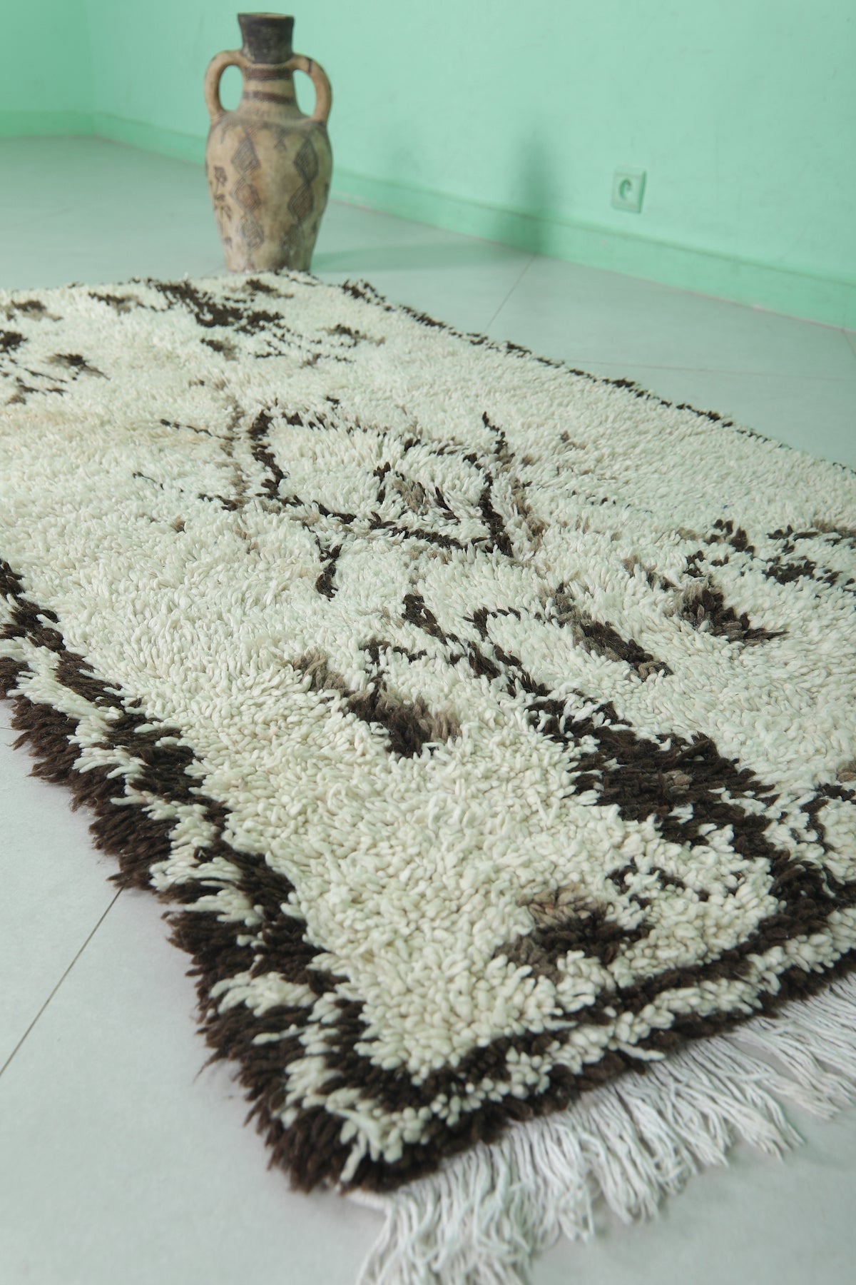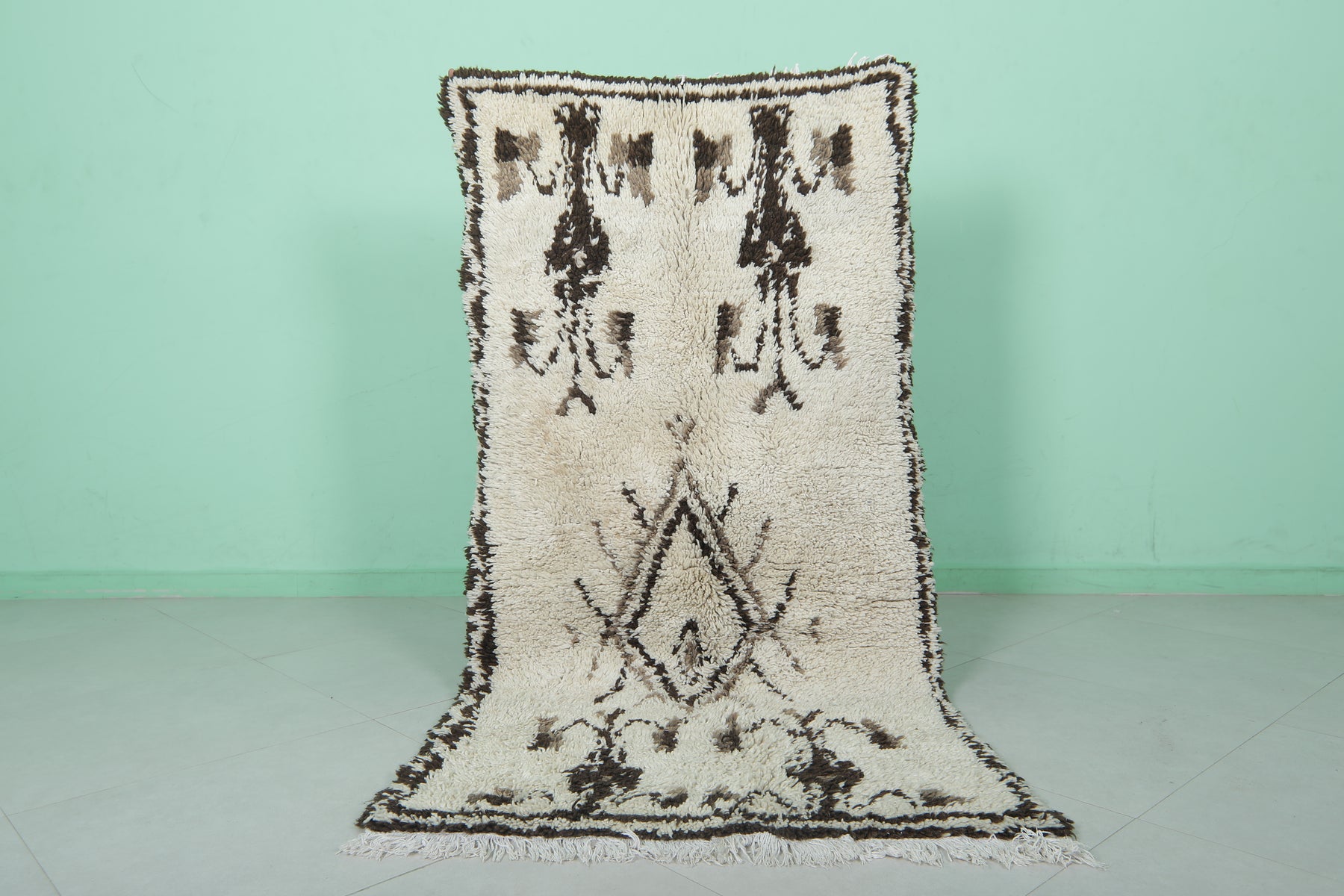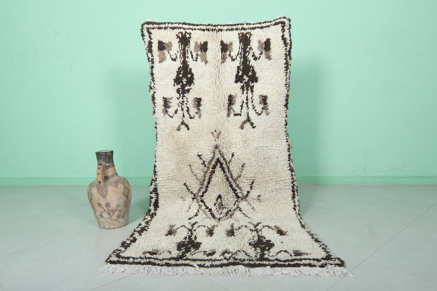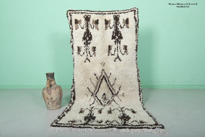 Elevate your space with this handmade Berber rug, featuring intricate tribal patterns in black on a white background. Crafted with care, this 3.2 x 6.1 ft rug adds a touch of Moroccan heritage and elegance to your home. Ideal for living rooms or bedrooms, its timeless design complements various decor styles.