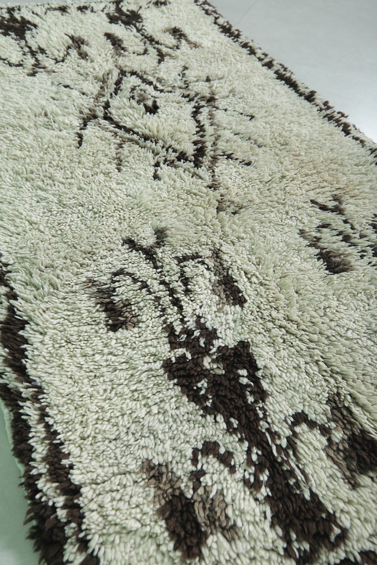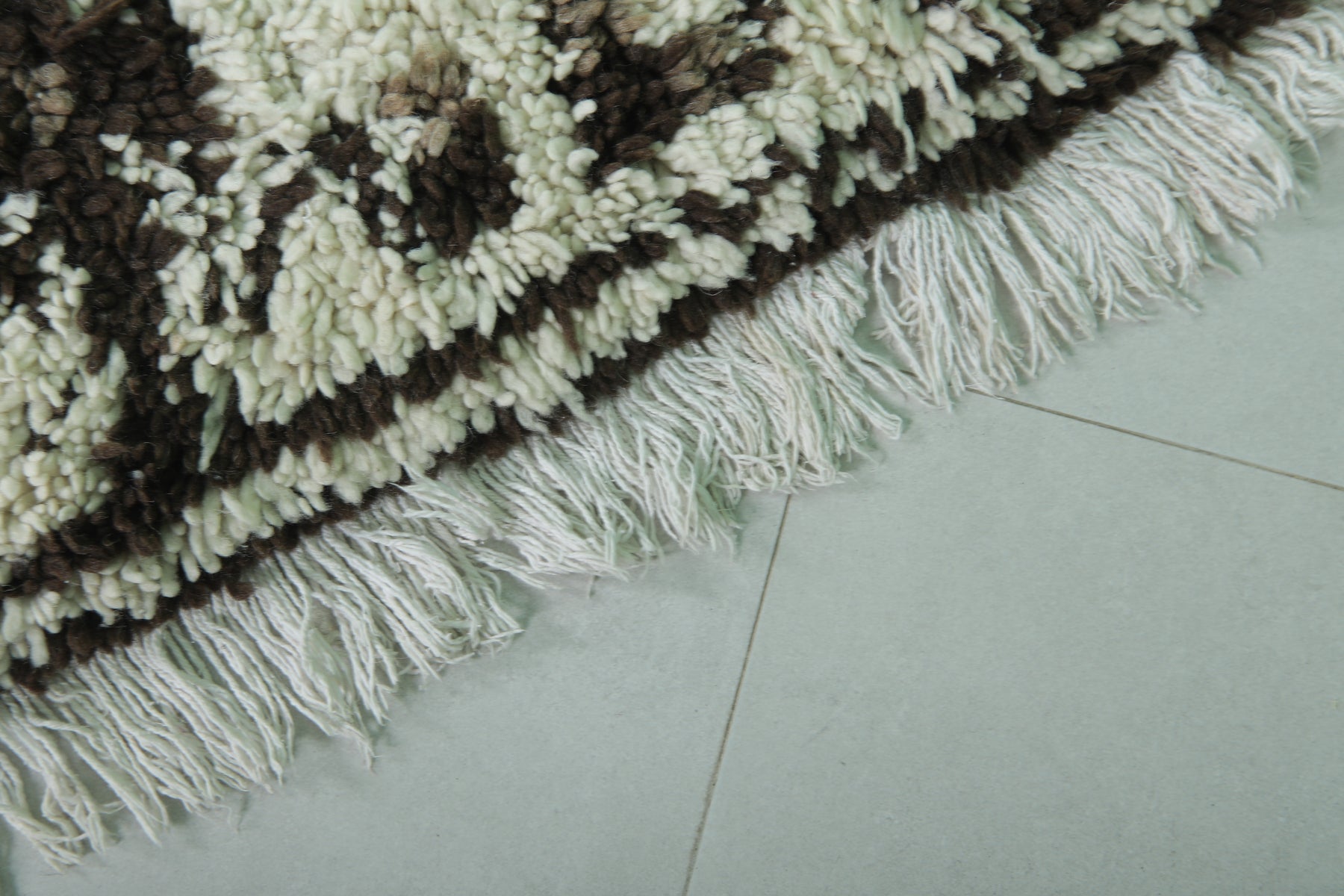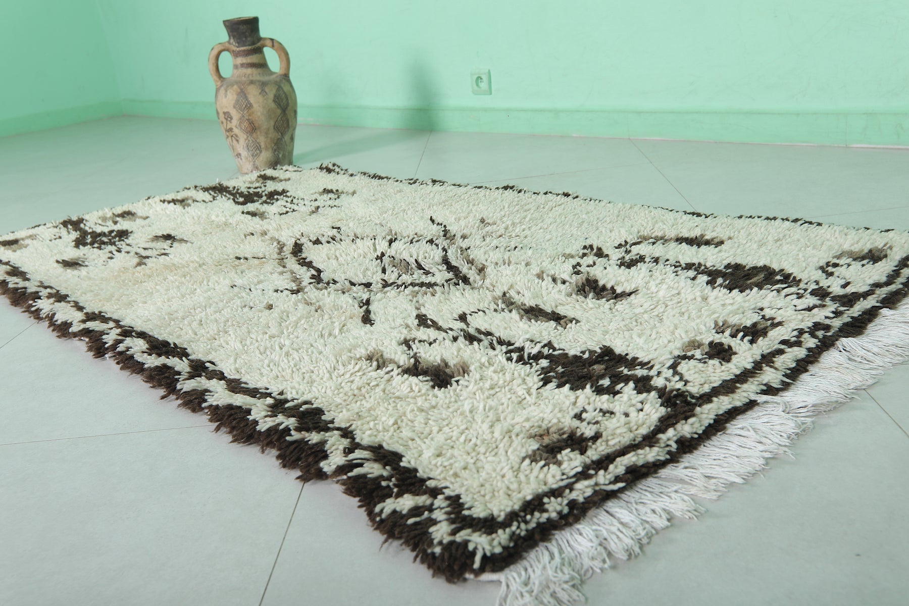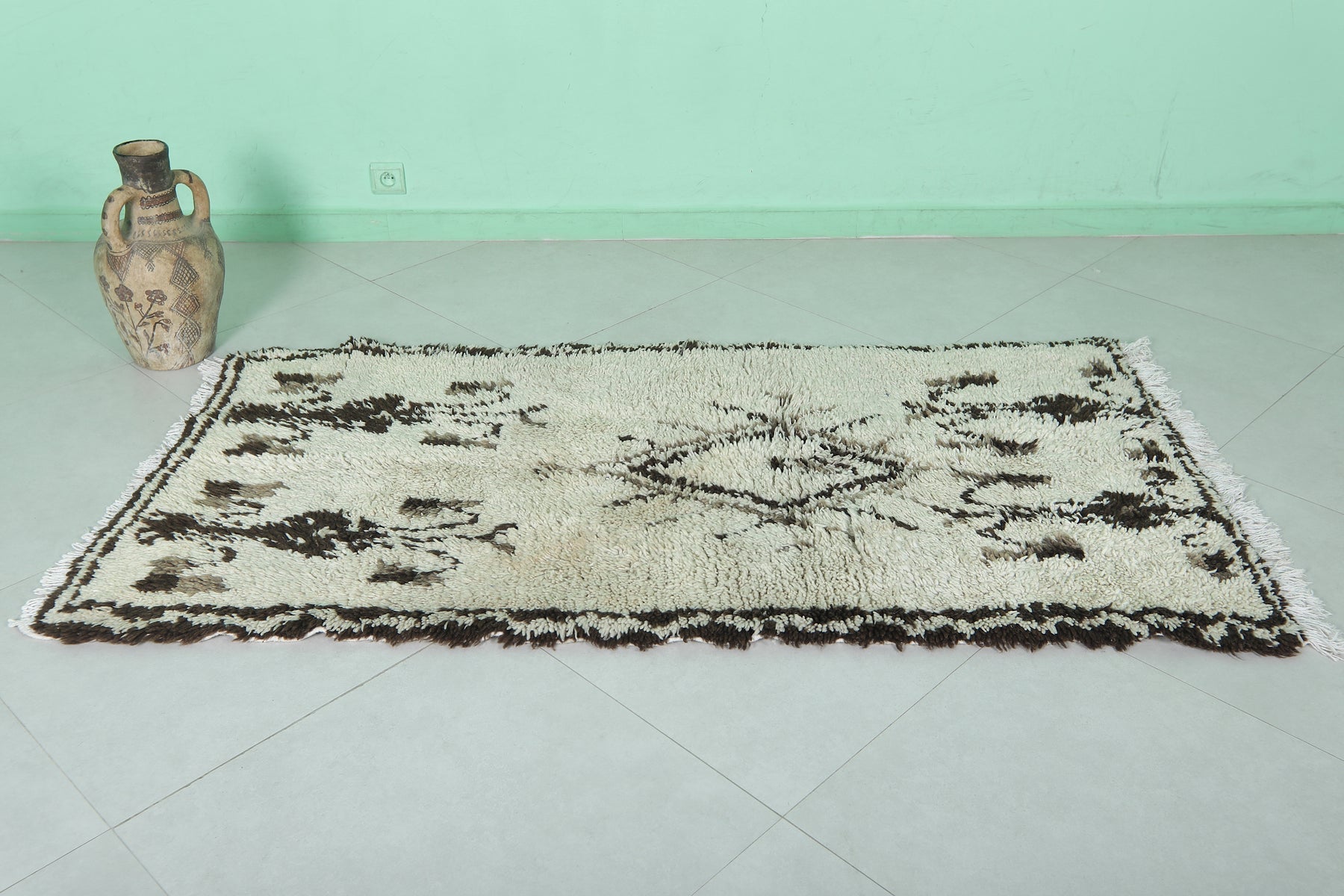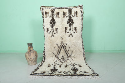Elevate your space with this handmade Berber rug, featuring intricate tribal patterns in black on a white background. Crafted with care, this 3.2 x 6.1 ft rug adds a touch of Moroccan heritage and elegance to your home. Ideal for living rooms or bedrooms, its timeless design complements various decor styles.