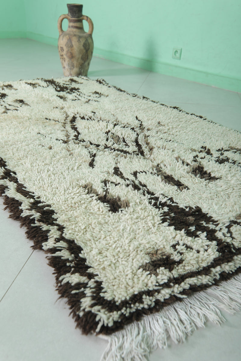 Handmade Berber Rug – Tribal Black & White Design 3.2 x 6.1 ft