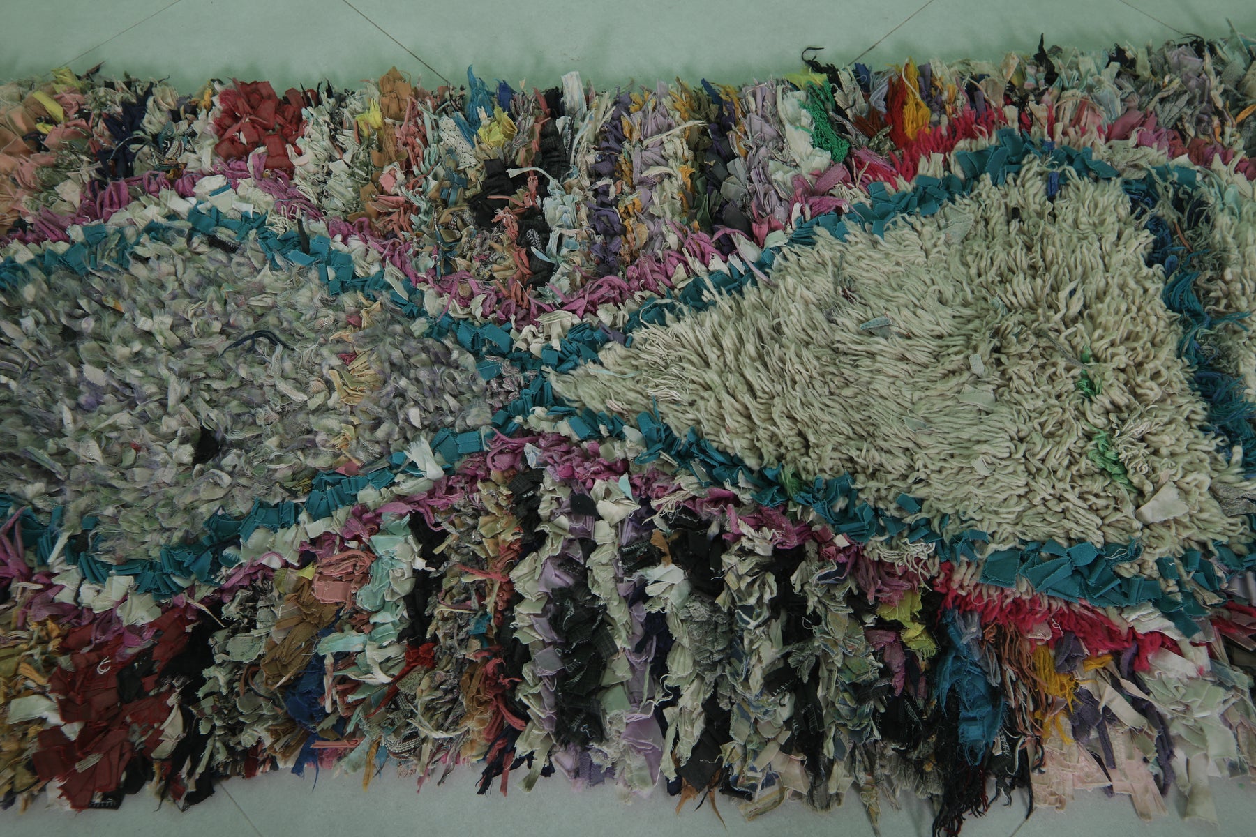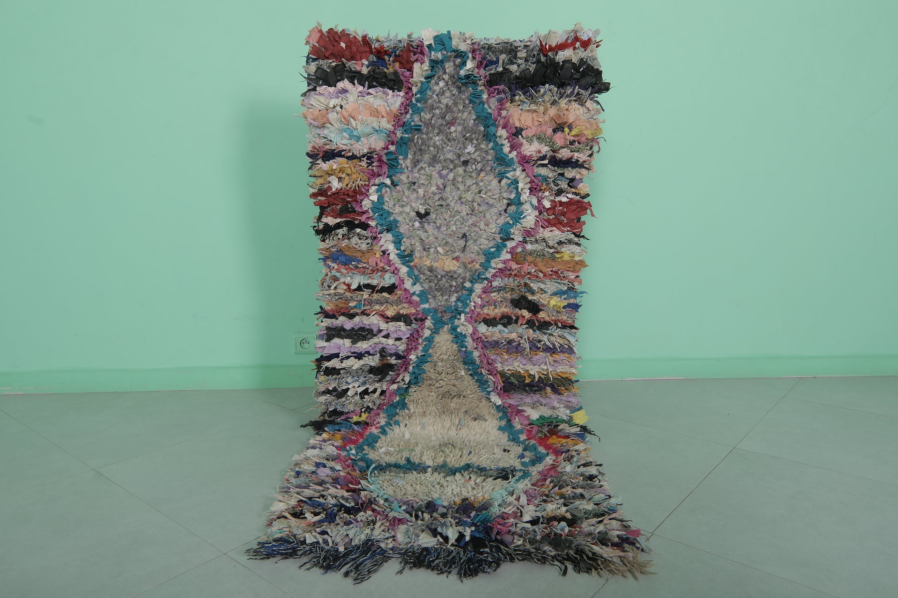 Add bold personality to your space with this Handmade Berber Runner Rug (2.3 x 5.4 FT), featuring a vibrant diamond design and shaggy texture for a cozy, artistic vibe.