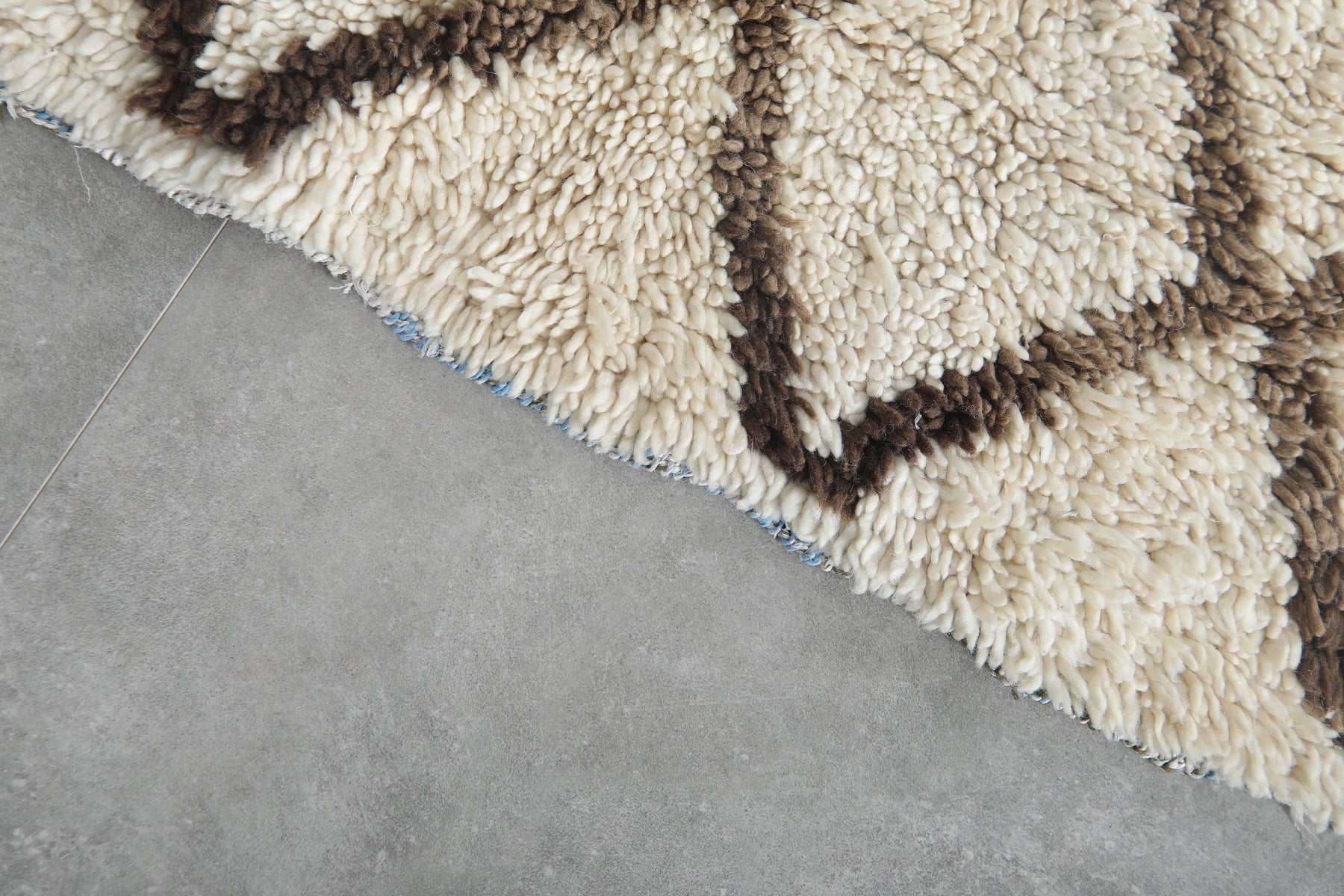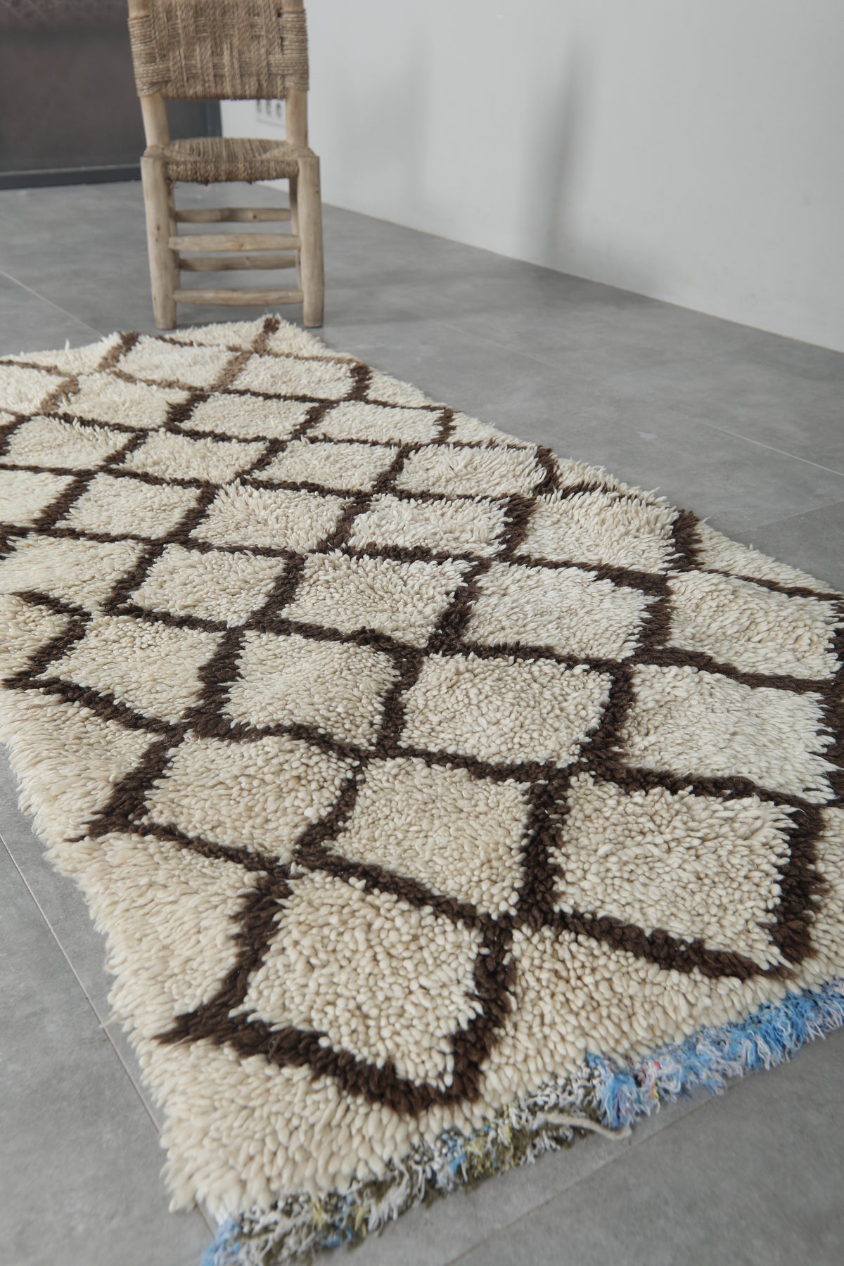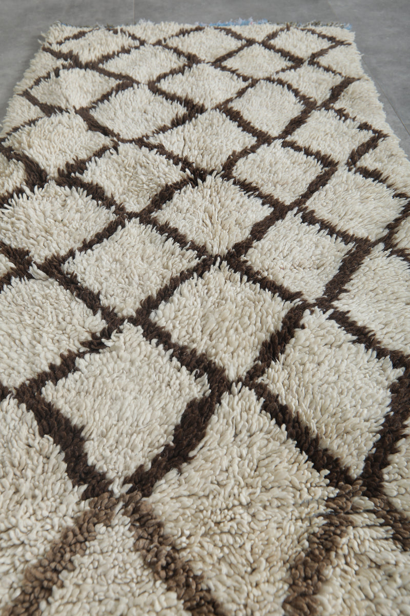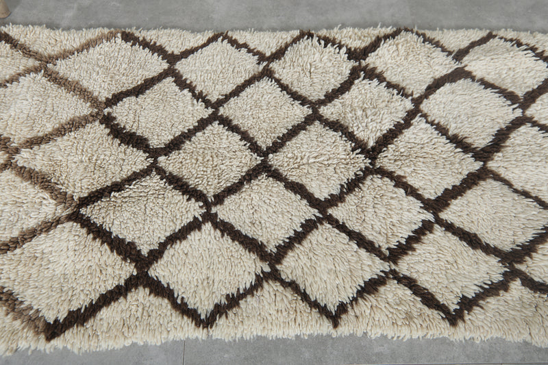 Add timeless sophistication to your space with this Handmade Berber Runner Rug (2.7 x 5.9 FT), showcasing a bold black diamond lattice on a creamy wool base.