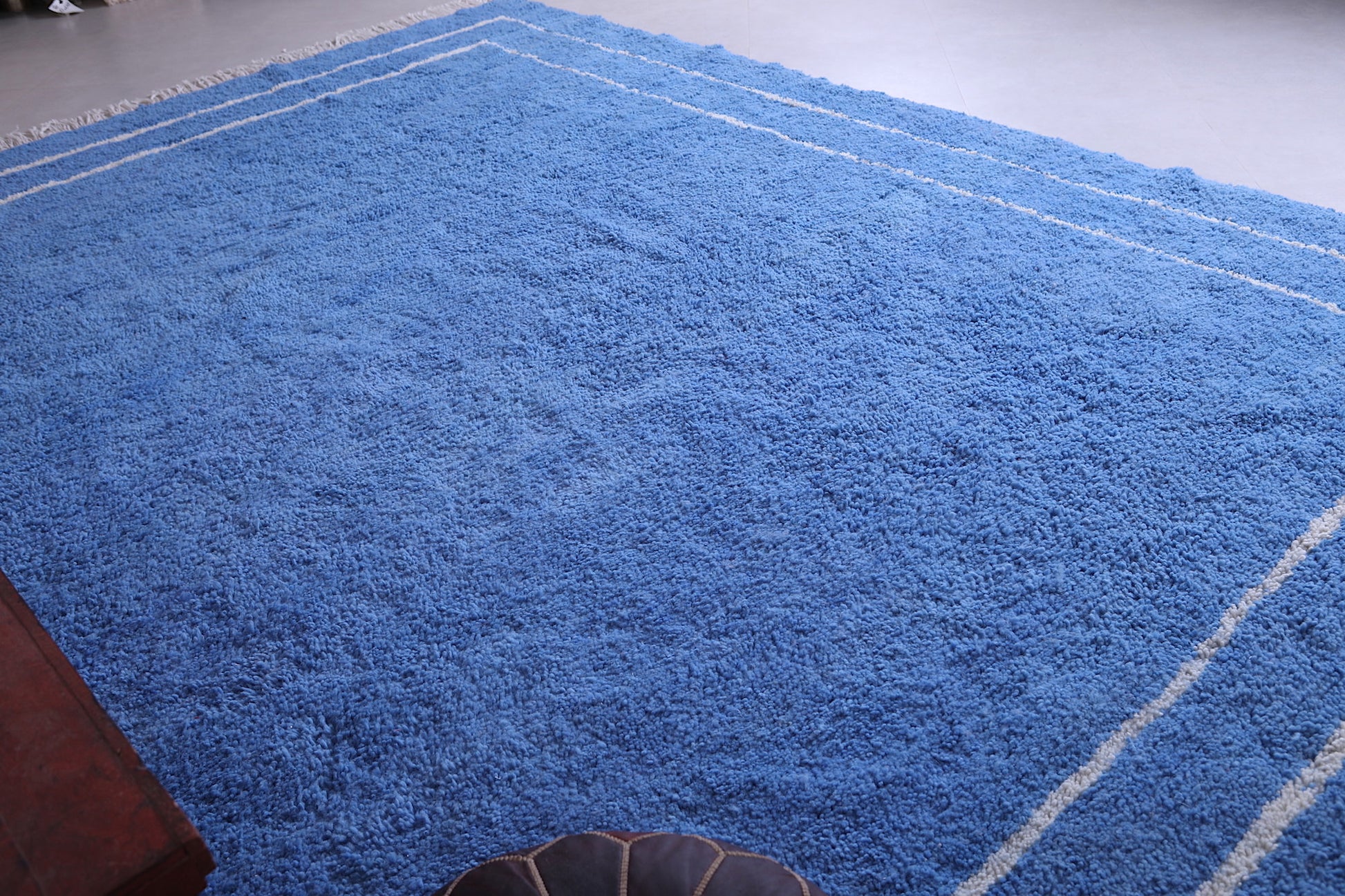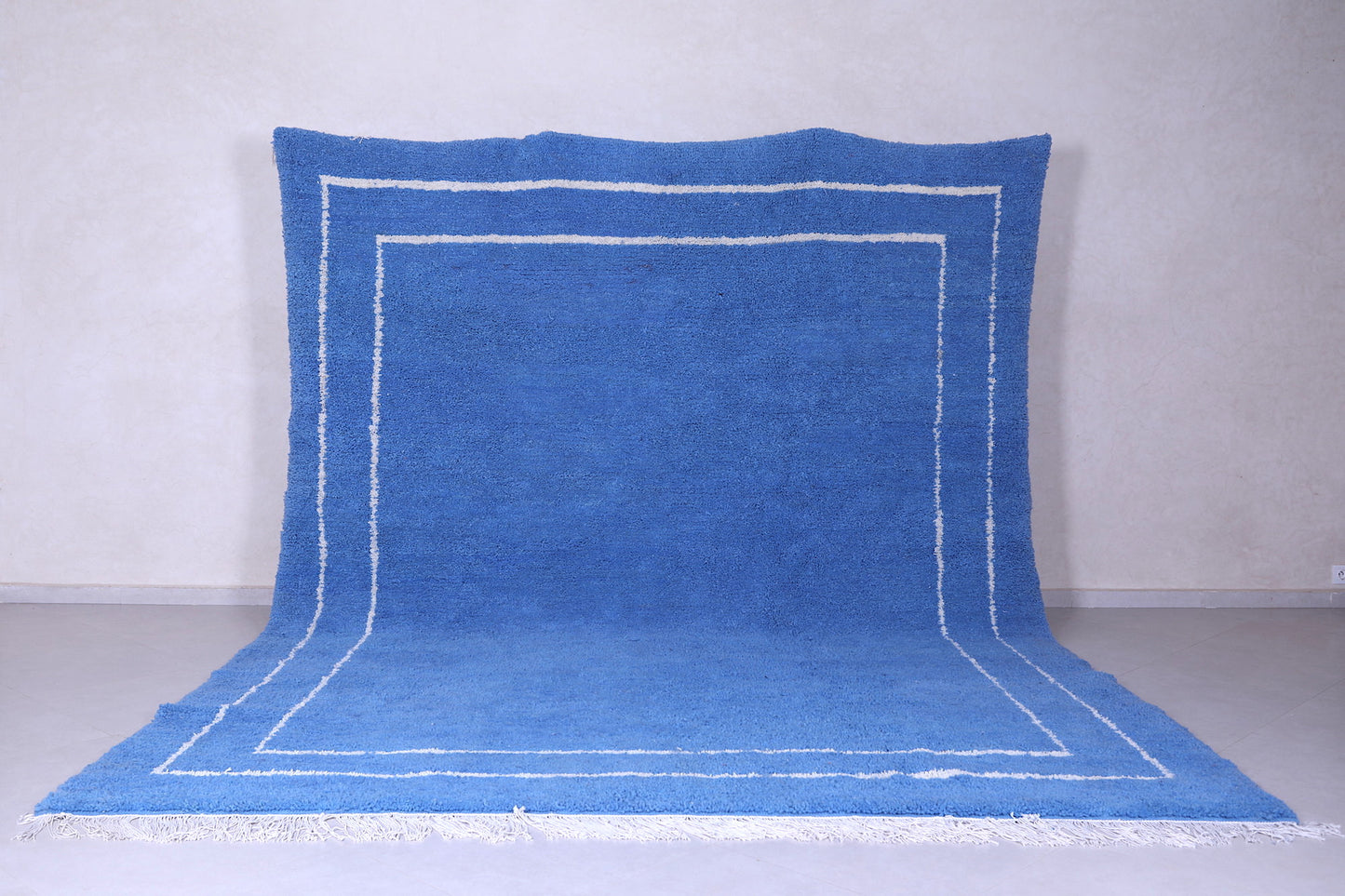 Infuse your space with Moroccan artistry using this vibrant Handmade Blue Berber Rug, woven from 100% pure wool. Its eye-catching cobalt blue base and minimal white border design create a bold yet elegant statement for contemporary and traditional spaces alike.