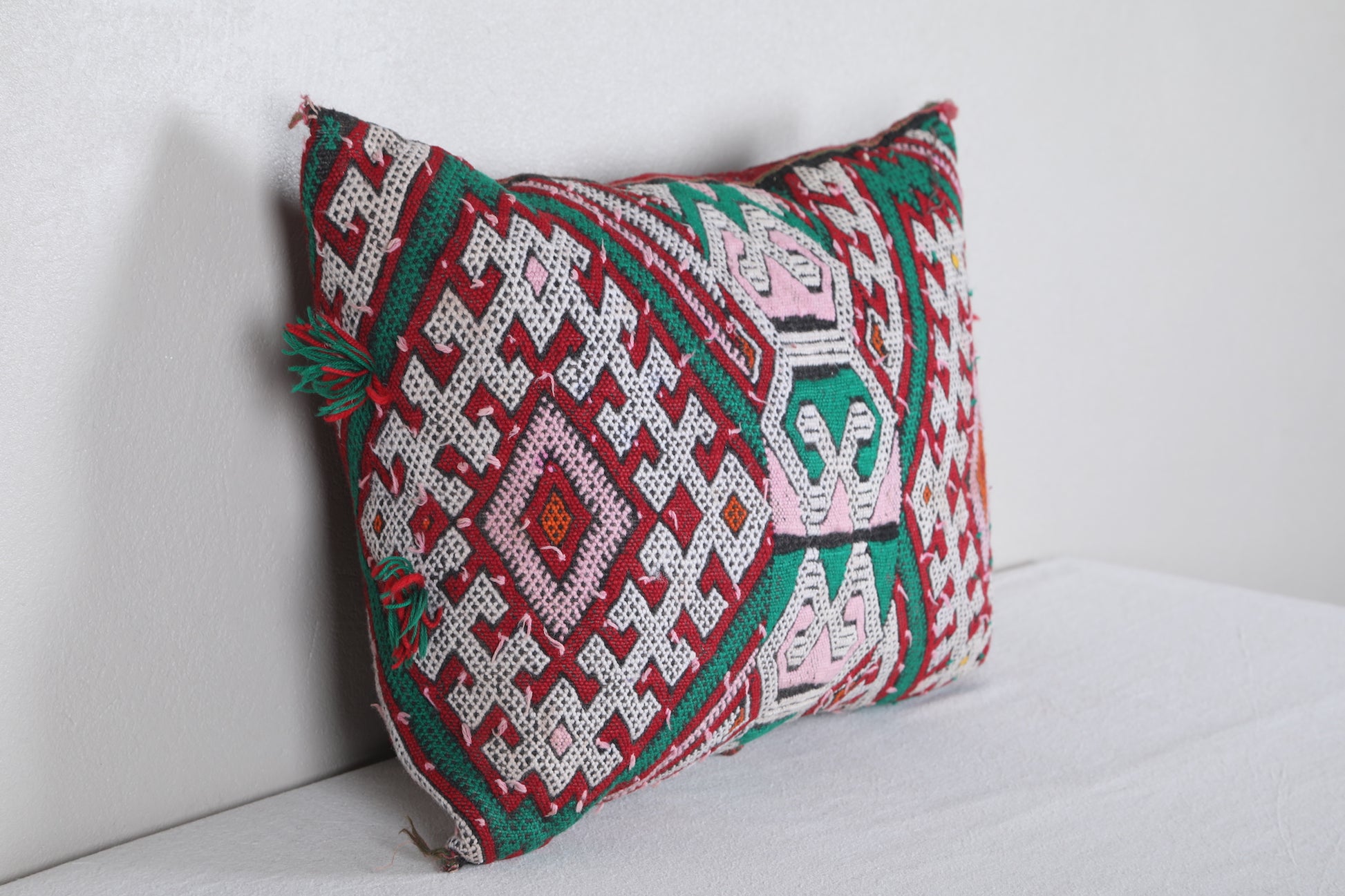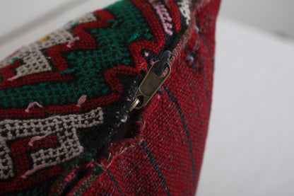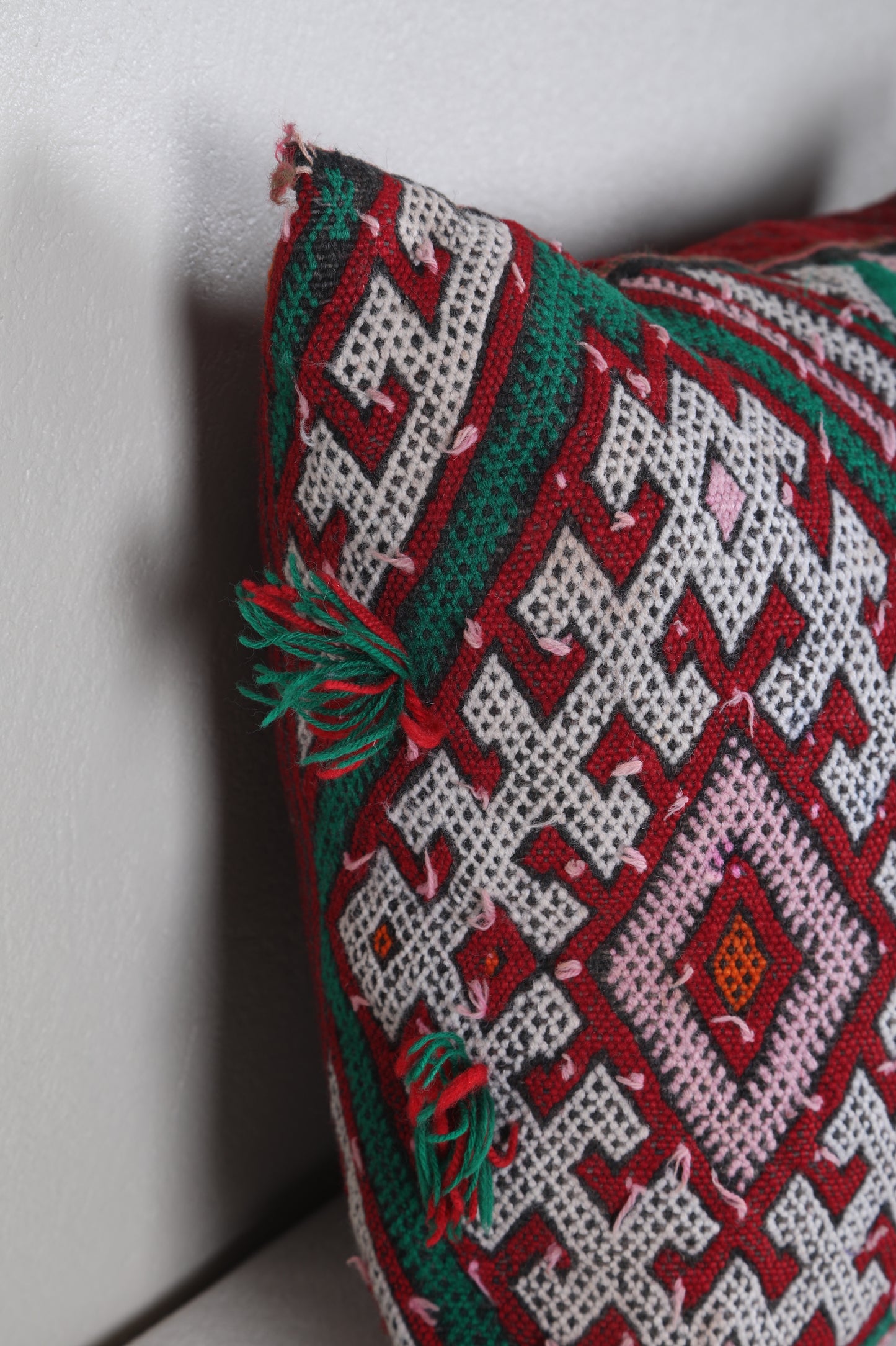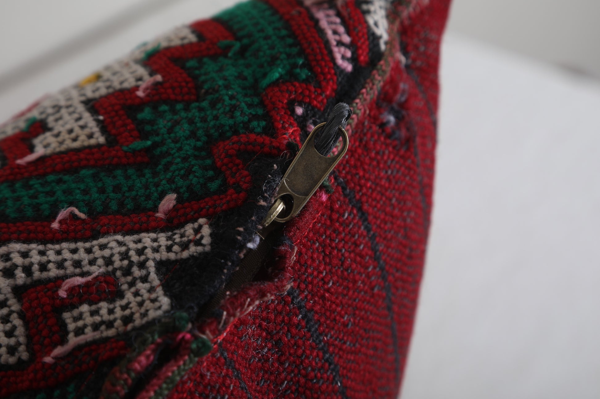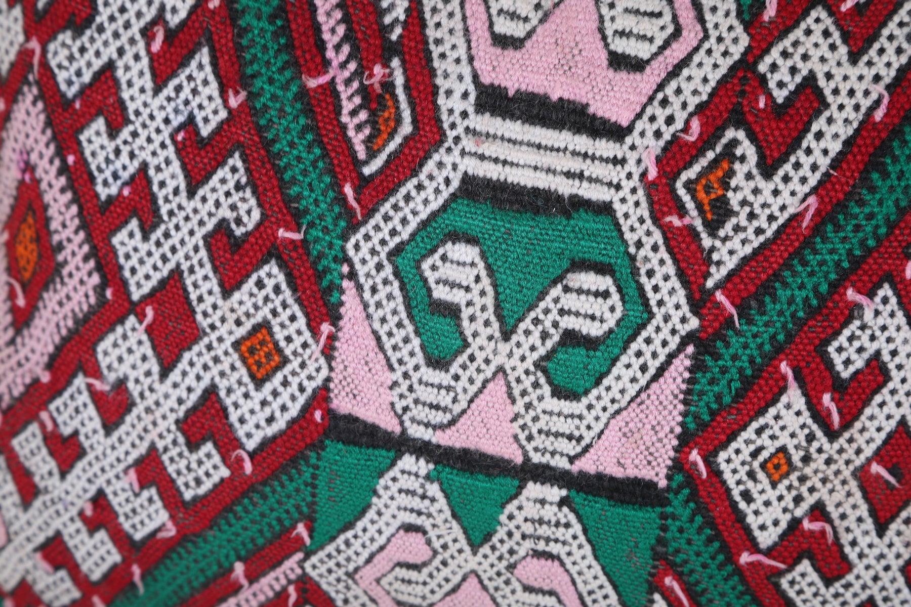Add a bold burst of color and authentic Moroccan craftsmanship to your home with this handwoven Moroccan Pillow, sized at 15.7 x 21.2 inches (40 CM x 54 CM). Showcasing vibrant geometric patterns in rich red, green, and white, this unique pillow blends traditional Berber artistry with a playful touch. Perfect for brightening up your sofa, bed, or favorite corner, it brings global flair to any space.