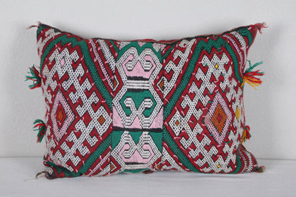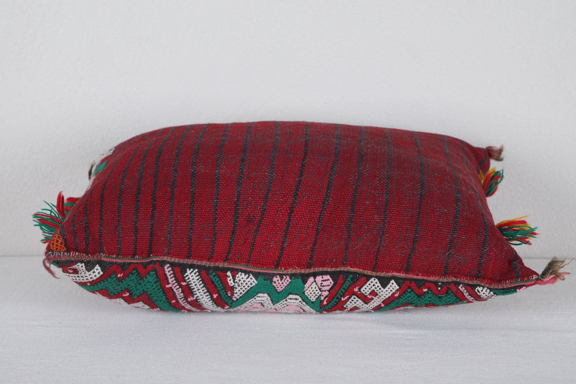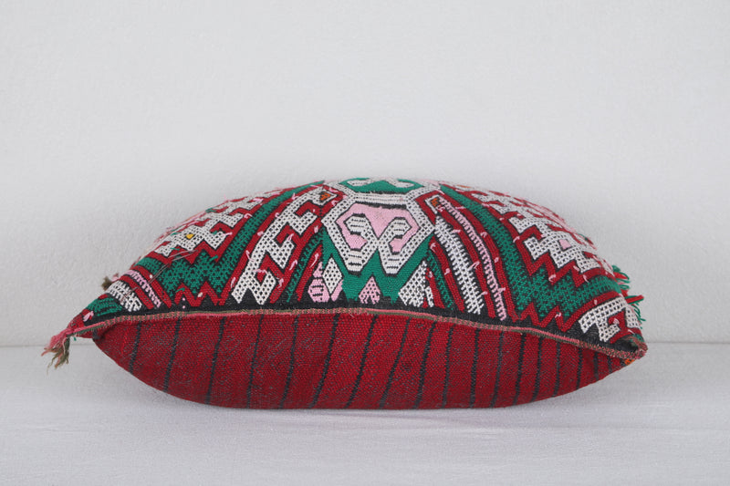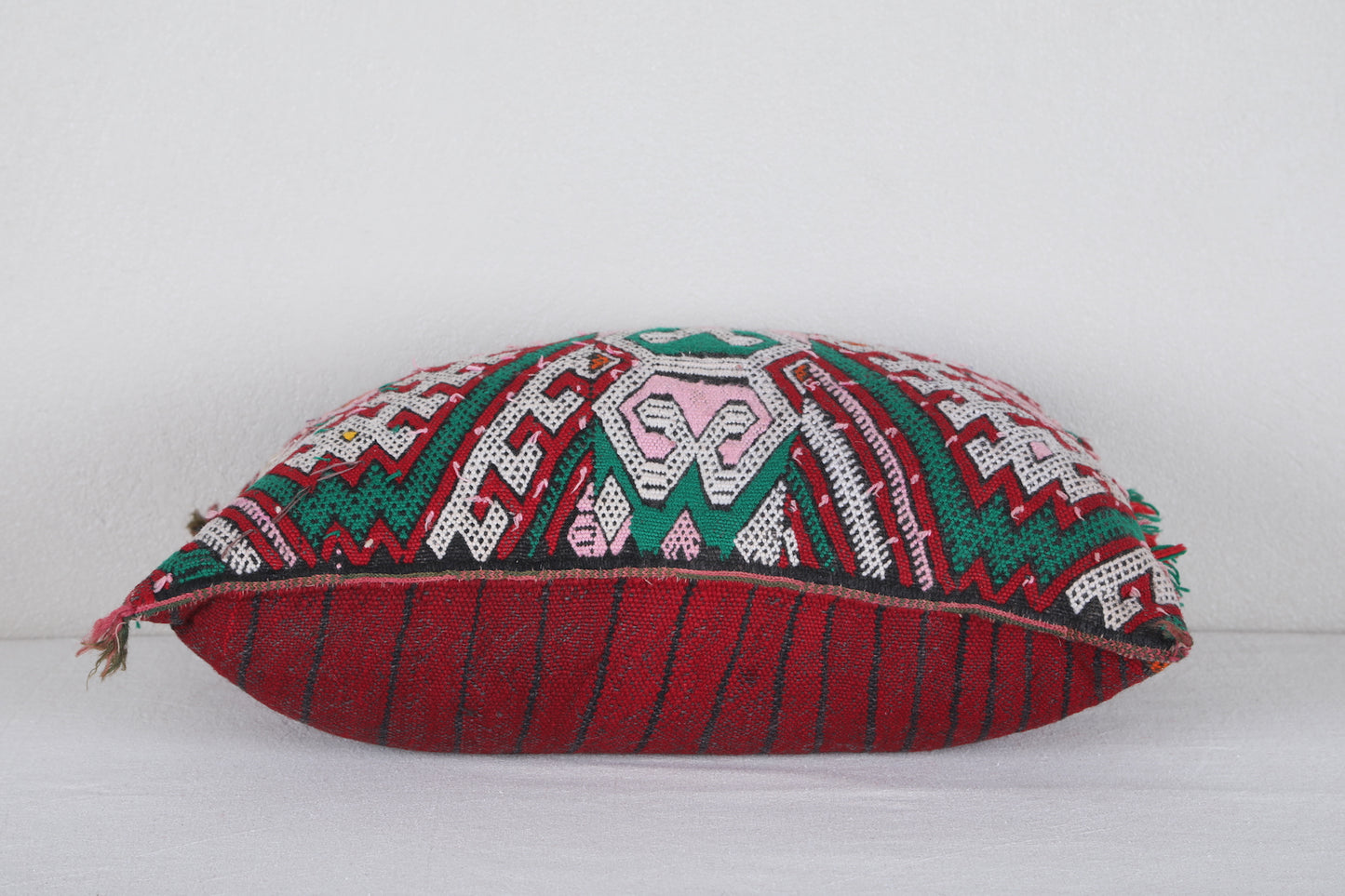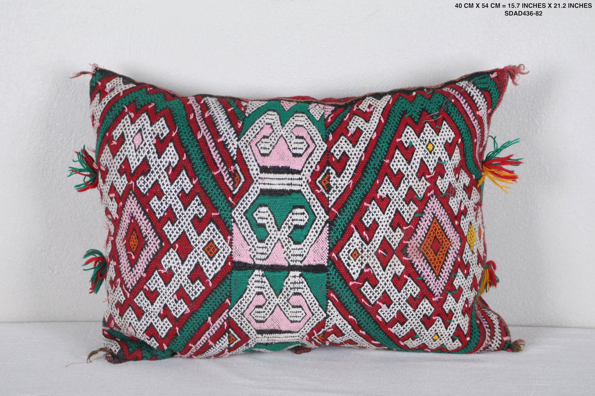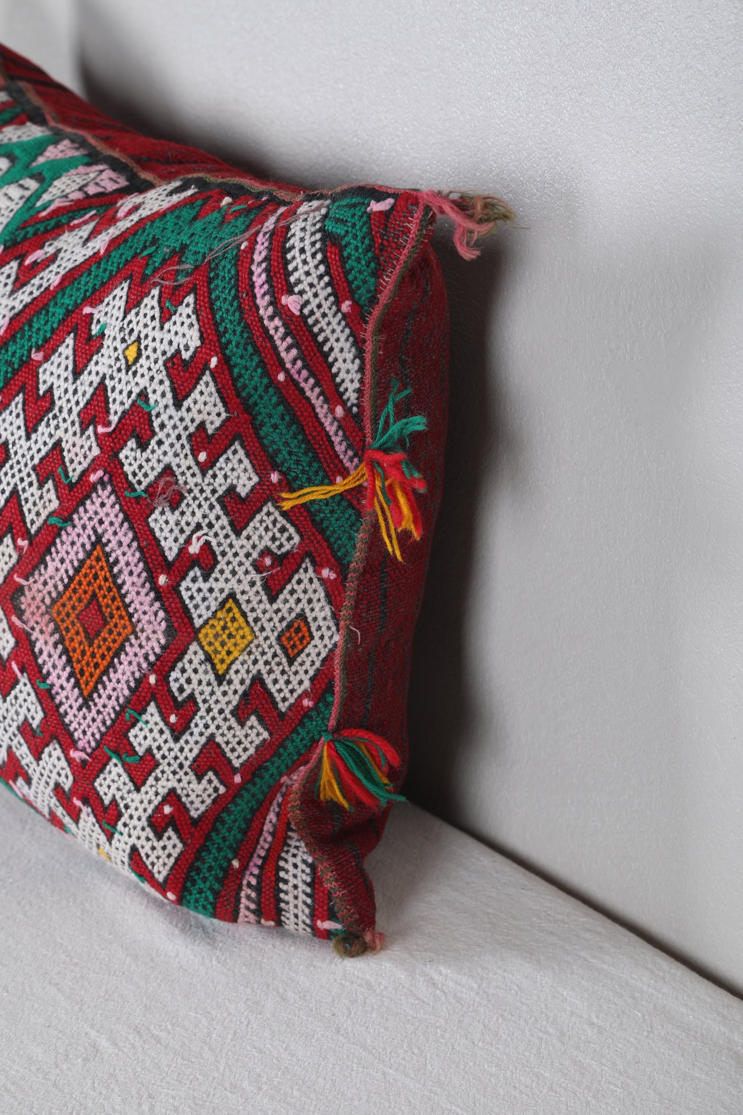Add a bold burst of color and authentic Moroccan craftsmanship to your home with this handwoven Moroccan Pillow, sized at 15.7 x 21.2 inches (40 CM x 54 CM). Showcasing vibrant geometric patterns in rich red, green, and white, this unique pillow blends traditional Berber artistry with a playful touch. Perfect for brightening up your sofa, bed, or favorite corner, it brings global flair to any space.