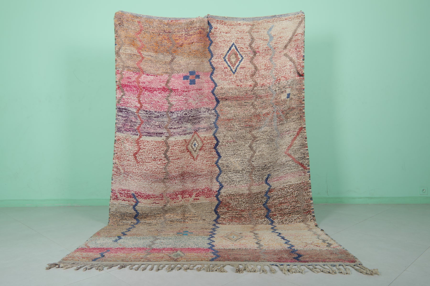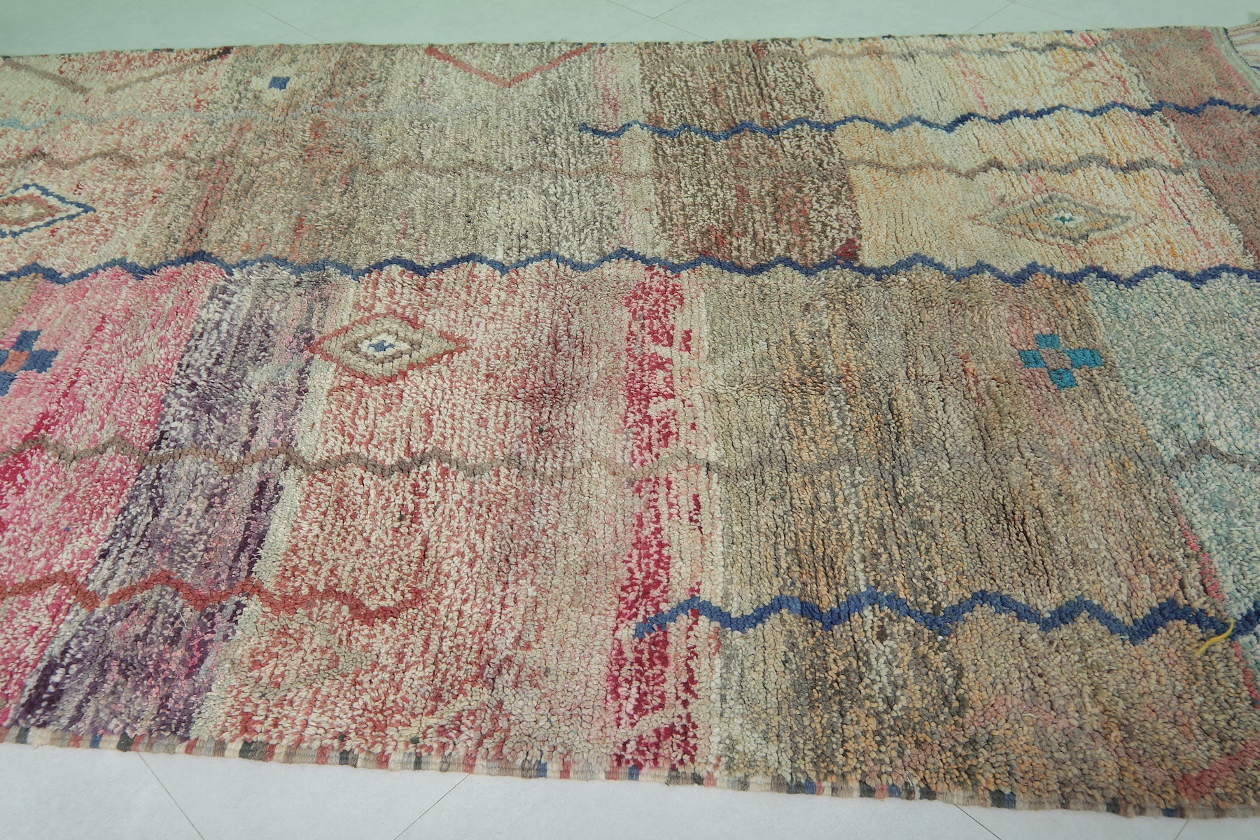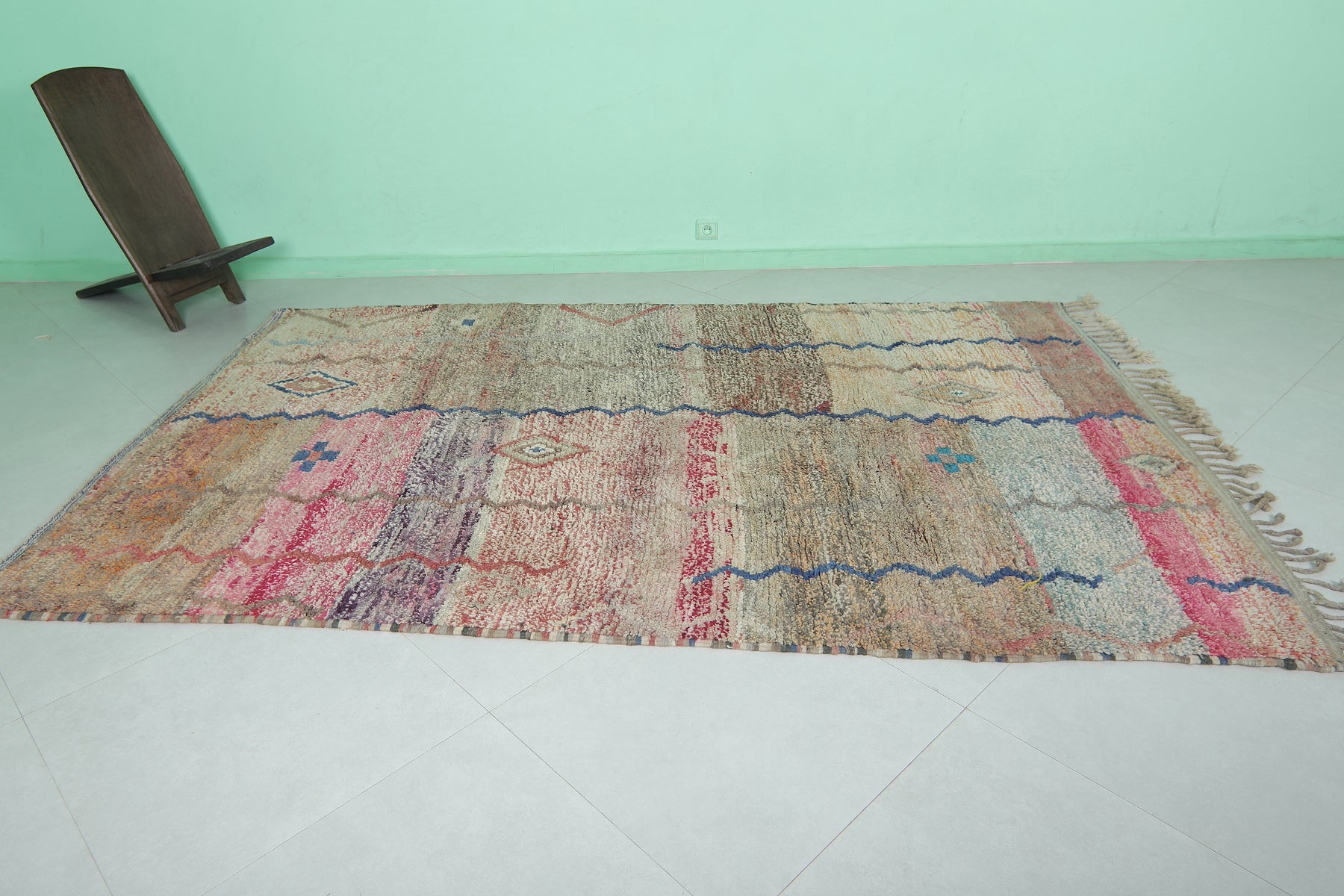 • A versatile Moroccan rug that suits bohemian, vintage, and contemporary interiors.