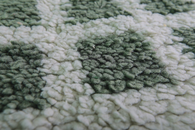 A distinctive geometric pattern in deep green on an ivory base, offering a bold yet elegant aesthetic to complement bohemian, minimalist, or eclectic interiors.