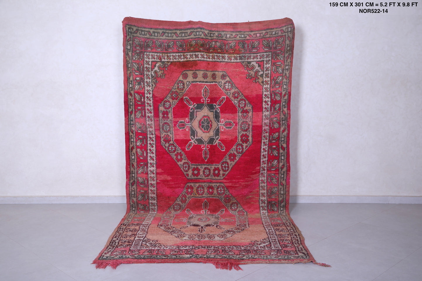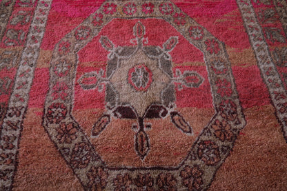 Add timeless Moroccan elegance to your home with this Handmade Wool Rug. Measuring 5.2 x 9.8 feet, this vintage rug features a striking medallion design framed by intricate borders, inspired by traditional Moroccan artistry.