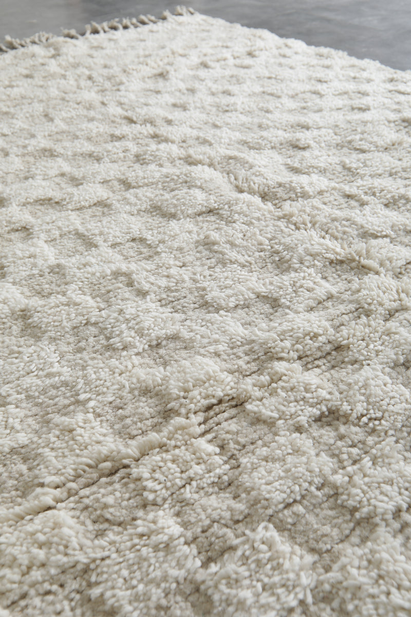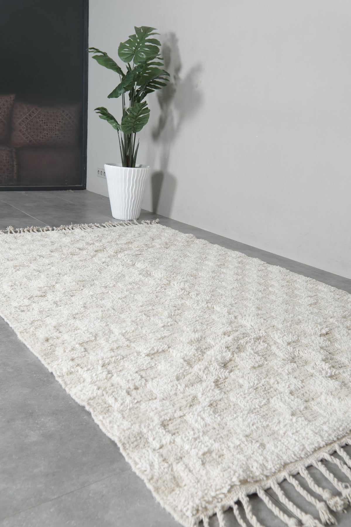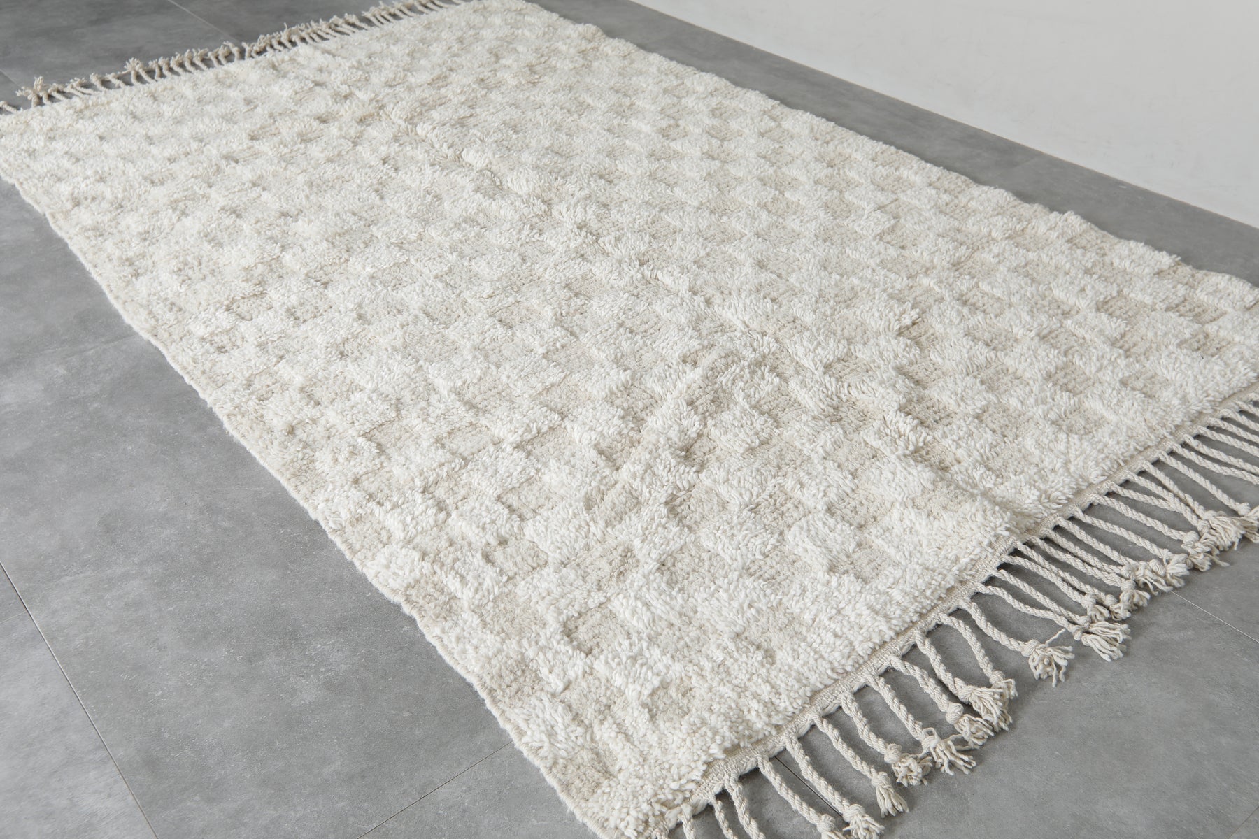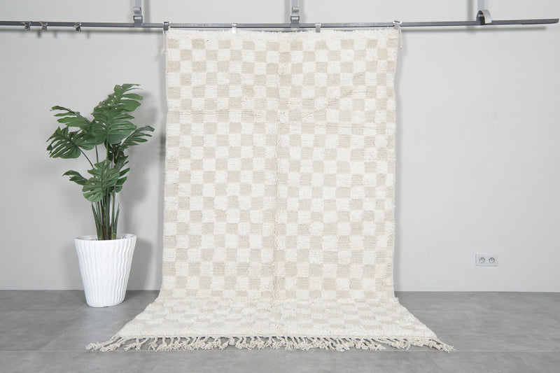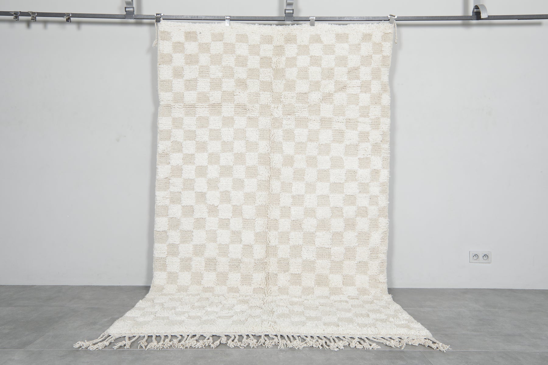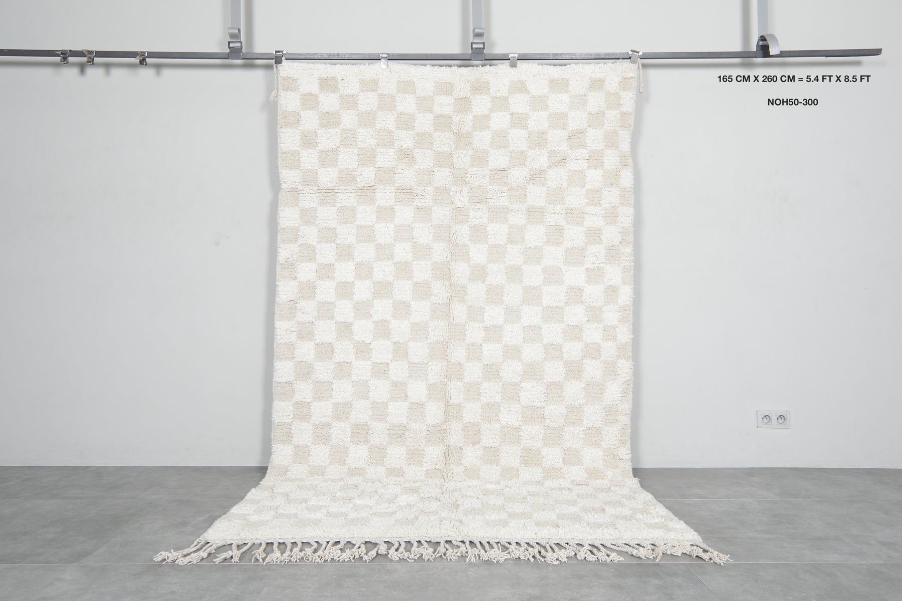 Enhance your home with this handmade Moroccan wool rug, measuring 5.4 FT x 8.5 FT. Featuring a classic checkerboard pattern in soft, neutral tones, this rug blends tradition with modern elegance. Handwoven from 100% premium Moroccan wool, it offers luxurious comfort and lasting durability. Perfect for living rooms, bedrooms, or cozy spaces, this rug adds warmth and texture to any décor.