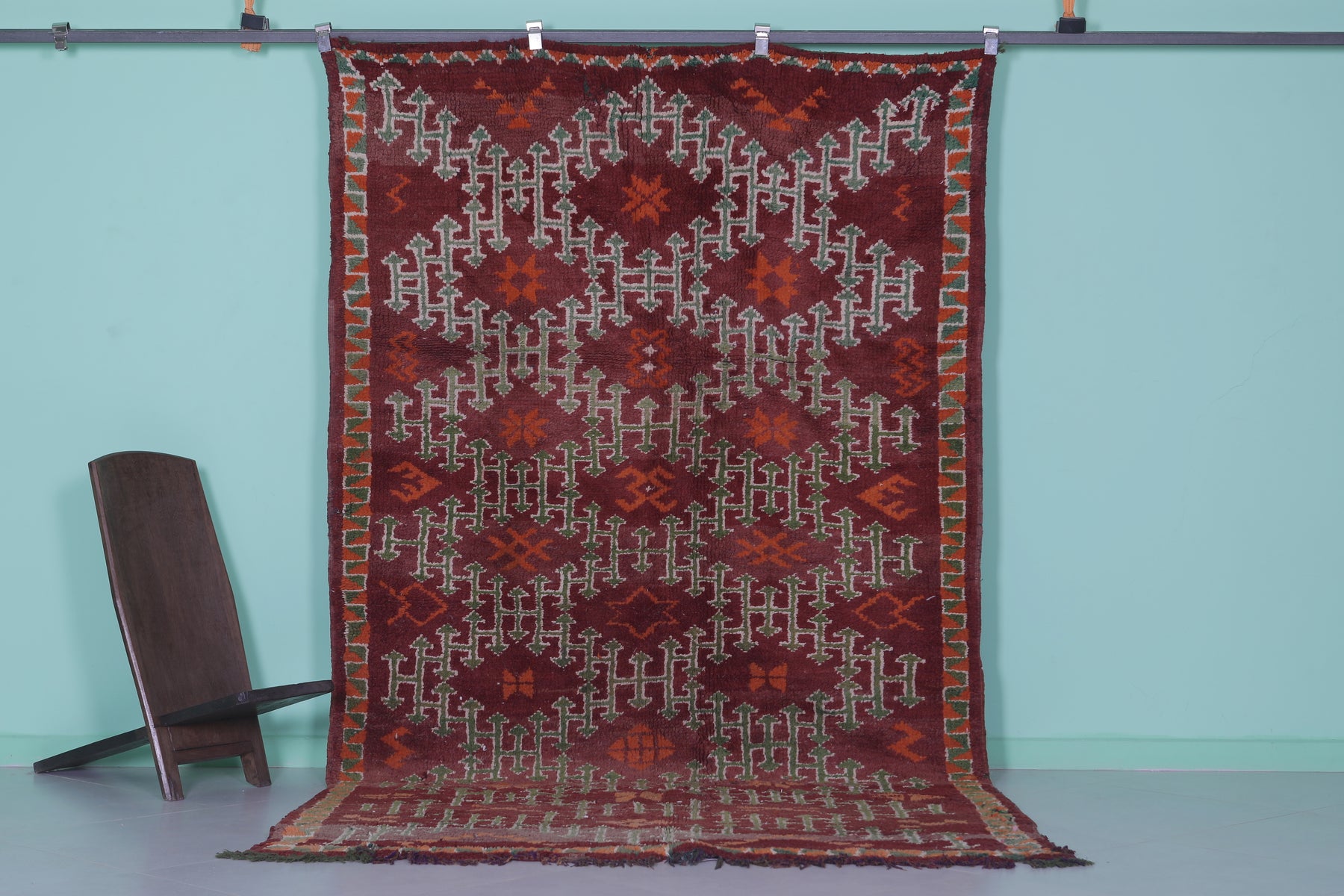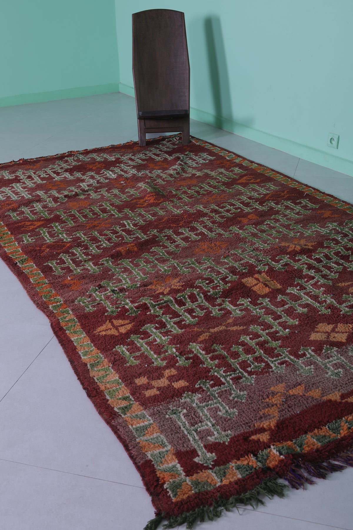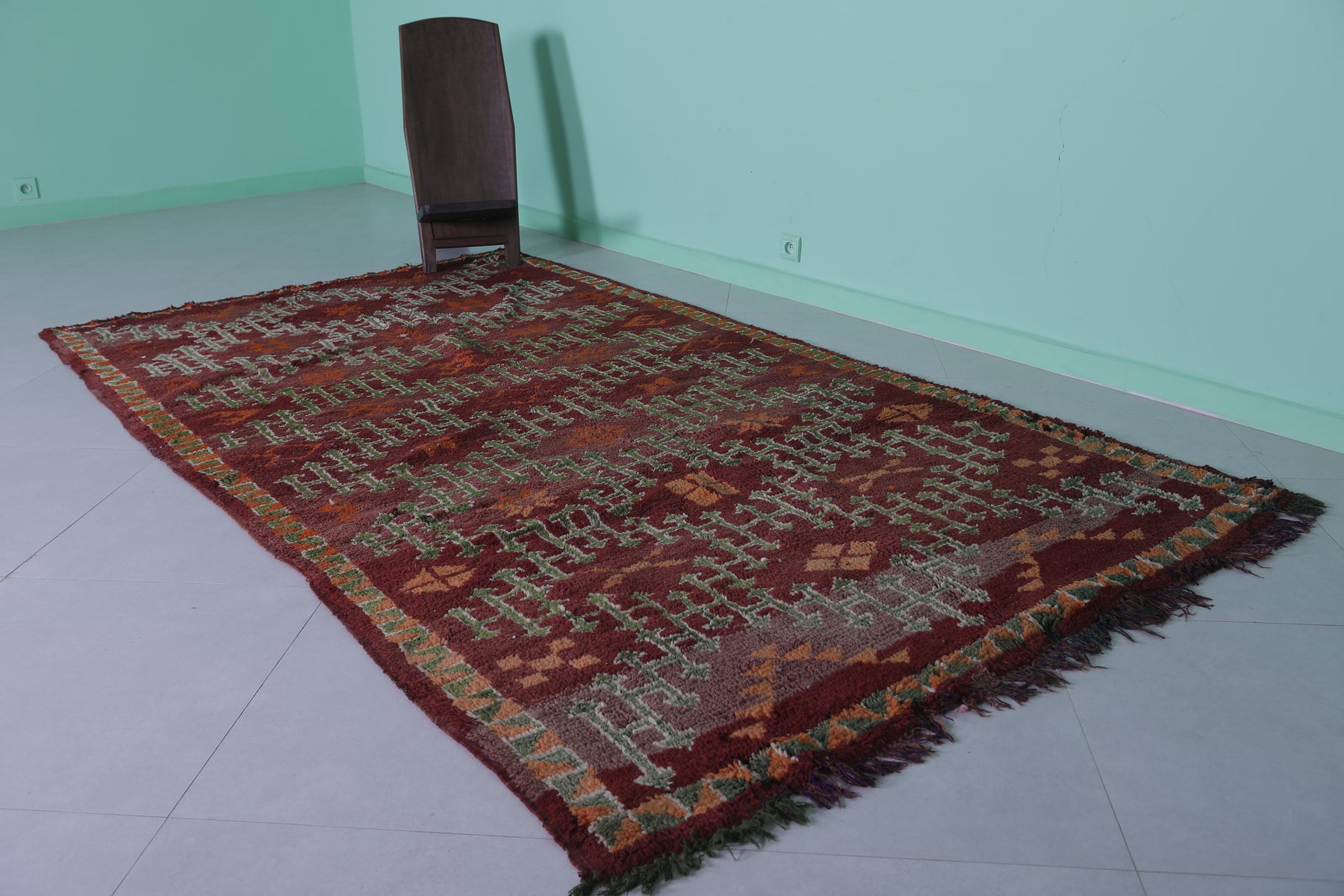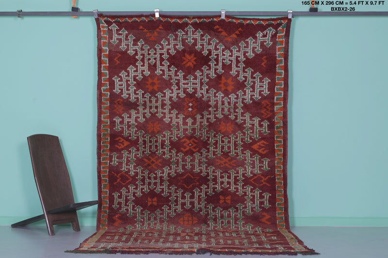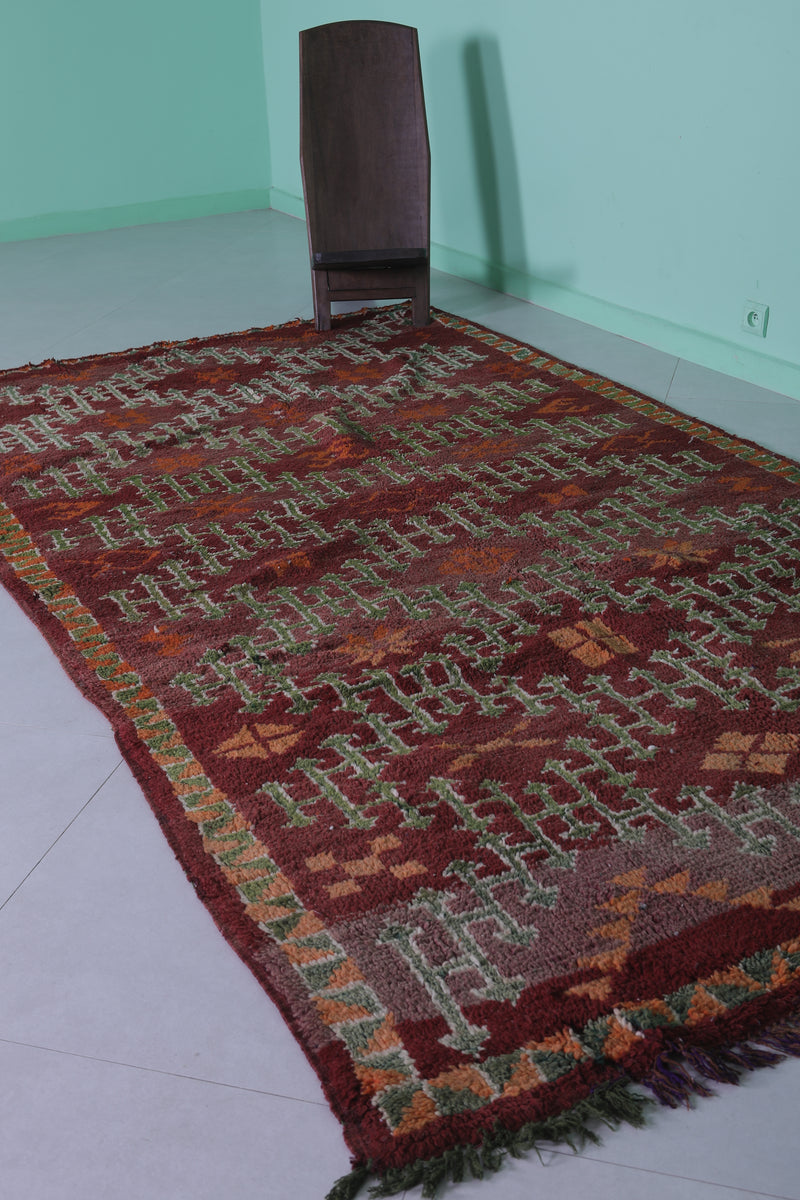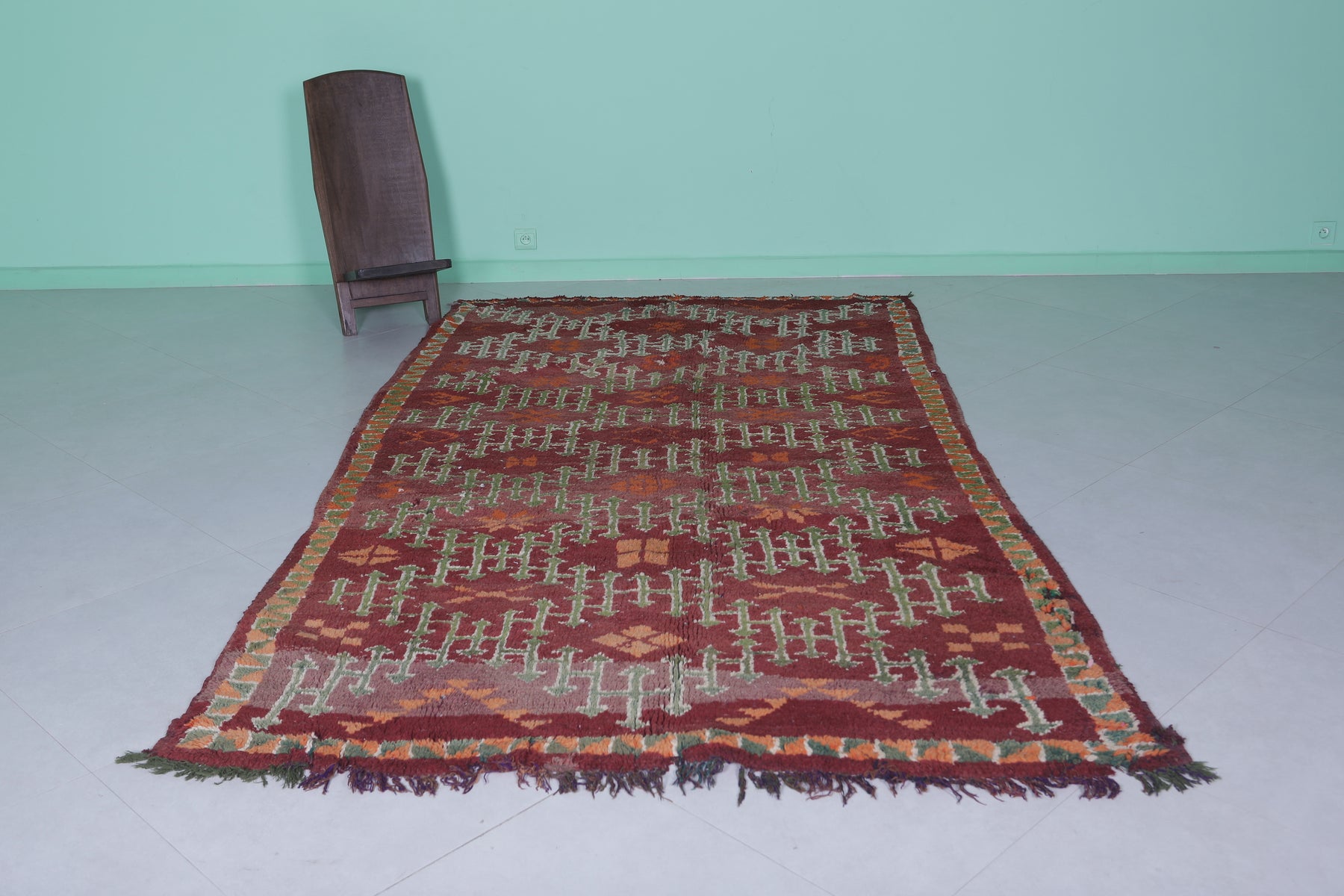 Introduce timeless elegance to your home with this handmade vintage Berber Moroccan rug, measuring 5.4 FT x 9.7 FT. Featuring intricate geometric motifs in rich red and earthy green hues, this rug is a true testament to traditional Moroccan craftsmanship. Handwoven from 100% premium wool, it offers exceptional durability, warmth, and cultural charm. Perfect for living rooms, bedrooms, or entryways, this rug adds a refined and artistic touch to any space.