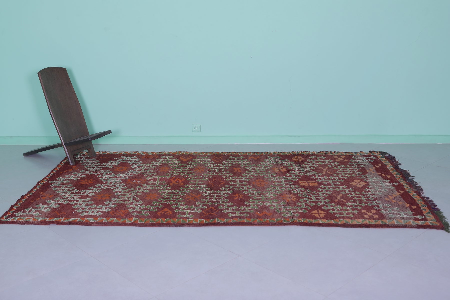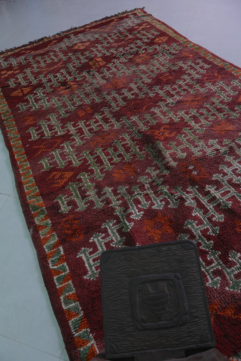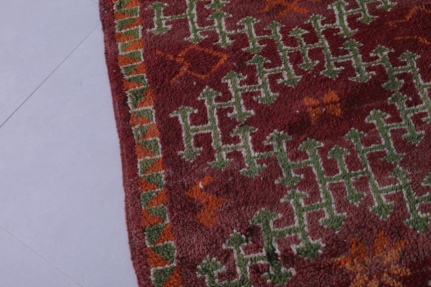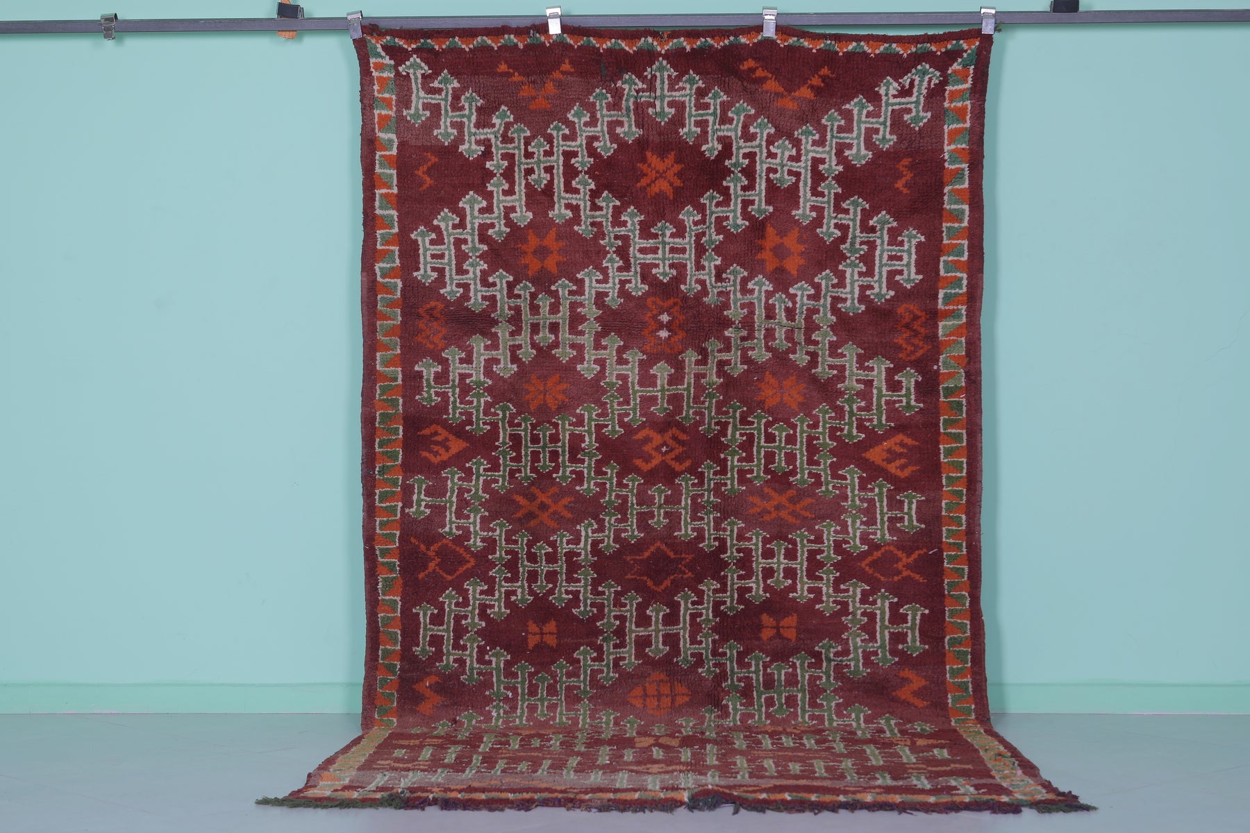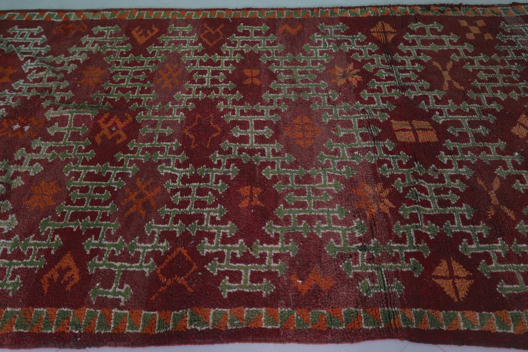 Introduce timeless elegance to your home with this handmade vintage Berber Moroccan rug, measuring 5.4 FT x 9.7 FT. Featuring intricate geometric motifs in rich red and earthy green hues, this rug is a true testament to traditional Moroccan craftsmanship. Handwoven from 100% premium wool, it offers exceptional durability, warmth, and cultural charm. Perfect for living rooms, bedrooms, or entryways, this rug adds a refined and artistic touch to any space.