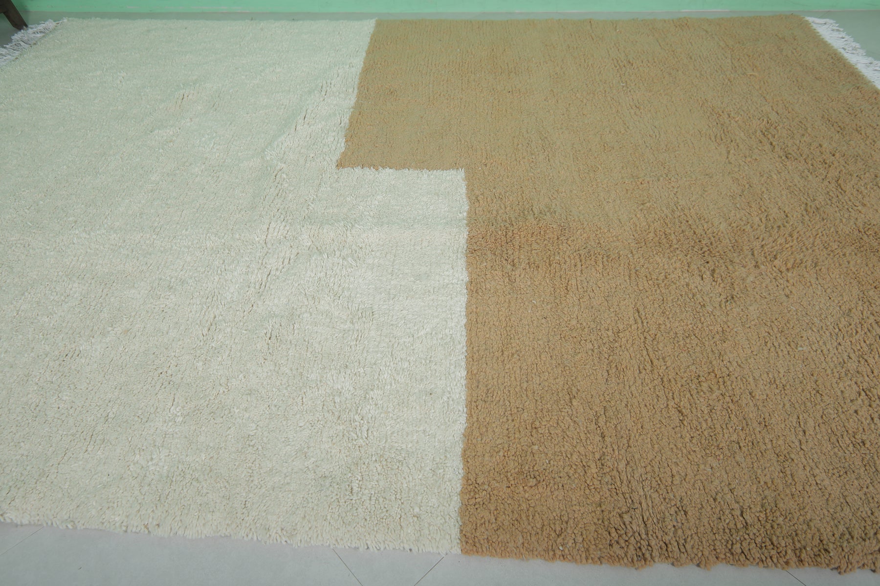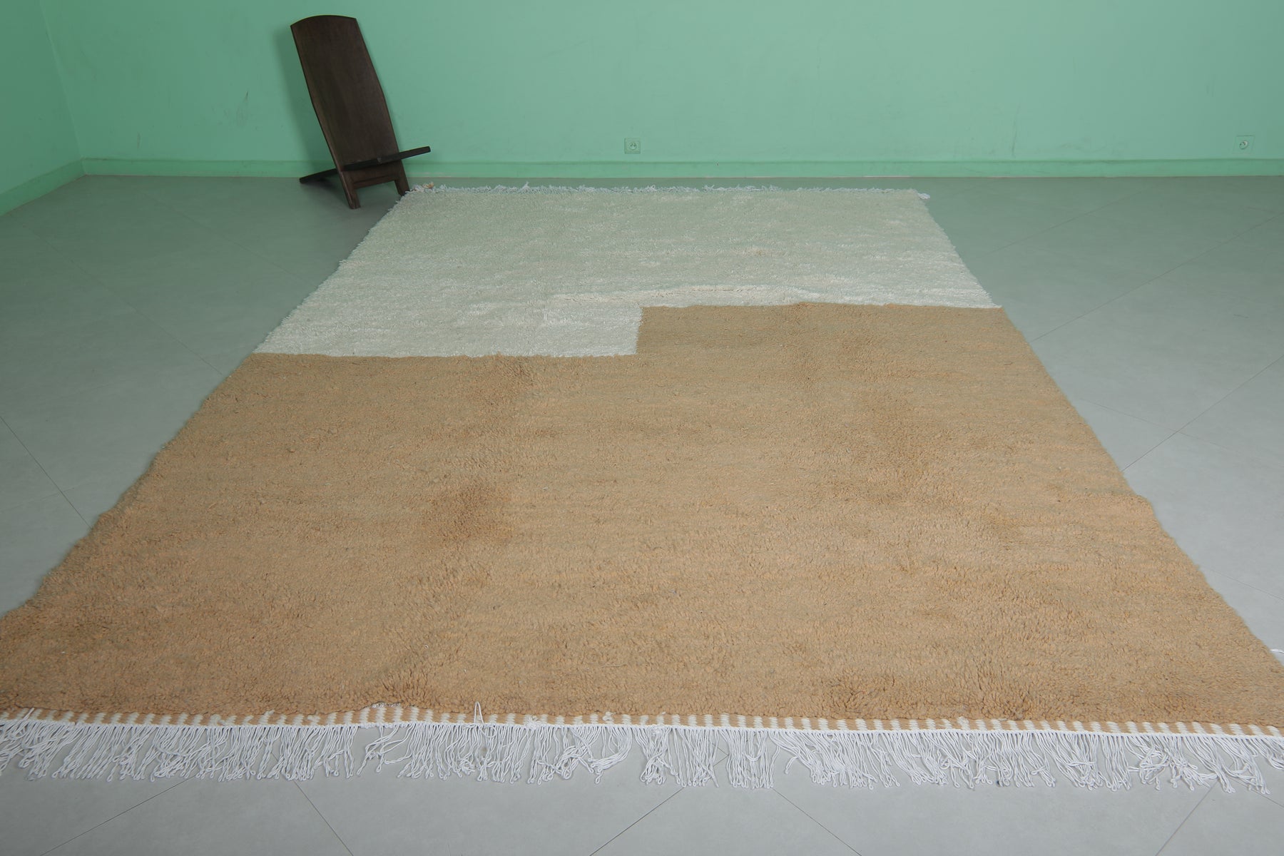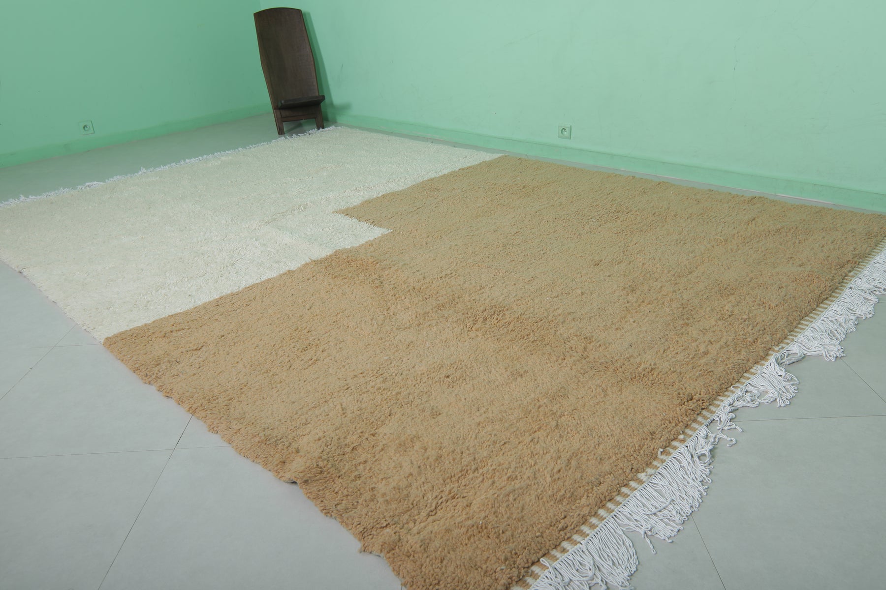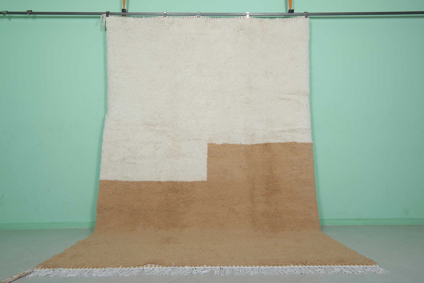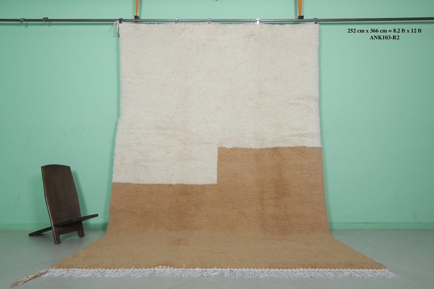 Enhance your living space with this Handmade Moroccan Rug, expertly crafted from high-quality natural wool. Measuring 8.2 x 12 feet (252 CM x 366 CM), this oversized rug features a minimalist two-tone design in neutral beige and white, adding a touch of understated elegance to large living rooms, dining areas, or bedrooms. Its plush texture ensures warmth and comfort, while its durable craftsmanship guarantees long-lasting beauty. A perfect blend of traditional Moroccan artistry and modern style, this rug is a sophisticated addition to any home. Shop now for timeless luxury!