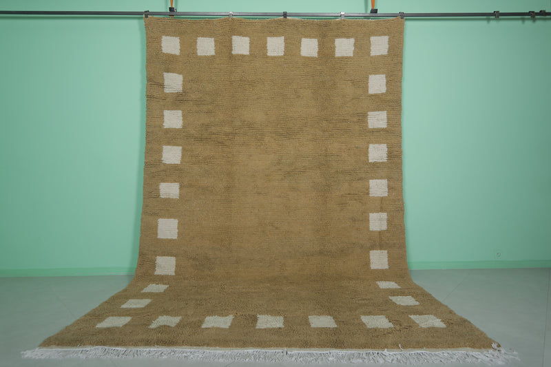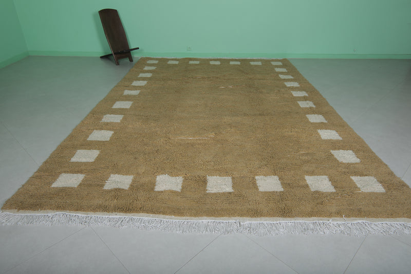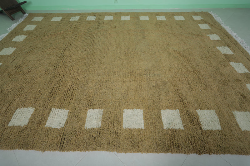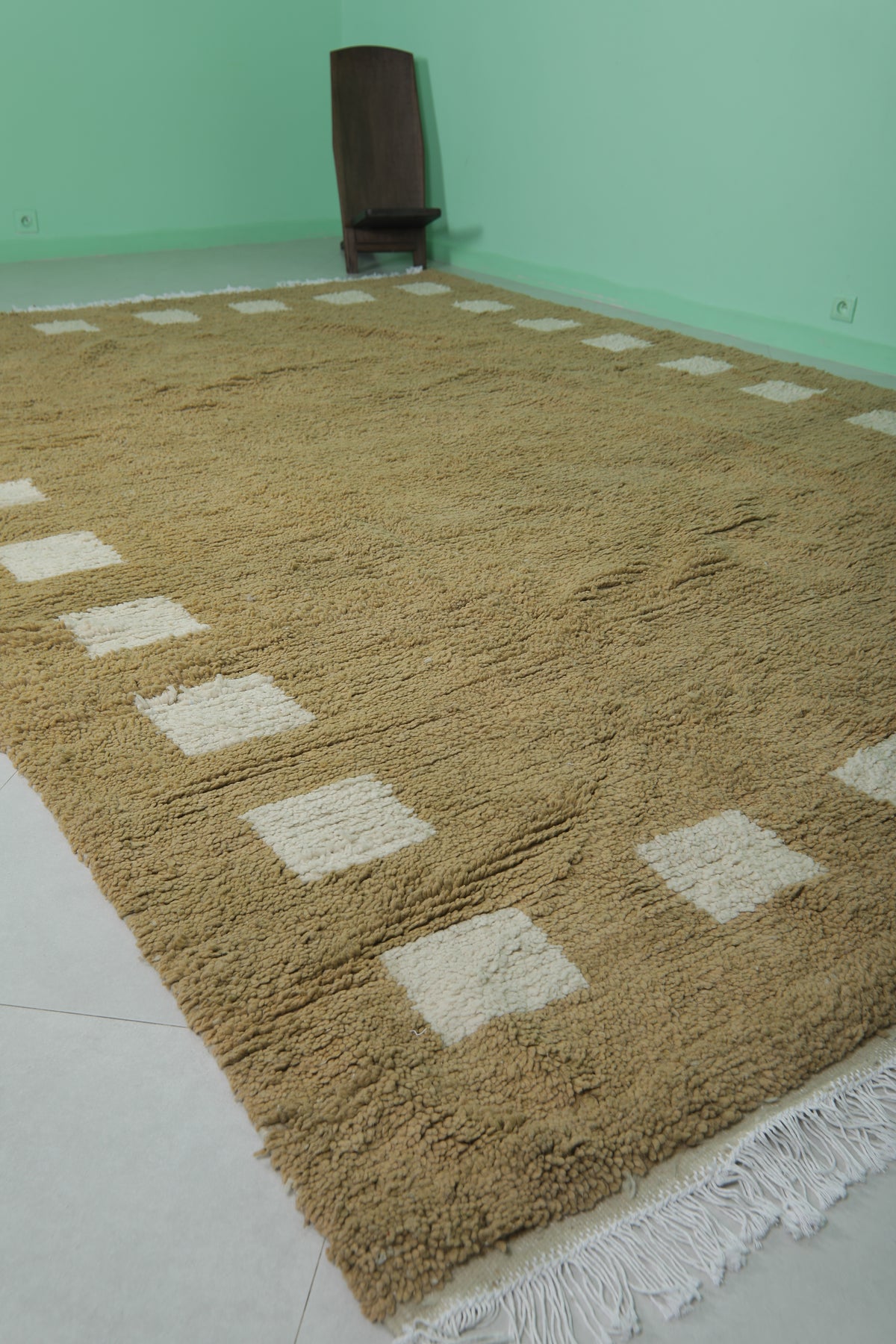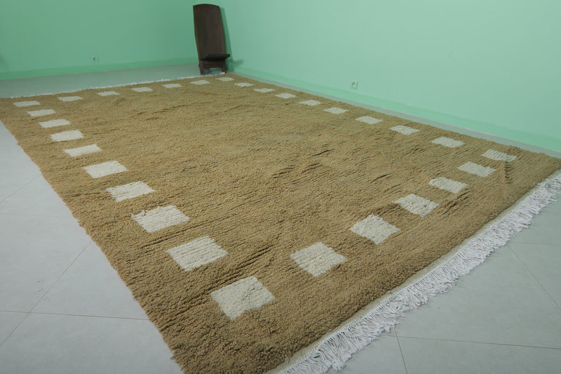 Elevate your interior with this stunning handmade Moroccan rug, measuring 8.8 x 12.8 feet (269 CM x 393 CM). Crafted by skilled artisans, this rug features a unique bordered square pattern in neutral tones, adding sophistication and warmth to your living space. Made from high-quality wool, it offers a plush texture and exceptional durability, perfect for larger areas like living rooms, dining rooms, or offices. The timeless design blends seamlessly with contemporary, bohemian, or classic decor styles. Invest in this luxurious, handwoven Moroccan masterpiece for a touch of elegance and authenticity in your home.