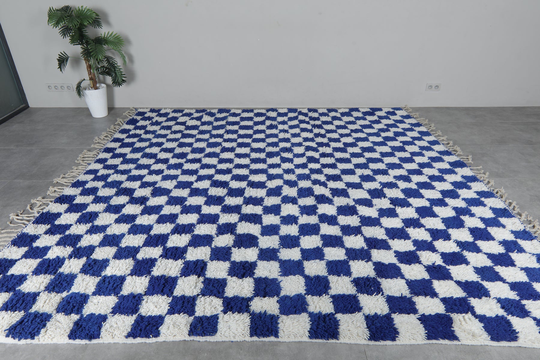 Make a statement with this stunning handmade Moroccan rug, featuring a vibrant blue and white checkered pattern that brings a modern yet timeless charm to any space. Designed for both style and comfort, this luxurious wool rug is the perfect blend of authentic craftsmanship and contemporary design.