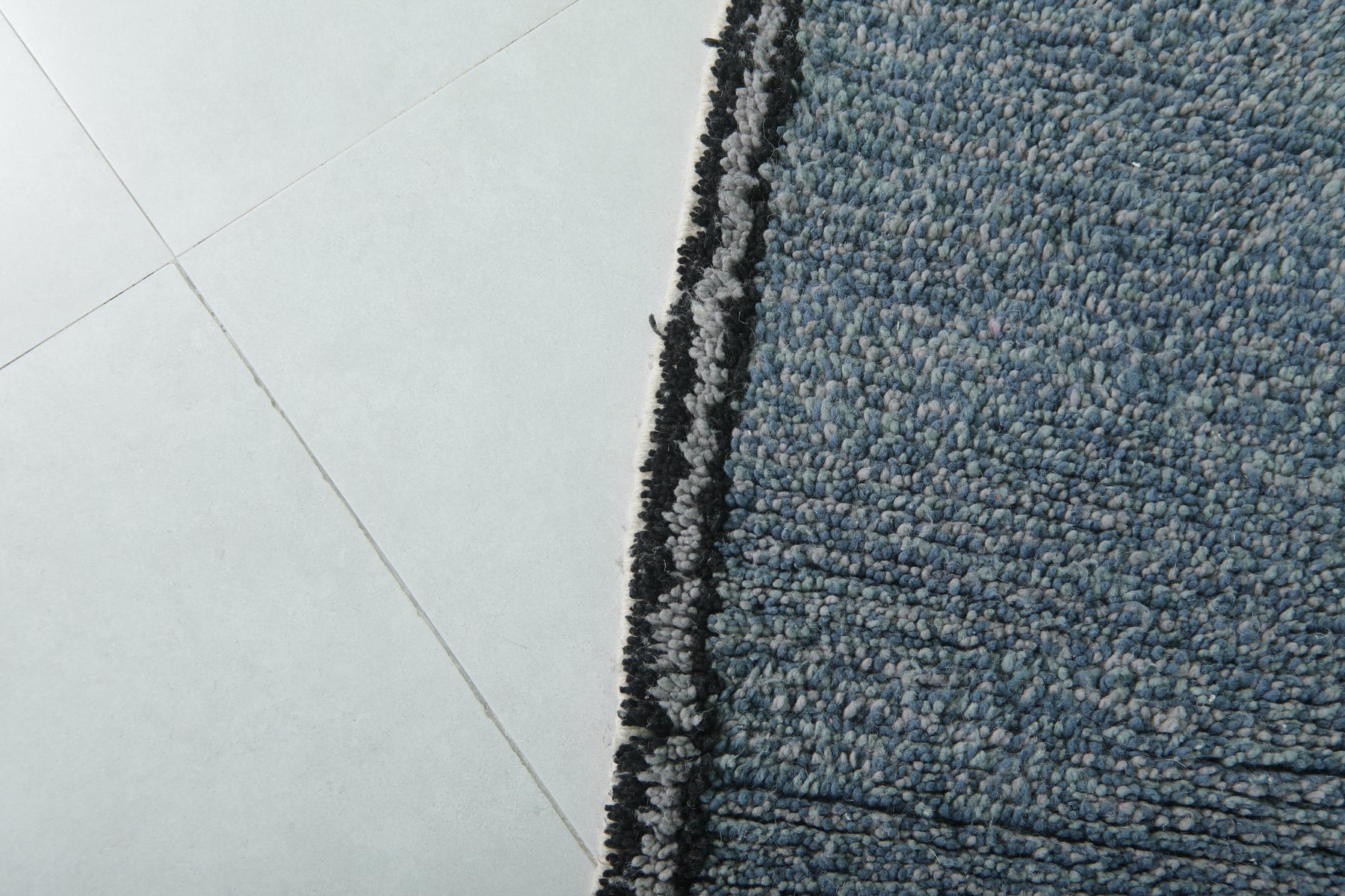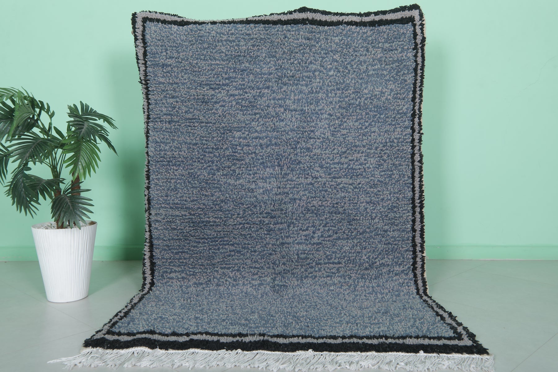Enhance your space with this Handmade Moroccan Wool Rug, sized at 4.2 x 6 feet (129 CM x 185 CM). Featuring a rich blue hue with elegant black-bordered edges, this plush, high-pile rug brings a sense of warmth and sophistication to any room.