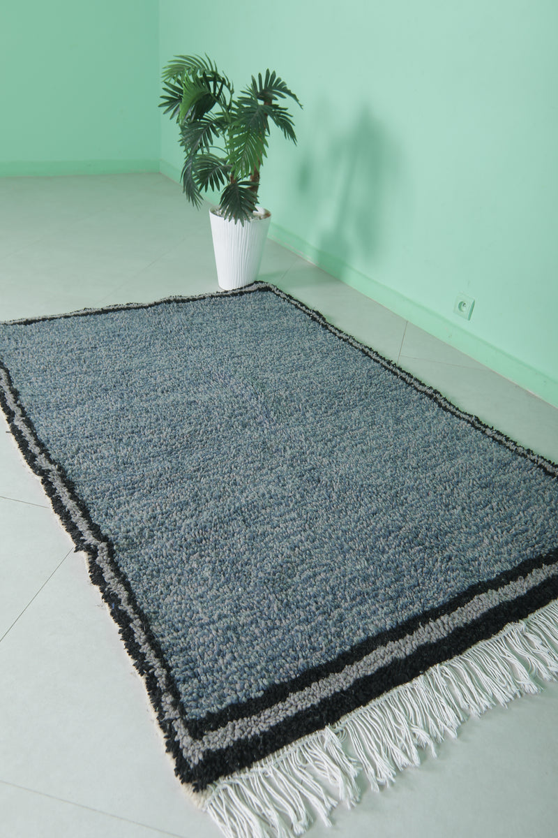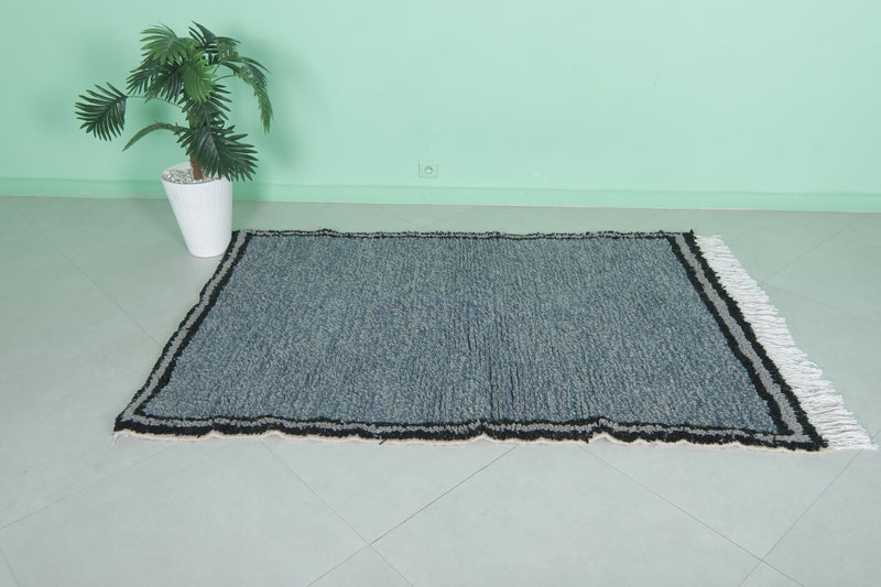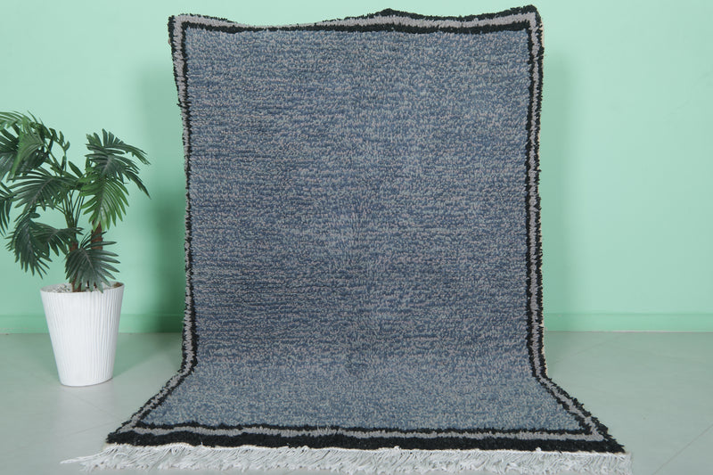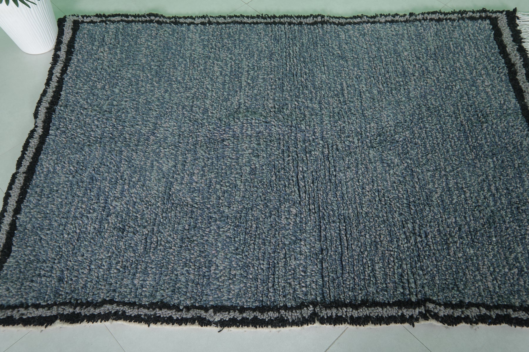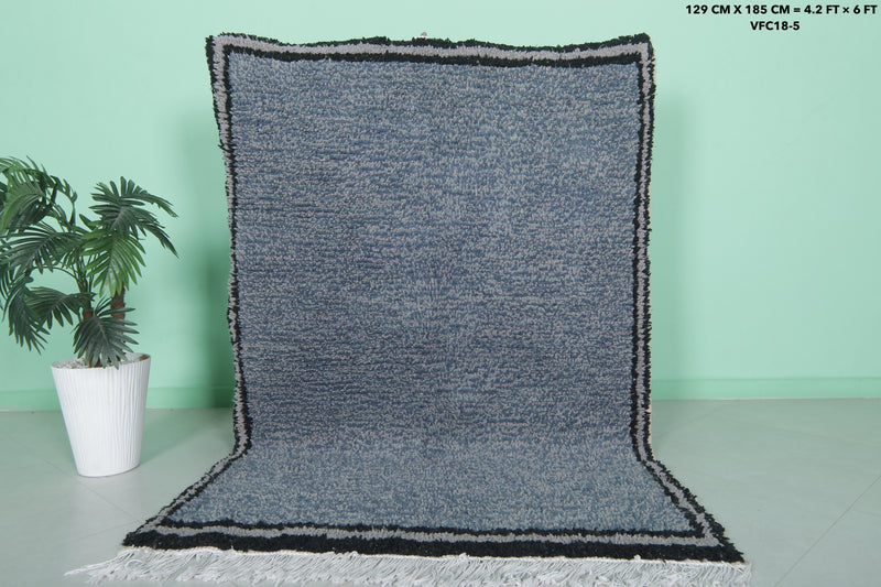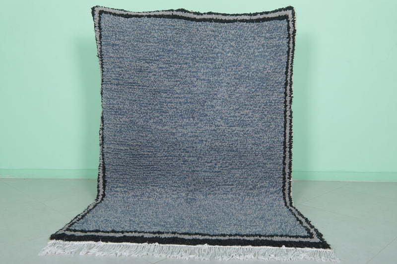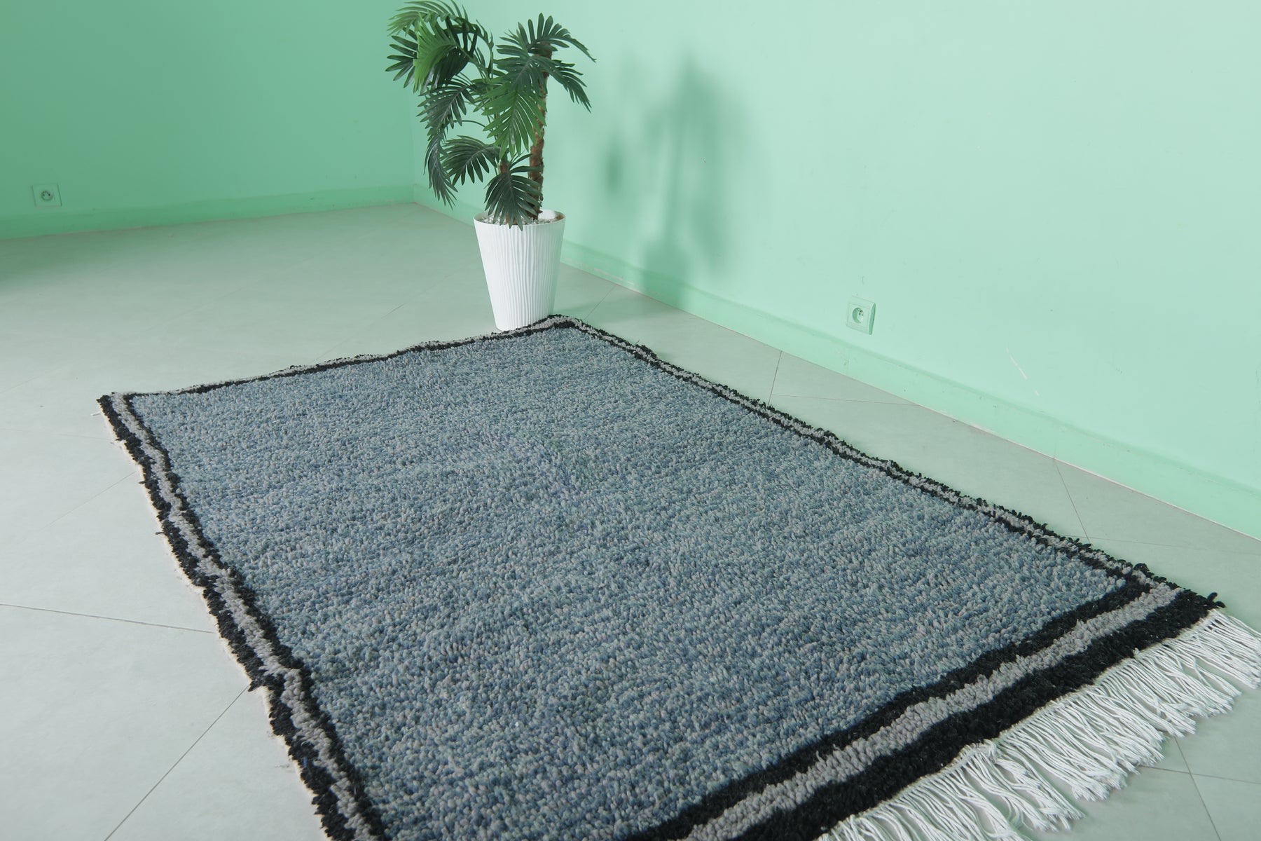 Handmade Moroccan wool rug – 4.2x6 FT - Blue berber carpet - beni ourain rug
