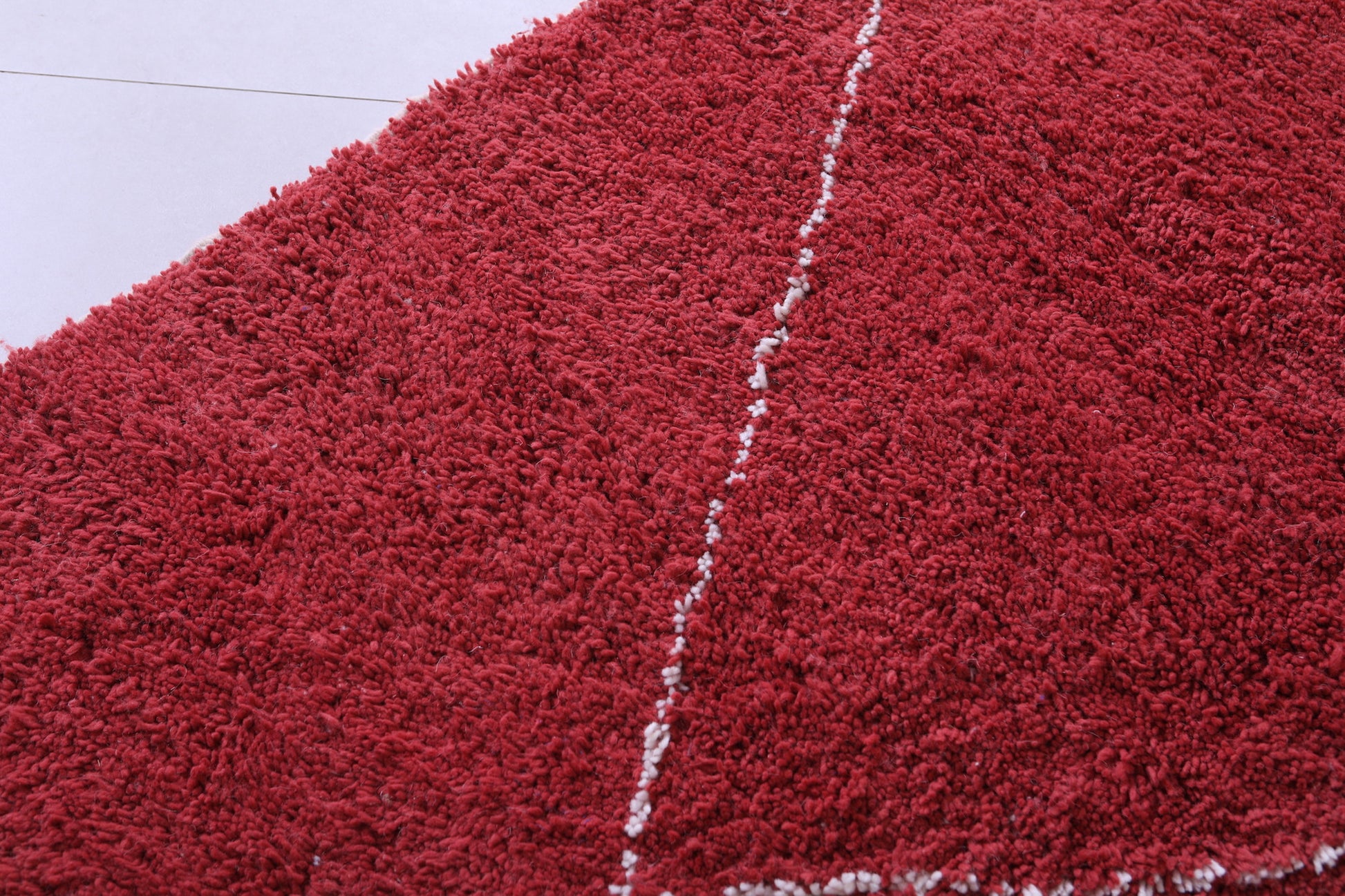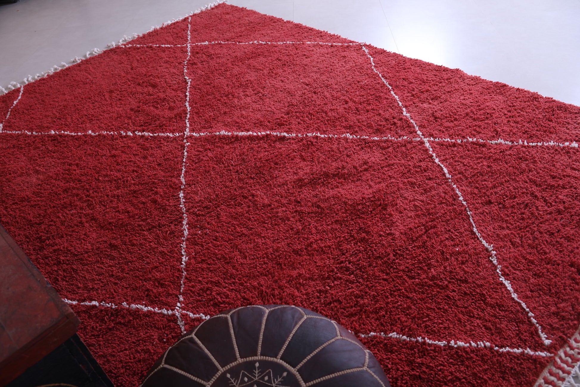 • Classic Beni Ourain diamond motifs in ivory on a deep red base