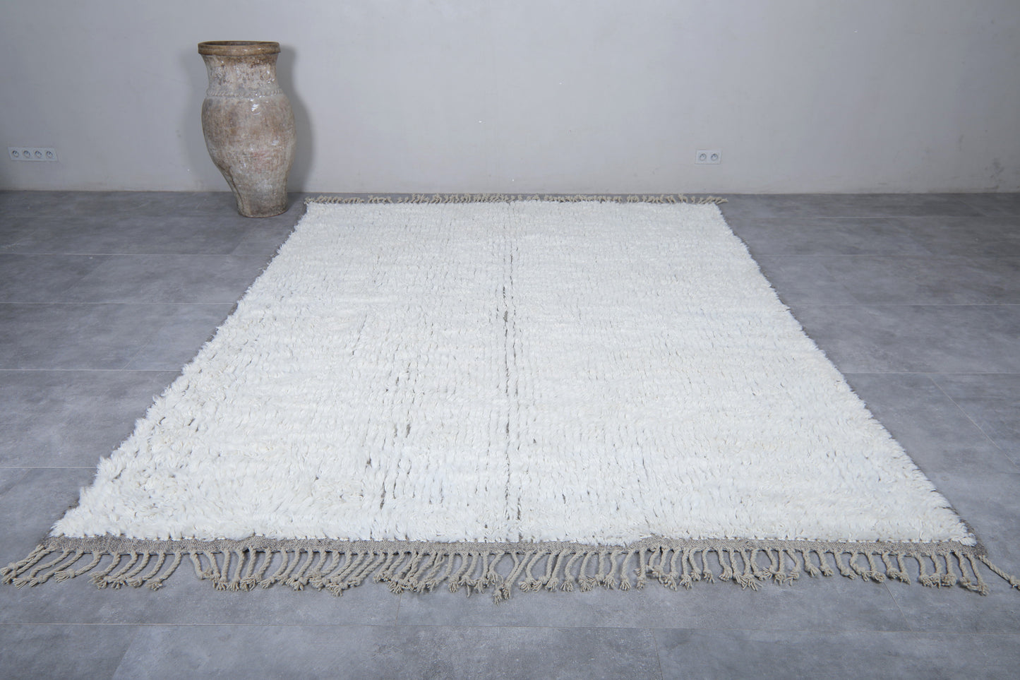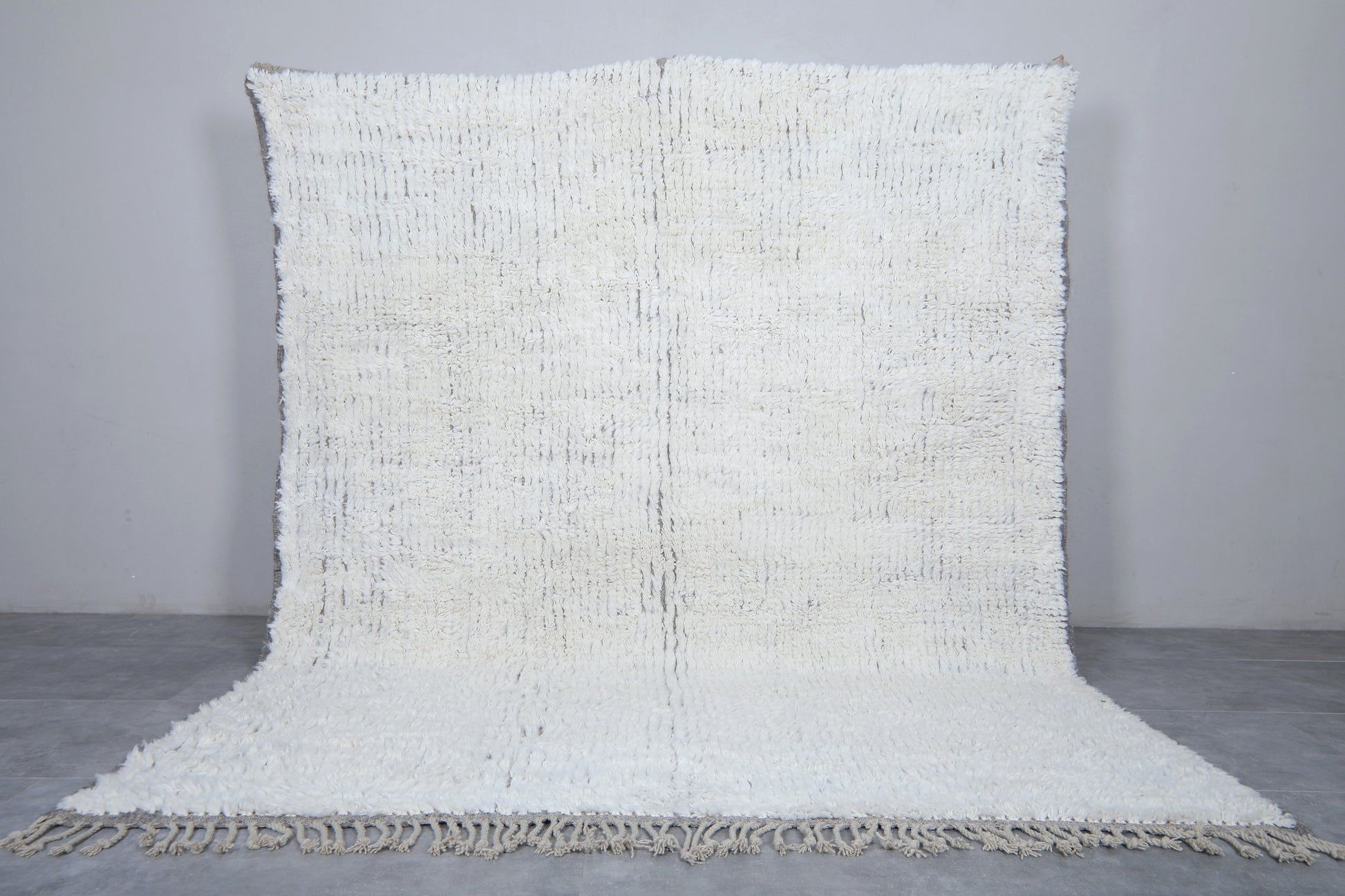Add effortless elegance to your space with this handwoven Beni ourain rug, crafted from 100% natural white wool and featuring a subtle, minimalist pattern in soft neutral tones. Its plush, high-pile texture provides luxurious comfort underfoot, while the tone-on-tone design brings depth and sophistication without overpowering your decor. Perfect for modern, minimalist, or Scandinavian-inspired interiors, this Moroccan rug offers a refined blend of tradition and contemporary style.