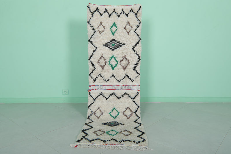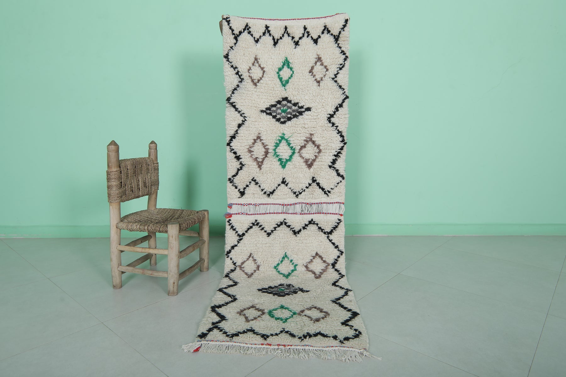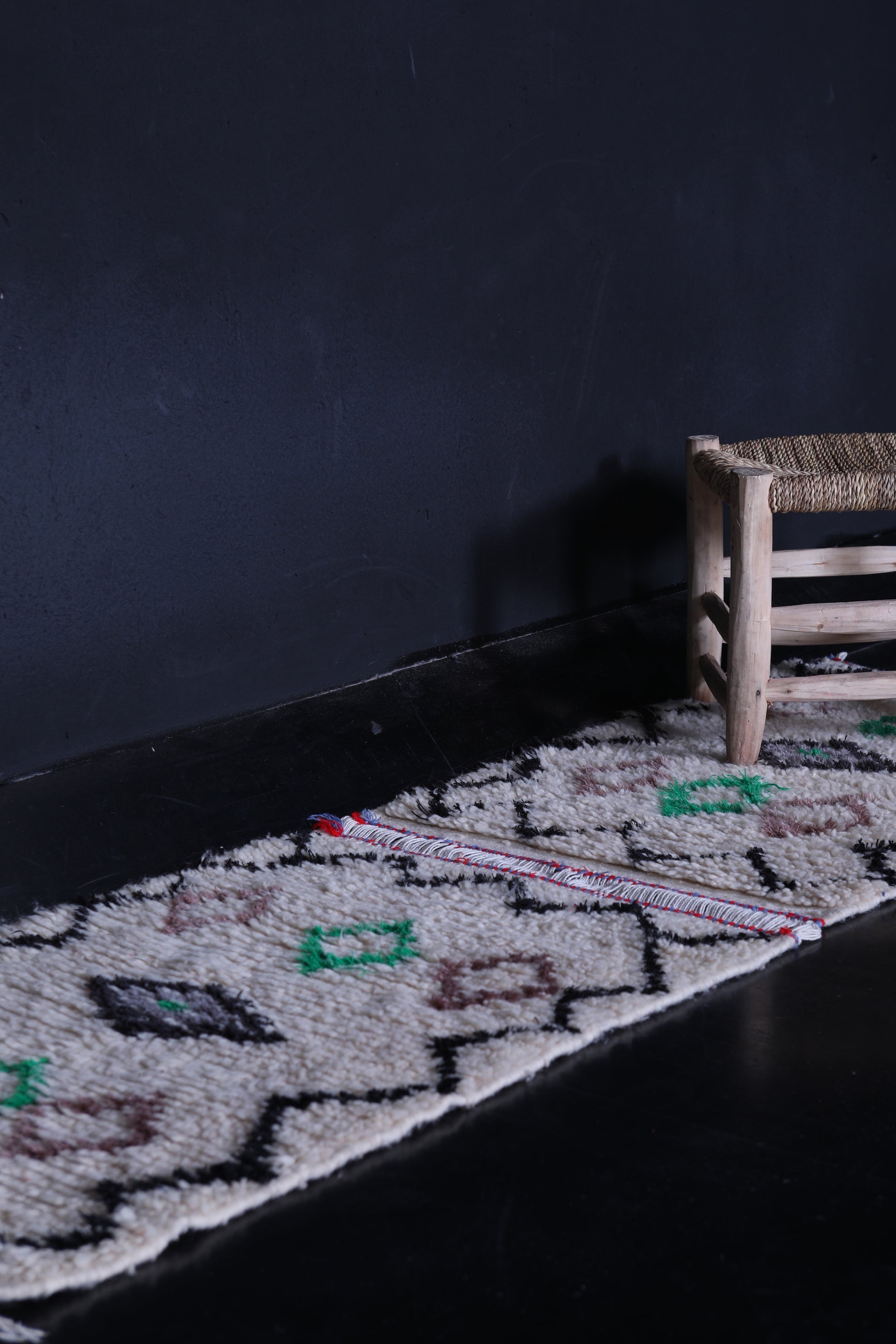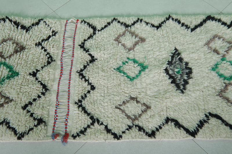 Add Moroccan charm to your home with this Handmade White Berber Runner Rug, sized at 1.9 x 5.9 feet. Handwoven in Morocco, this soft and stylish rug features bold black and green tribal motifs set against a crisp white background. Perfect for hallways, bedrooms, or entryways, it brings warmth, heritage, and minimalistic flair into any space.