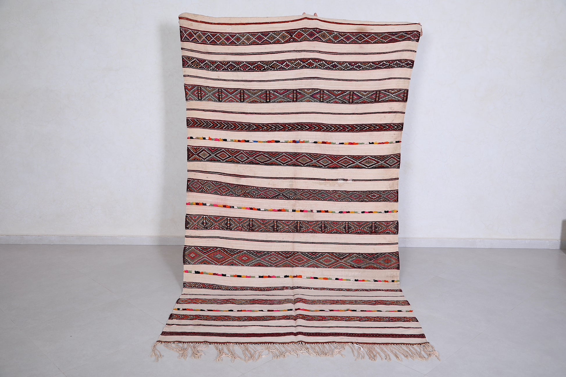 The Dimensions of this Authentic Handwoven berber rug does not include tassels.