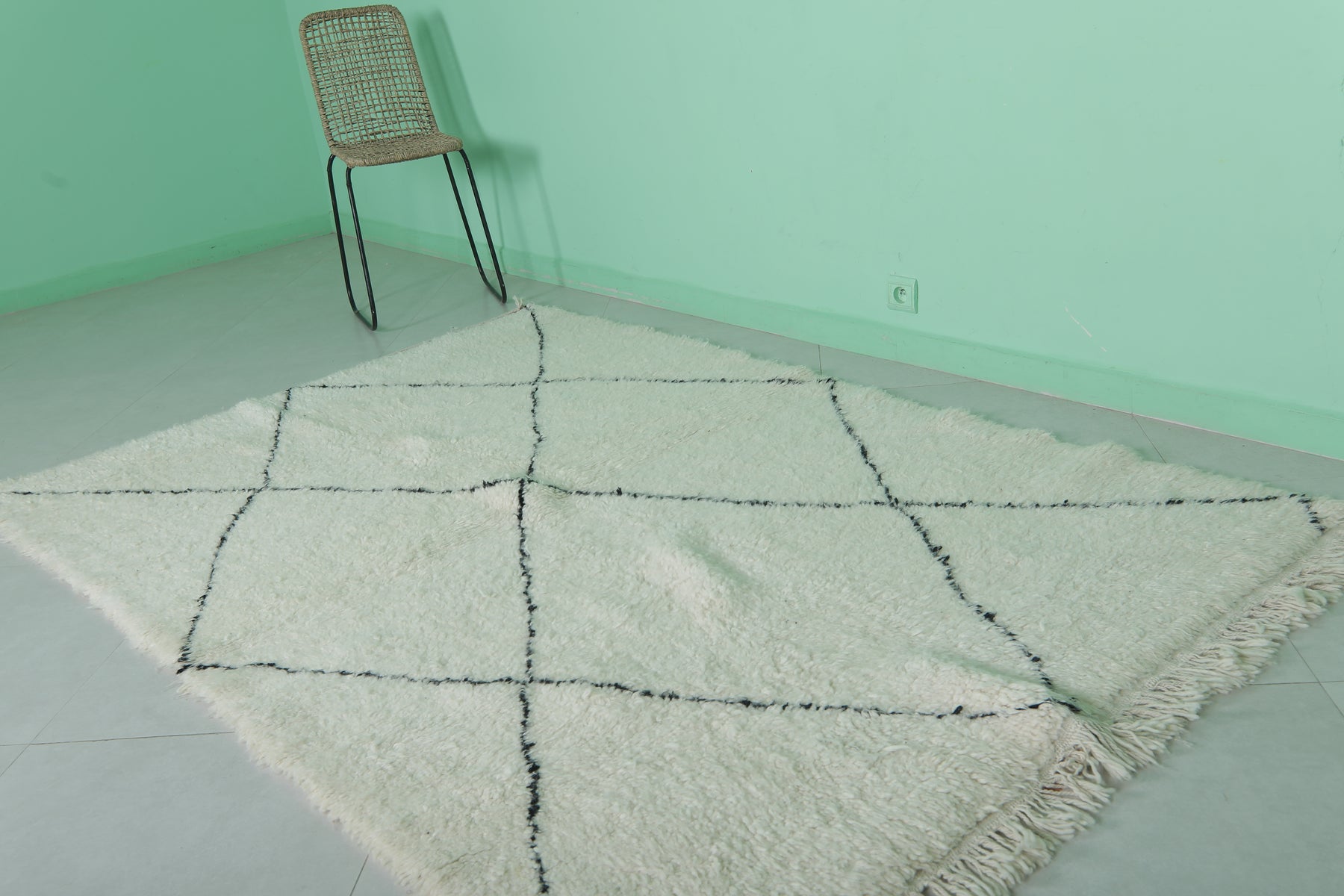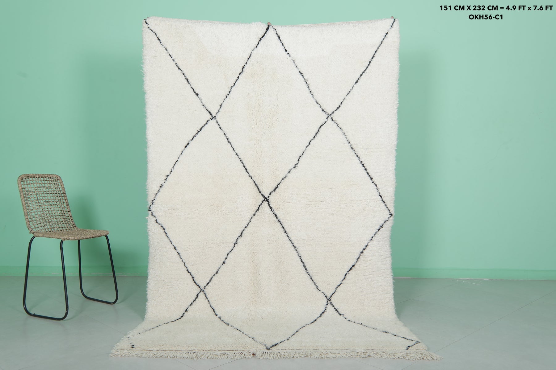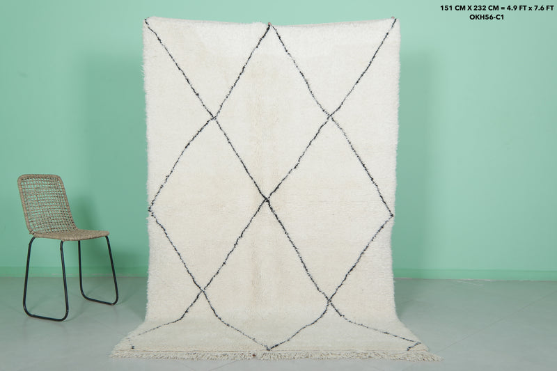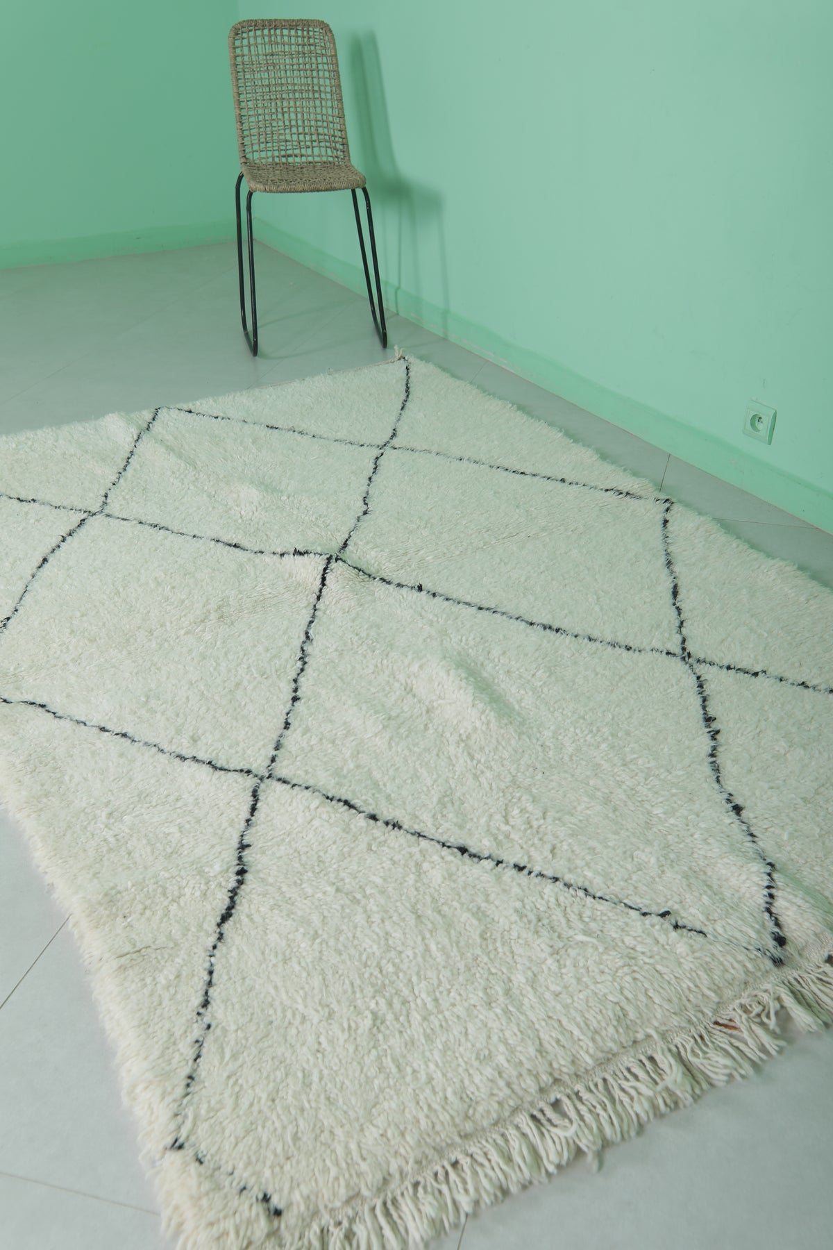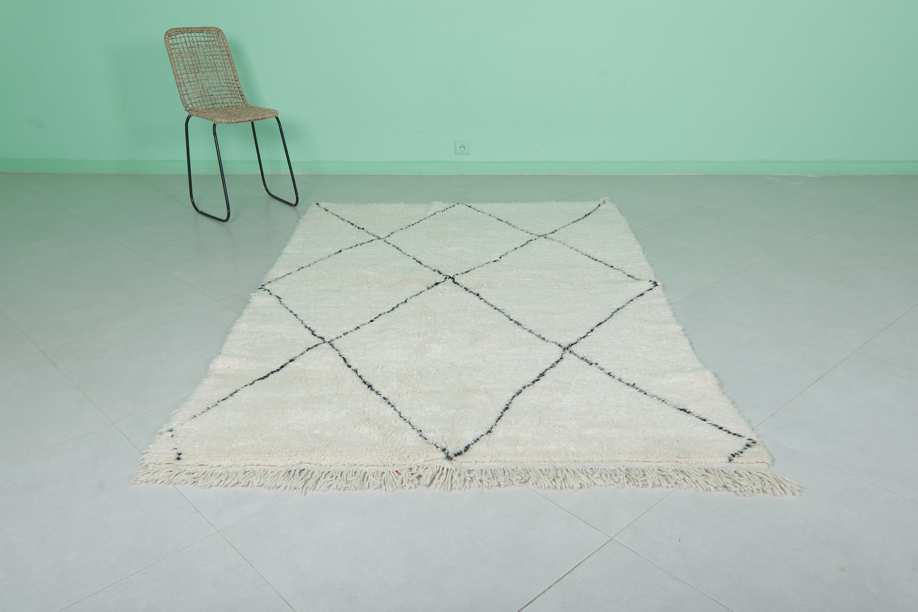 Handwoven diamond Moroccan rug – 4.9x7.6 FT - Beni ourain wool