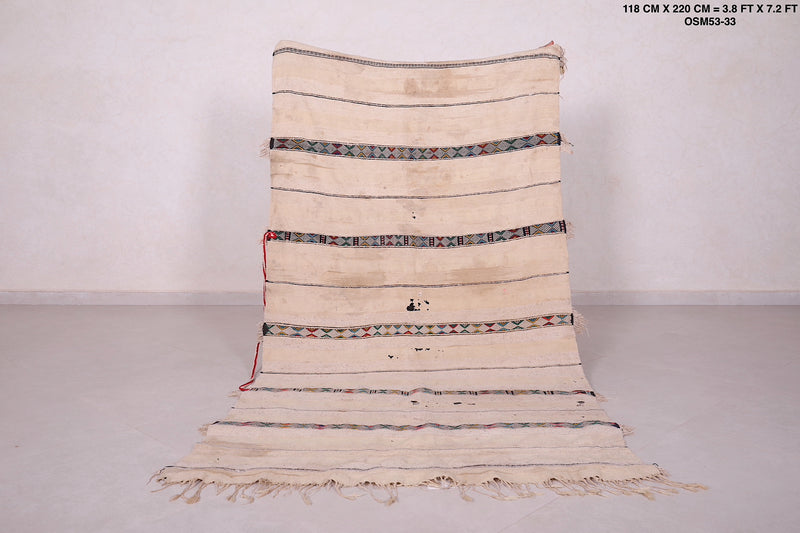 Handwoven Kilim 3.8 FT X 7.2 FT – Vintage Moroccan Rug