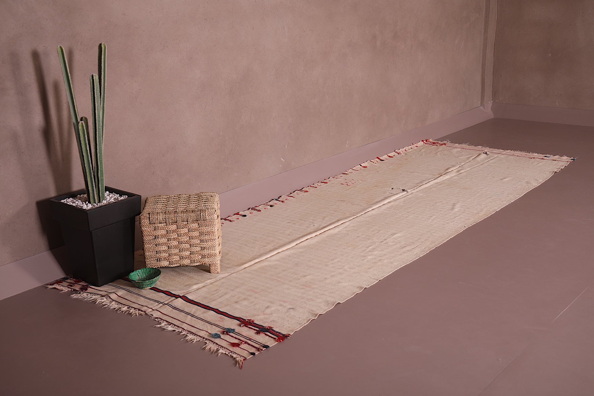 Handwoven Kilim 3.9 FT X 11.1 FT – Moroccan Runner Rug with Subtle Embroidery