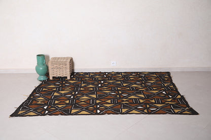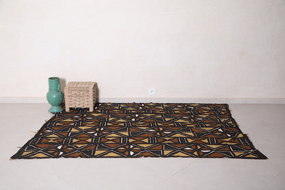 This 5.2 x 7 feet African-Inspired Handwoven Kilim Rug features bold tribal patterns in earthy tones of black, brown, and beige. A stunning blend of tradition and modern aesthetics, this artisan-crafted rug is perfect for those seeking cultural artistry and timeless elegance.