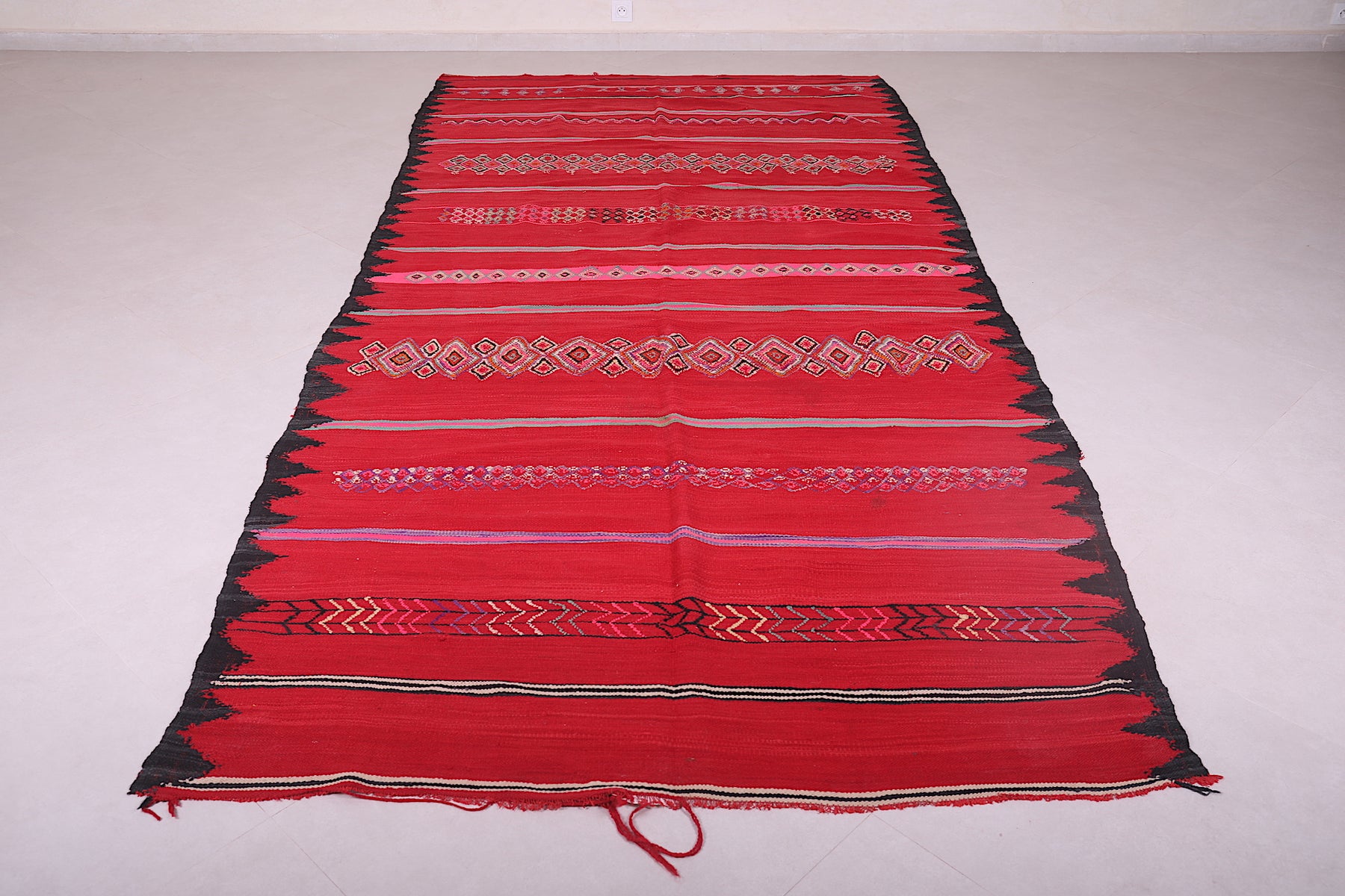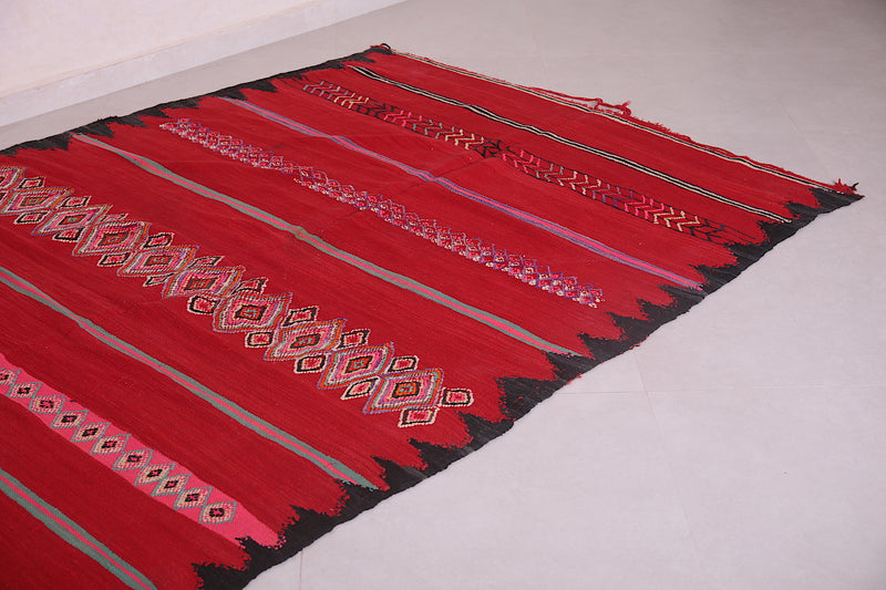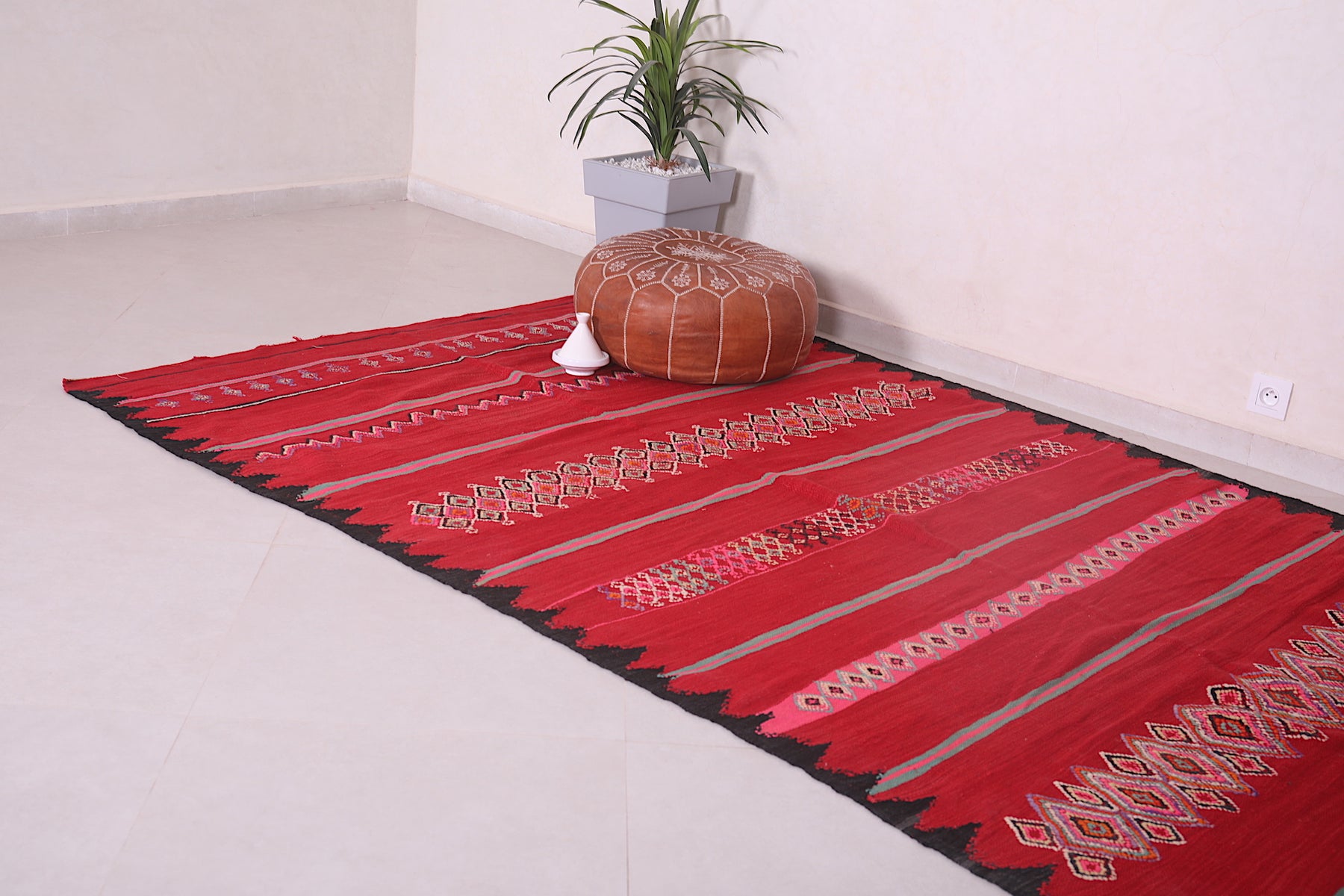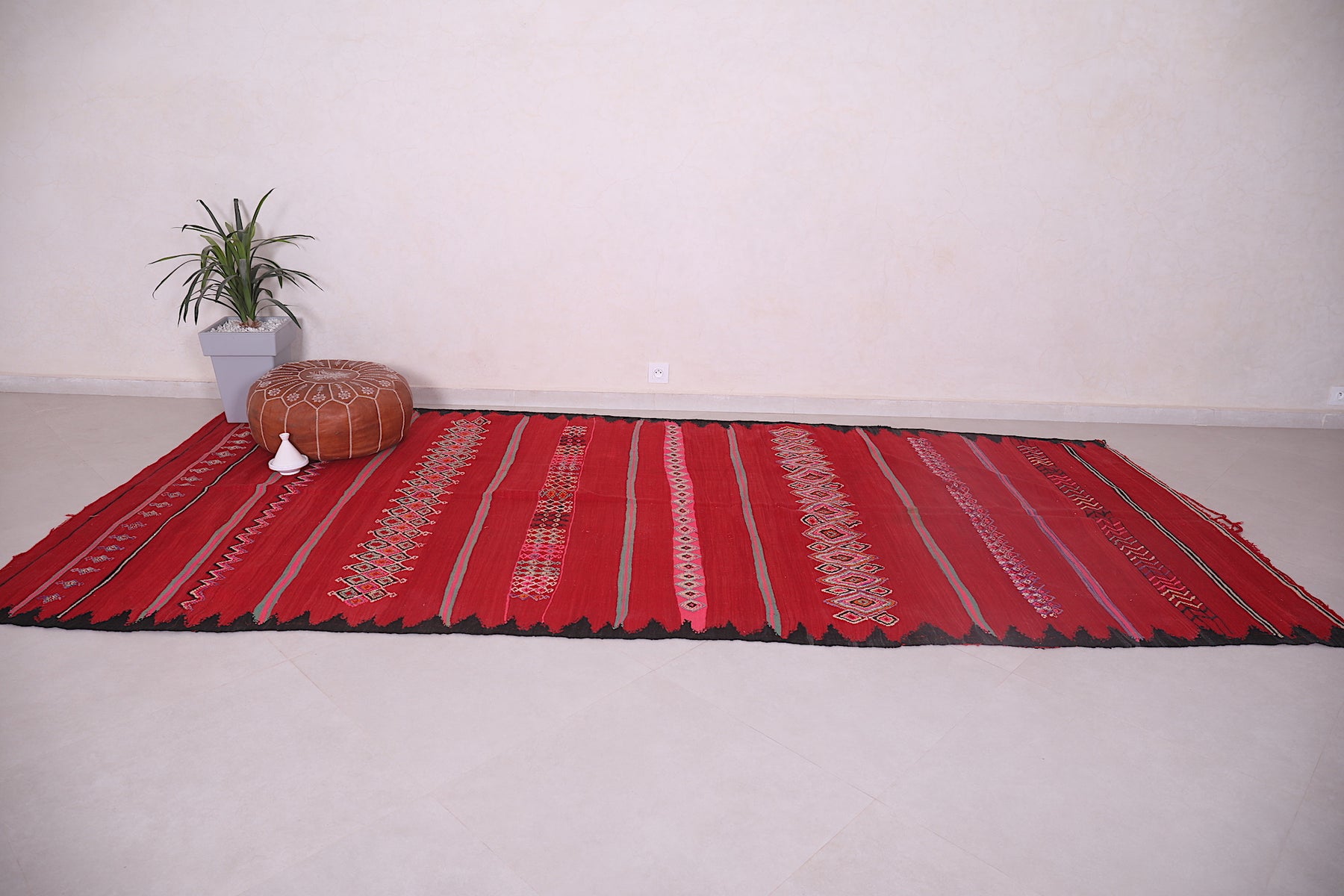 Handwoven Kilim 5.5 x 12 Feet – Vibrant Red Moroccan Wool Rug