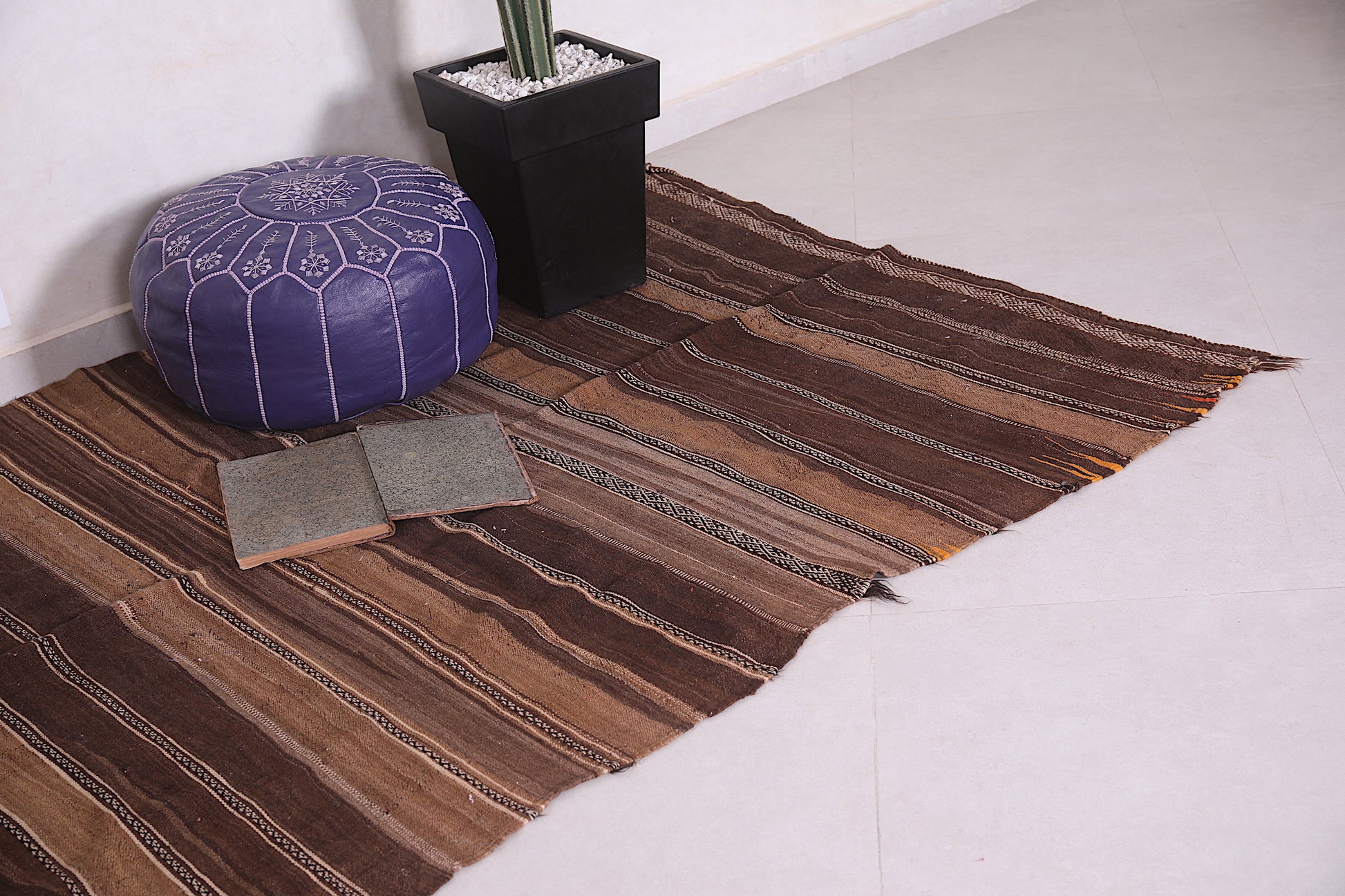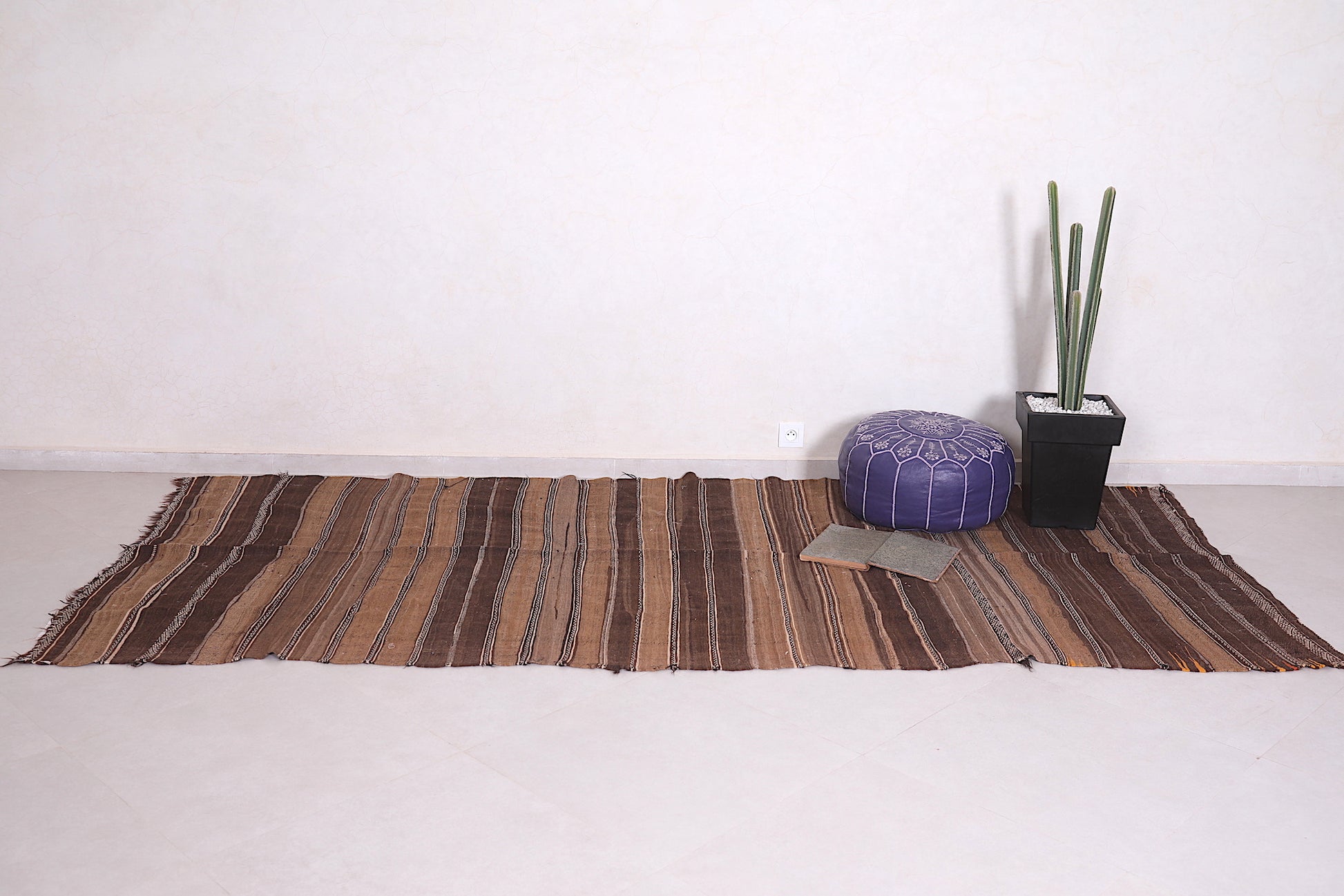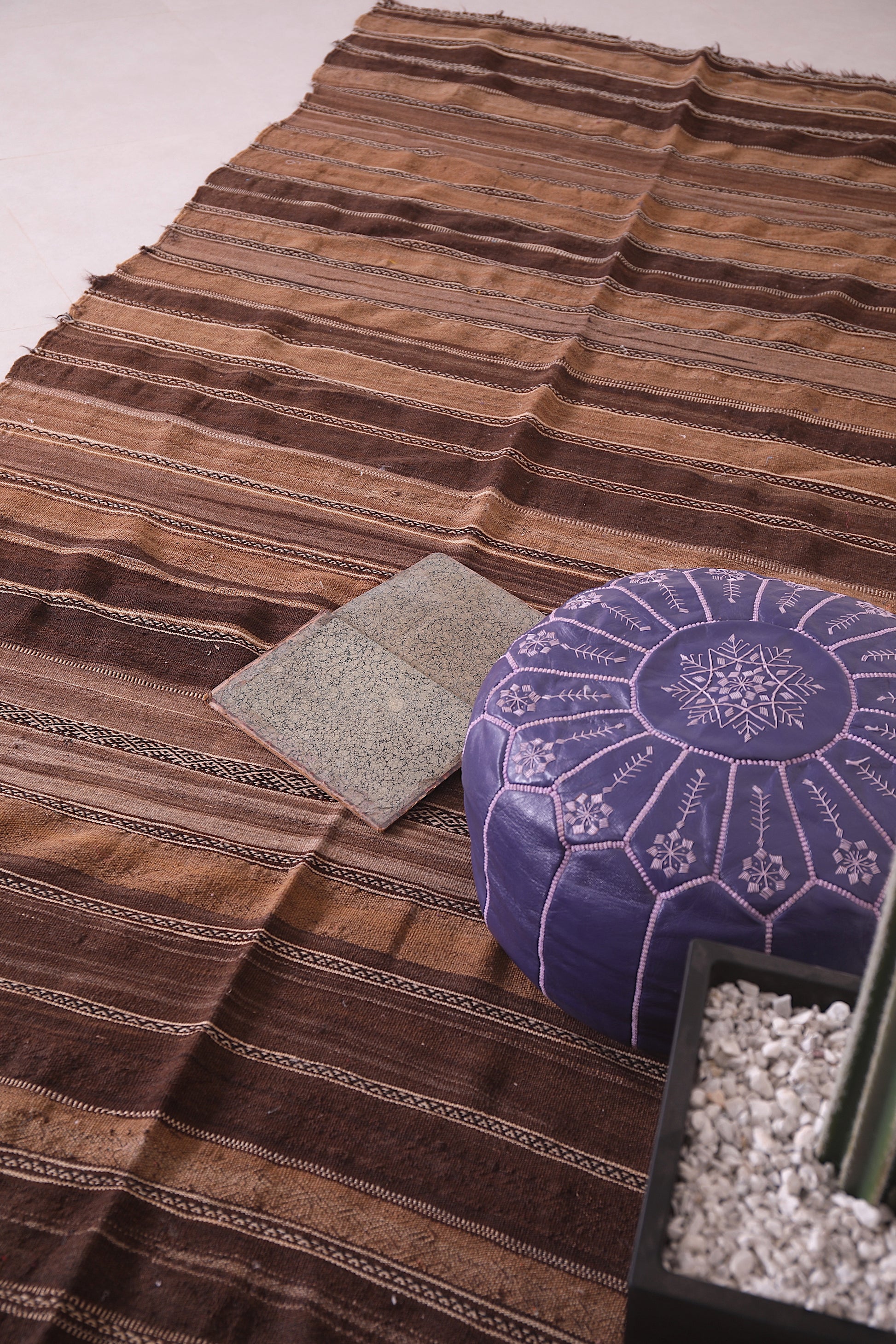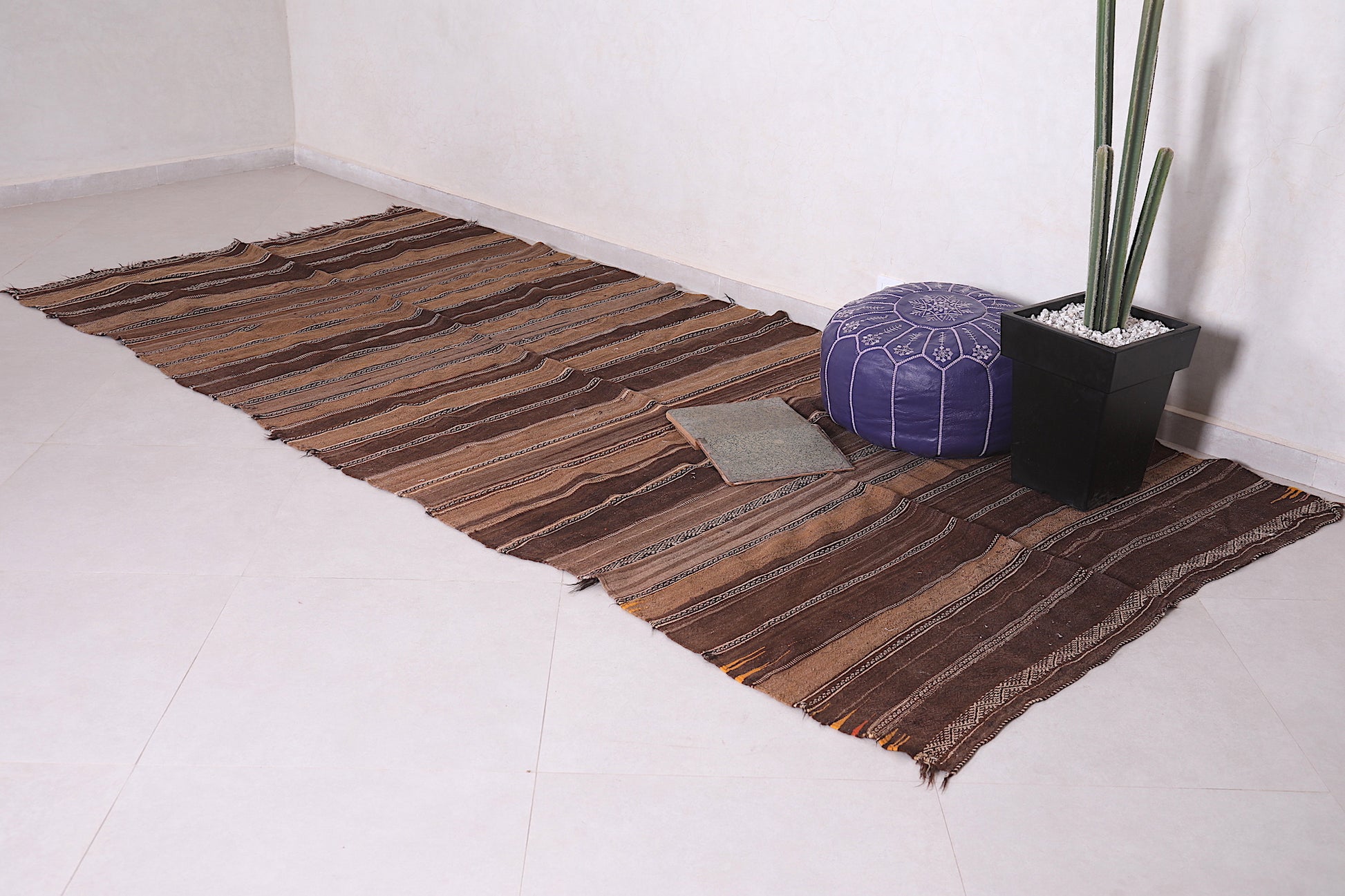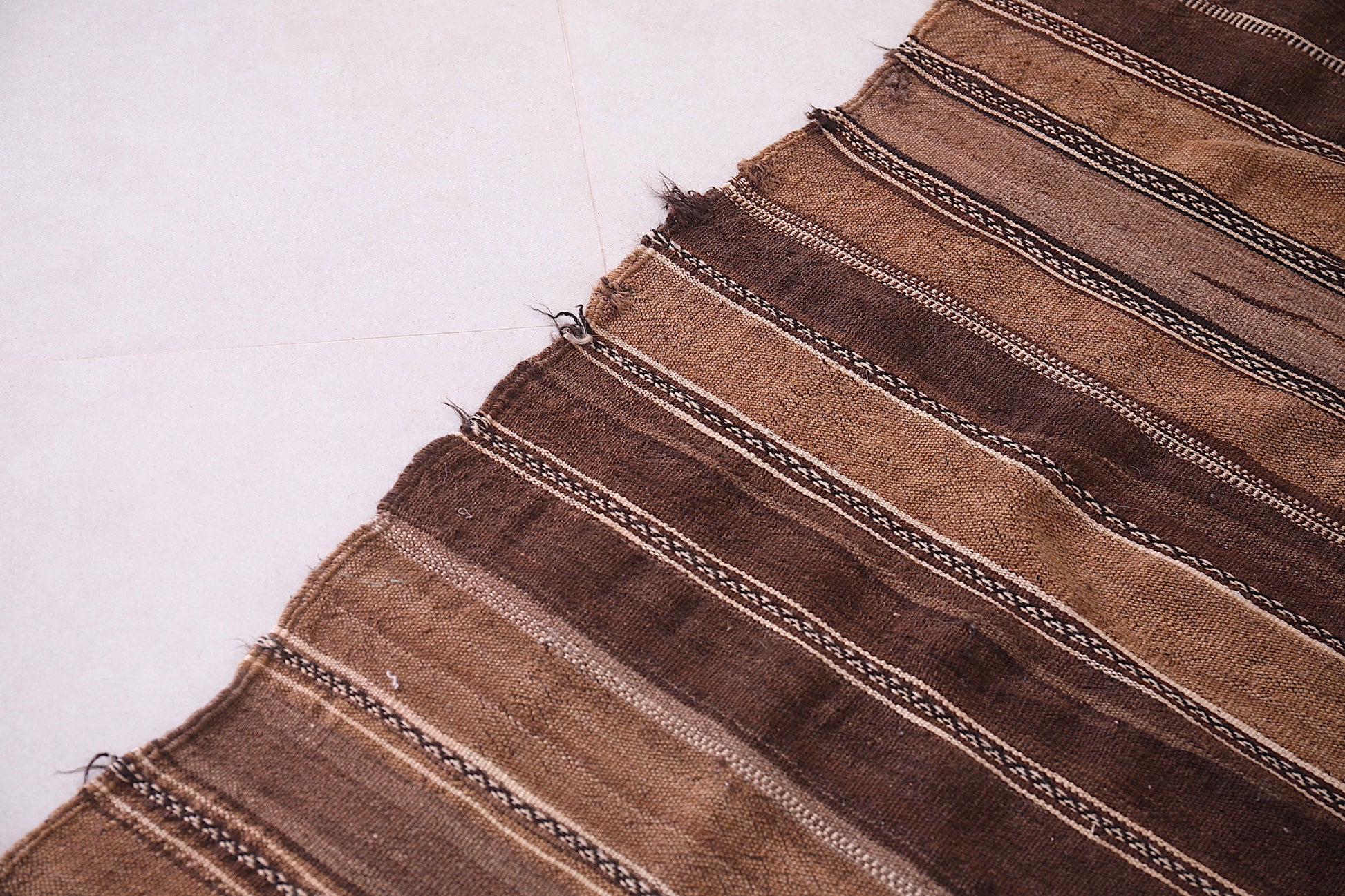 This 5 FT x 10.6 FT handwoven Kilim rug brings a warm, earthy palette to your space with its rich brown tones and traditional striped patterns. Expertly crafted by Moroccan artisans, it combines timeless design with everyday durability—perfect for large rooms, hallways, or layered rustic settings.