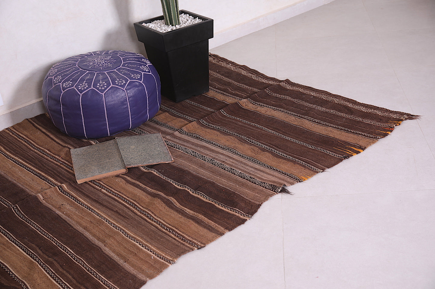 Handwoven Kilim 5 x 10.6 Feet – Earthy Brown Toned Striped Rug