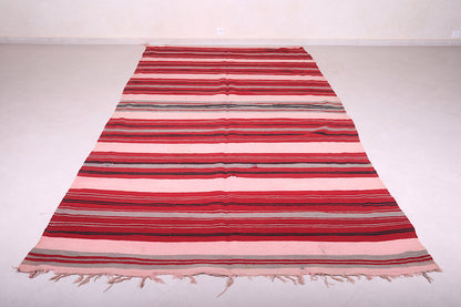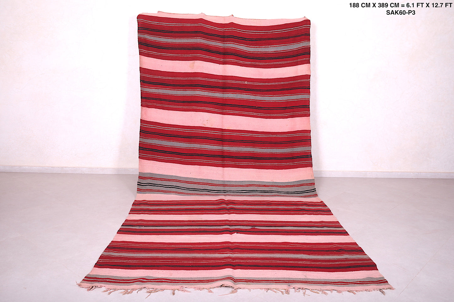 Handwoven Kilim 6.1 x 12.7 Feet – Vibrant Red Striped Moroccan Rug