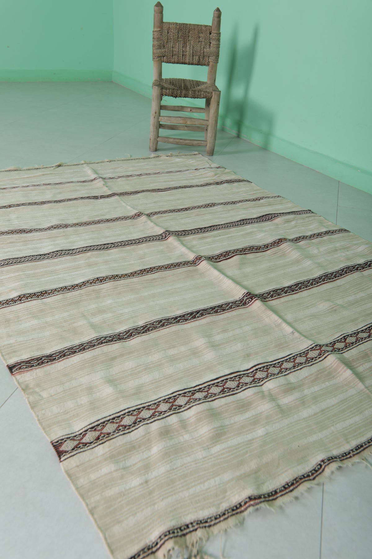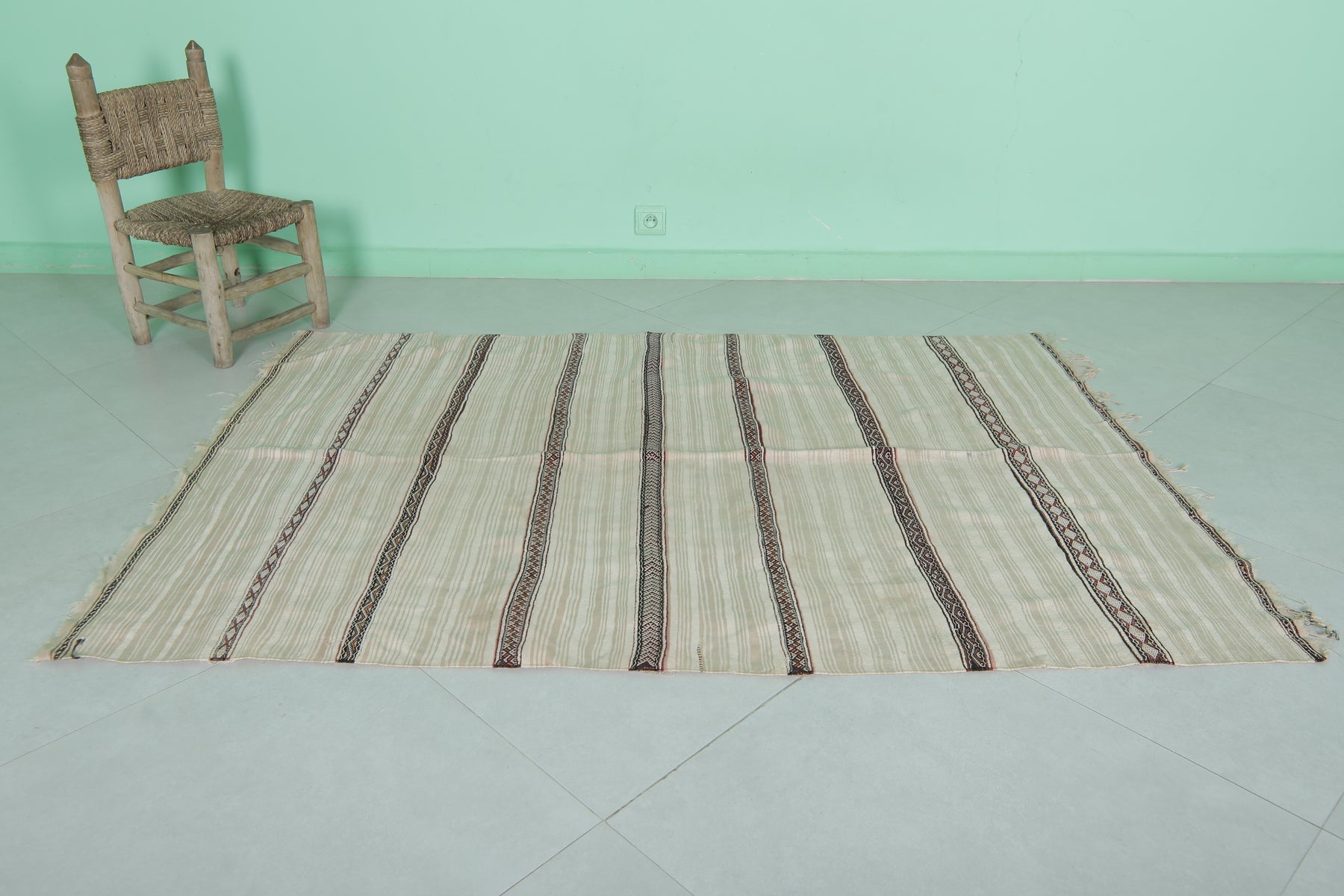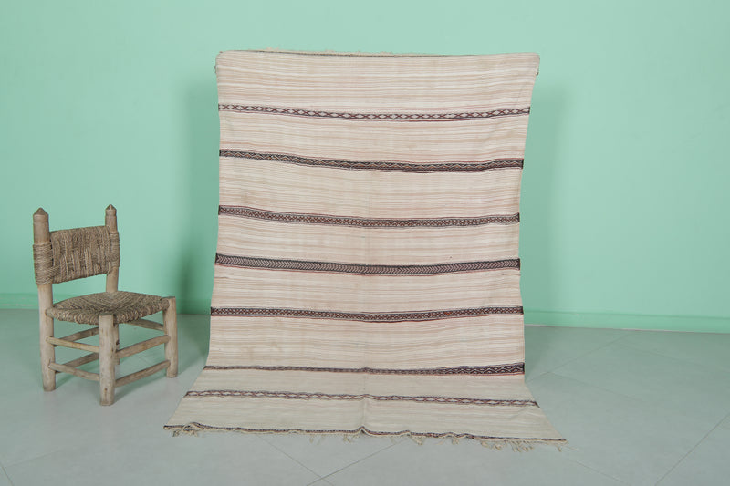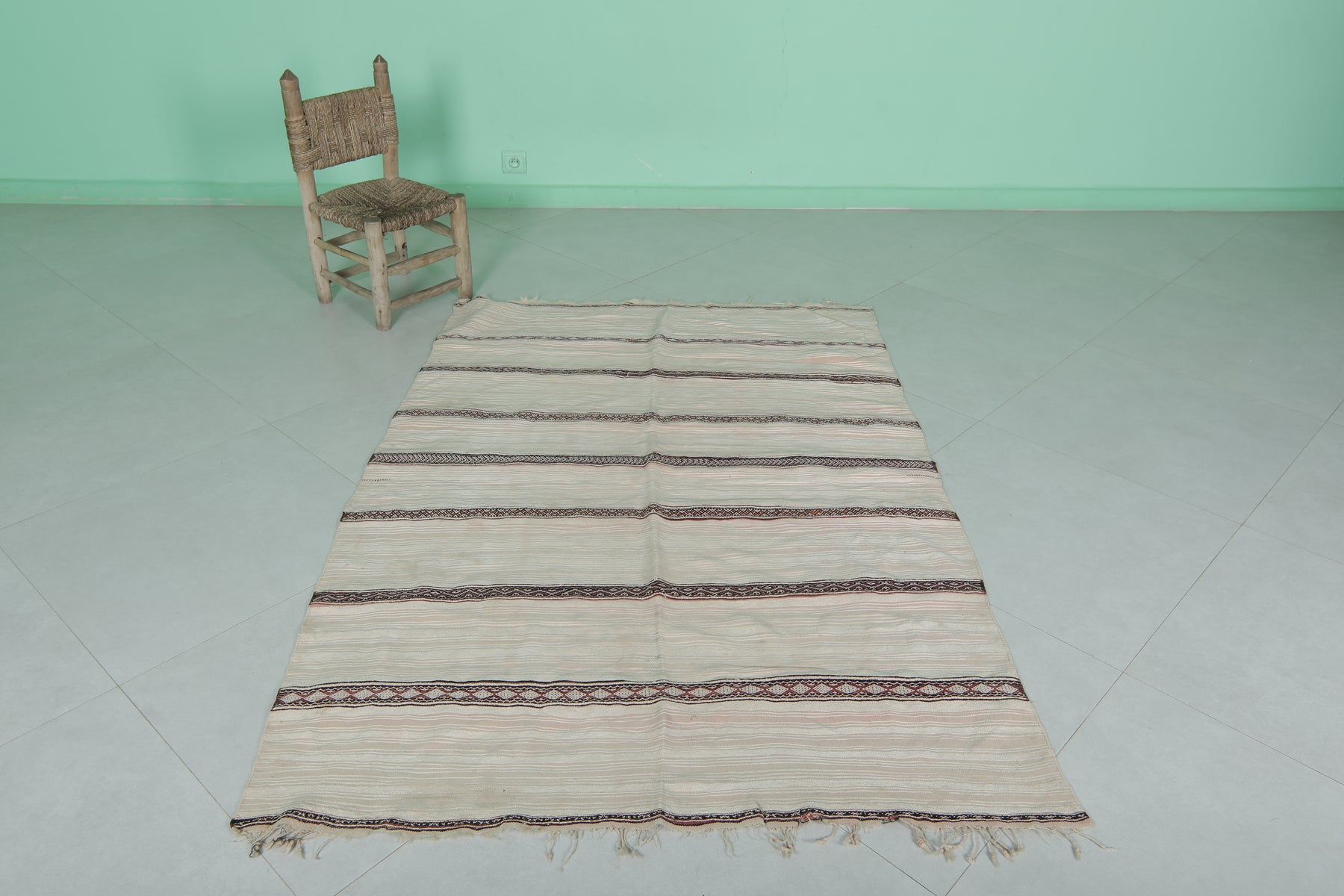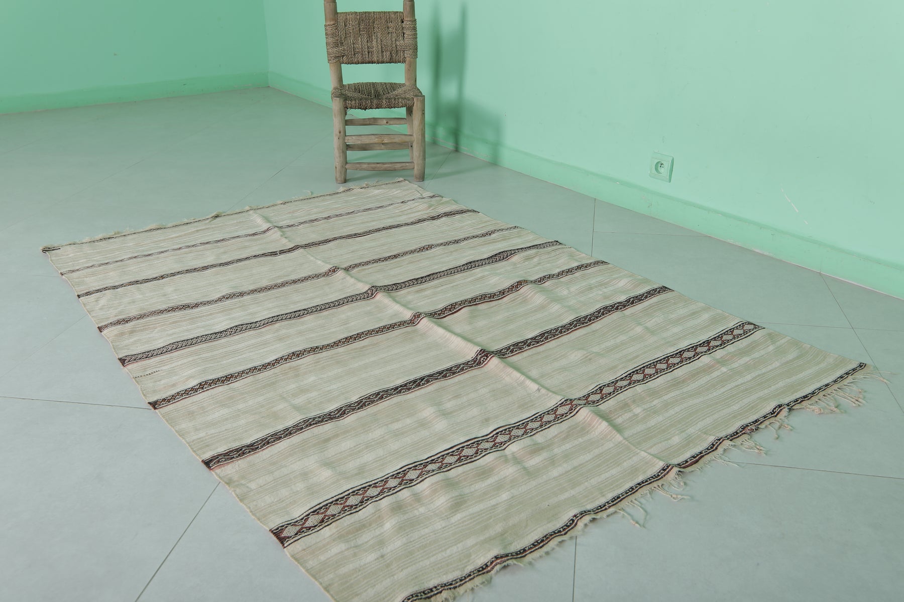Handwoven Kilim Rug - 4.1 FT X 6 FT | Neutral Tones and Berber Stripes