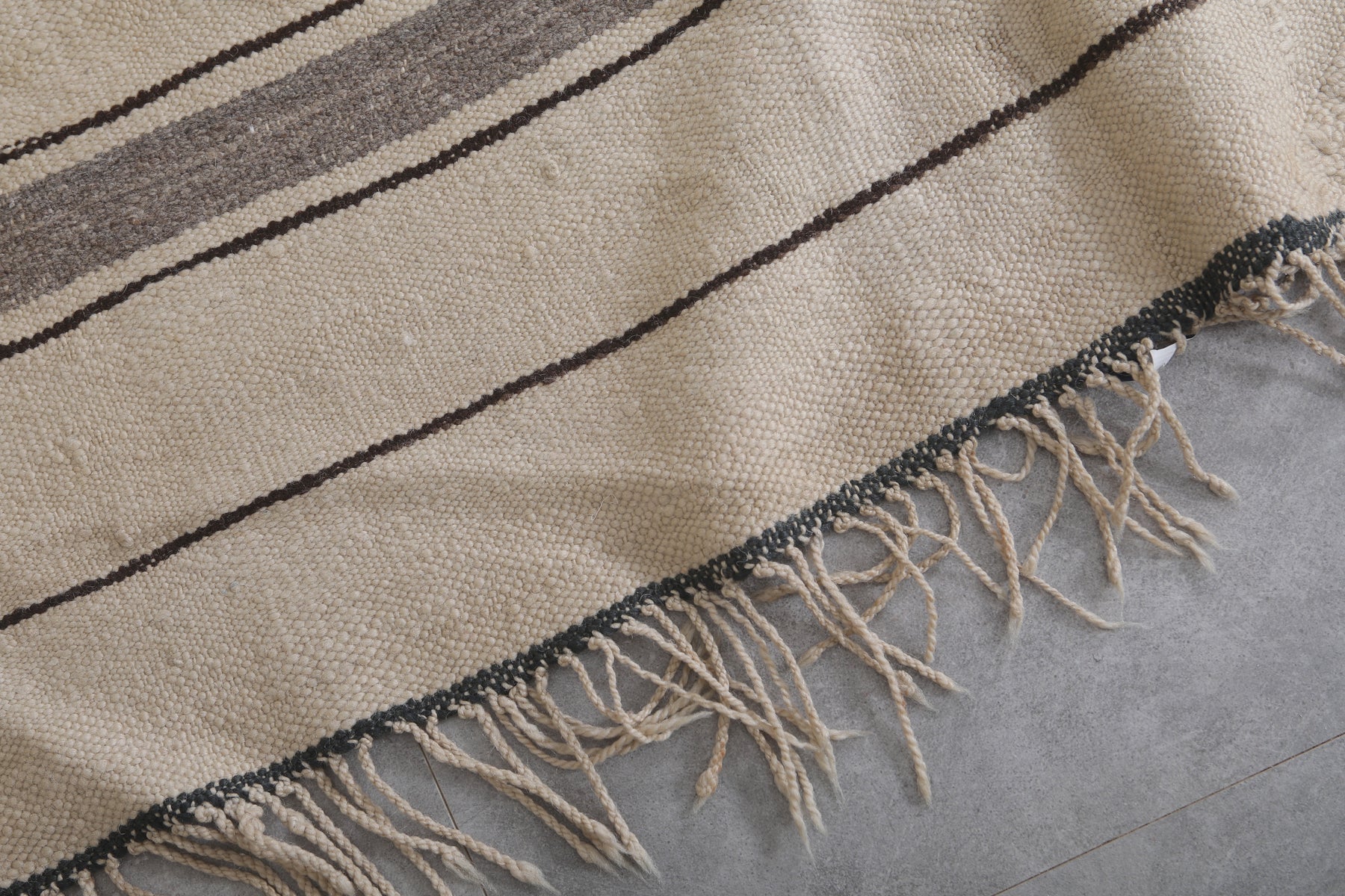 The Dimensions of this Handwoven kilim rug does not include tassels.