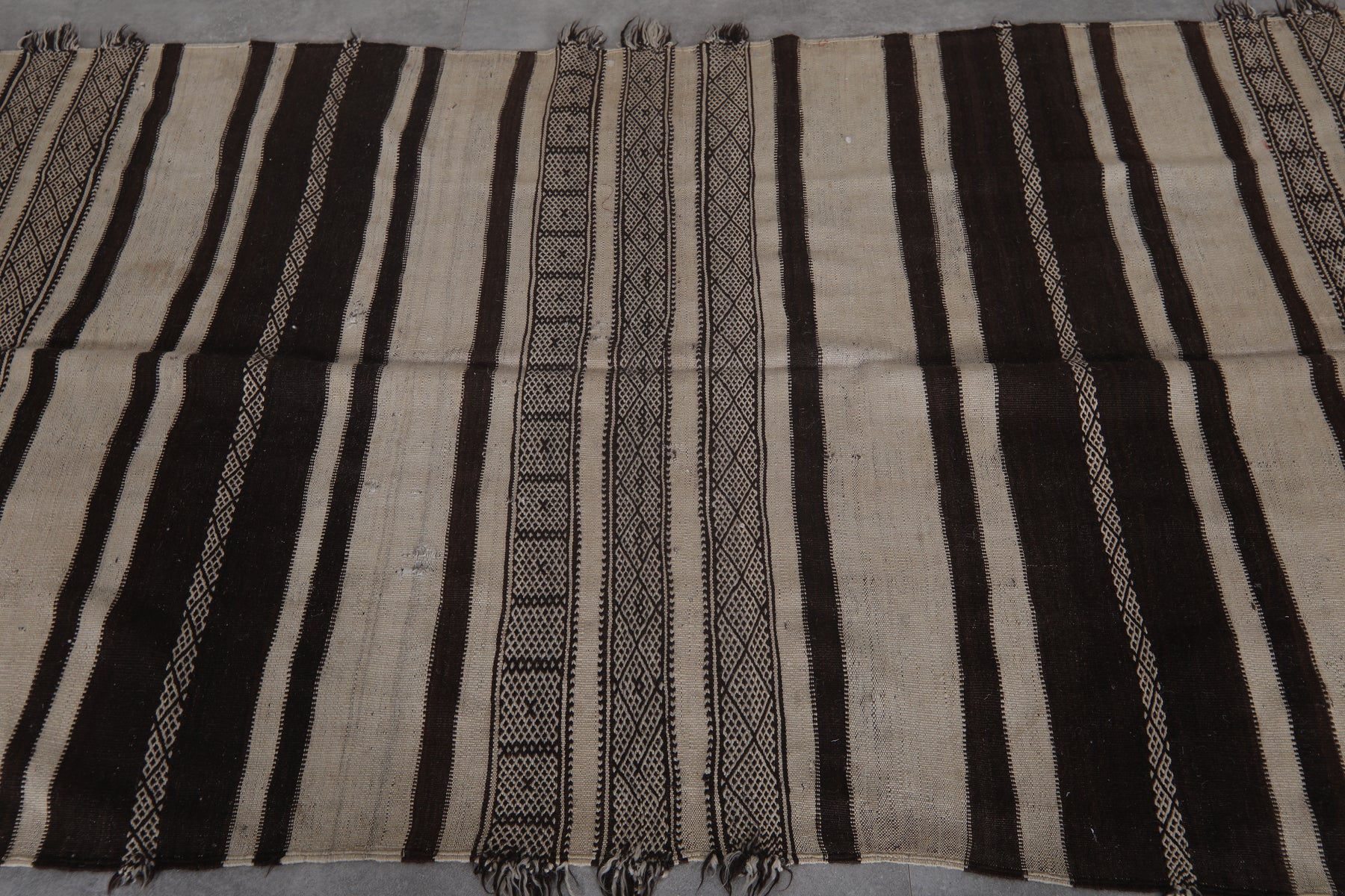 Handwoven Kilim Rug - Black and Cream Stripes 4.3 FT X 11.1 FT - Handwoven Kilim