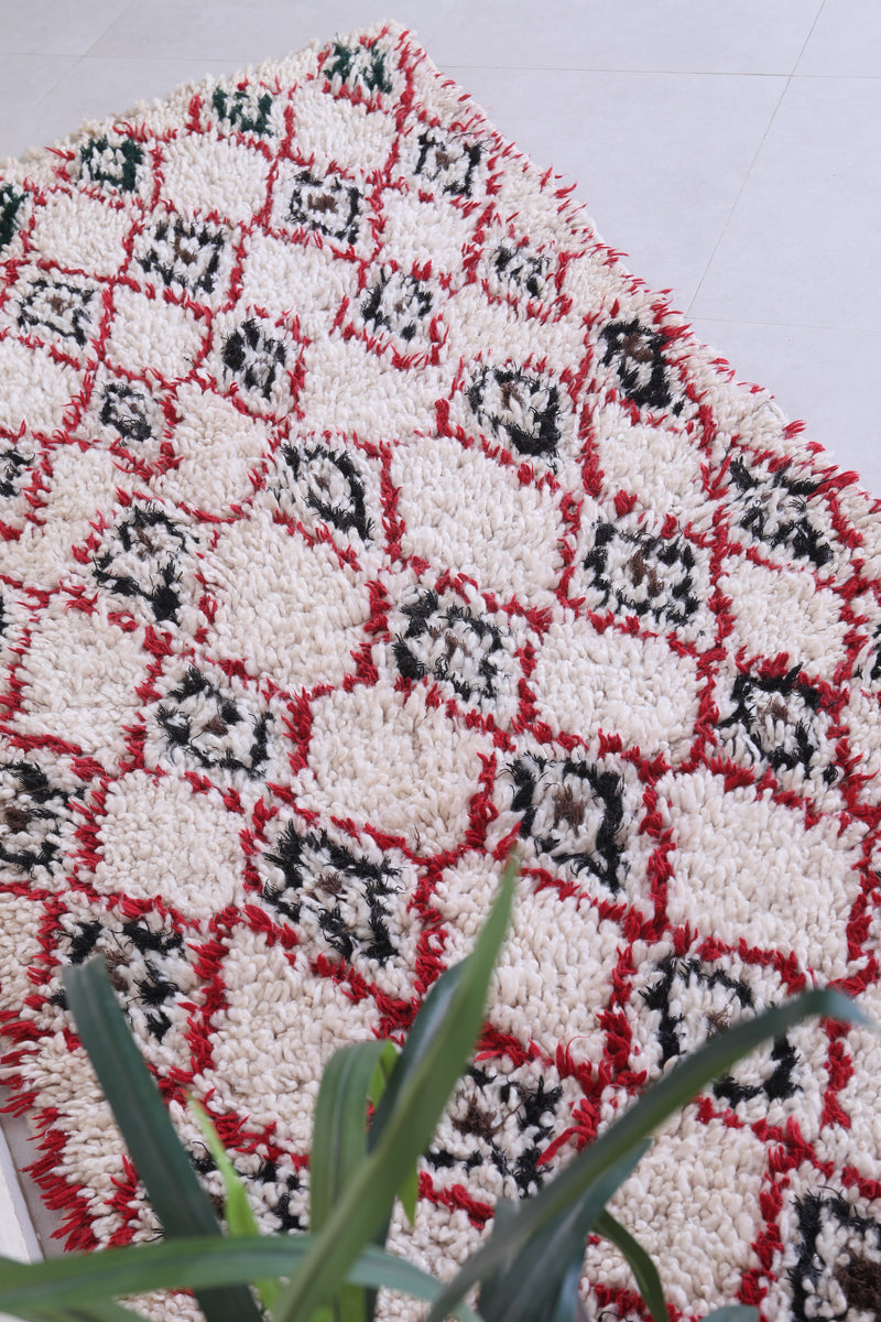 Transform your space with this Handwoven Long Moroccan Shag Rug, measuring 3.4 x 8.4 FT. Featuring bold red and black diamond motifs on a soft ivory background, this plush rug brings warmth, texture, and timeless Berber artistry—perfect for hallways, bedrooms, or cozy bohemian nooks.