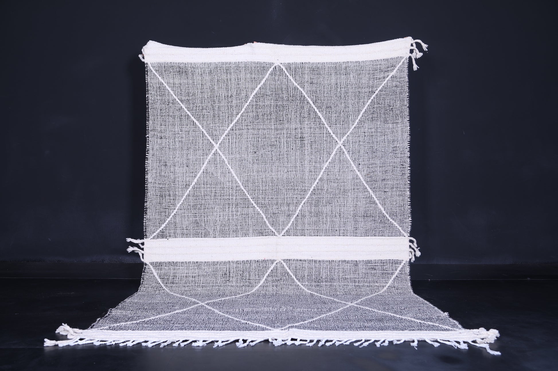 Sleek, modern, and effortlessly stylish—our Flatwoven Black & White Moroccan Rug is a minimalist dream. Handwoven by skilled artisans, this rug features a crisp diamond lattice design in white over a rich black base, creating a timeless geometric pattern that complements both contemporary and traditional spaces.