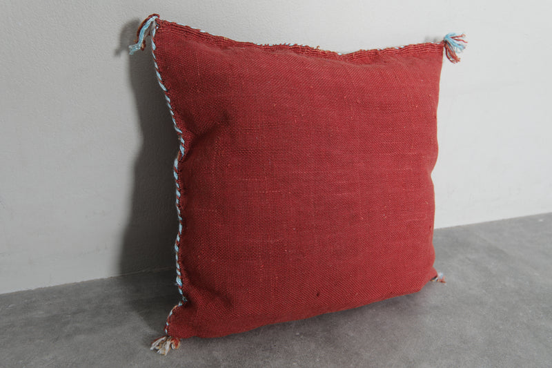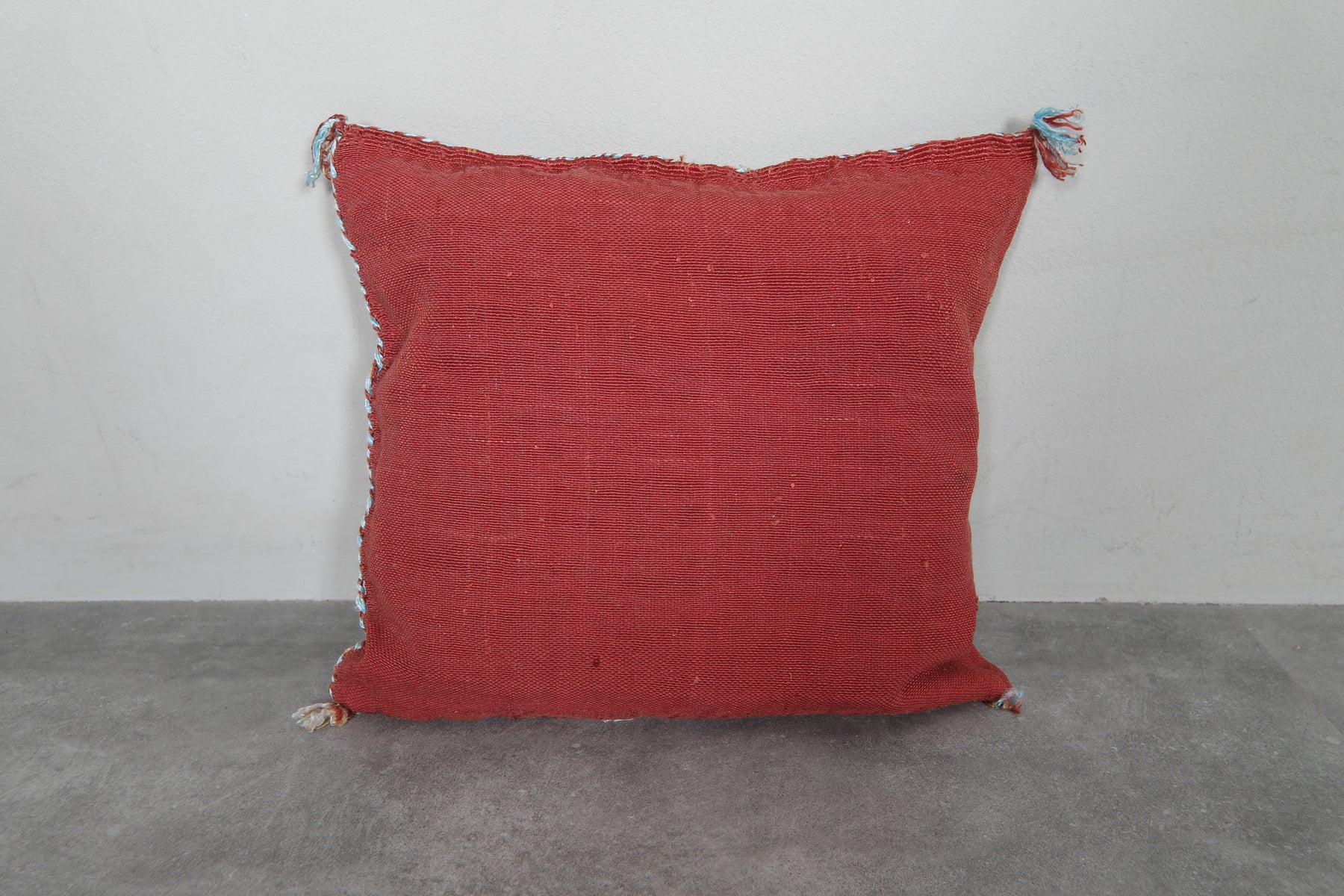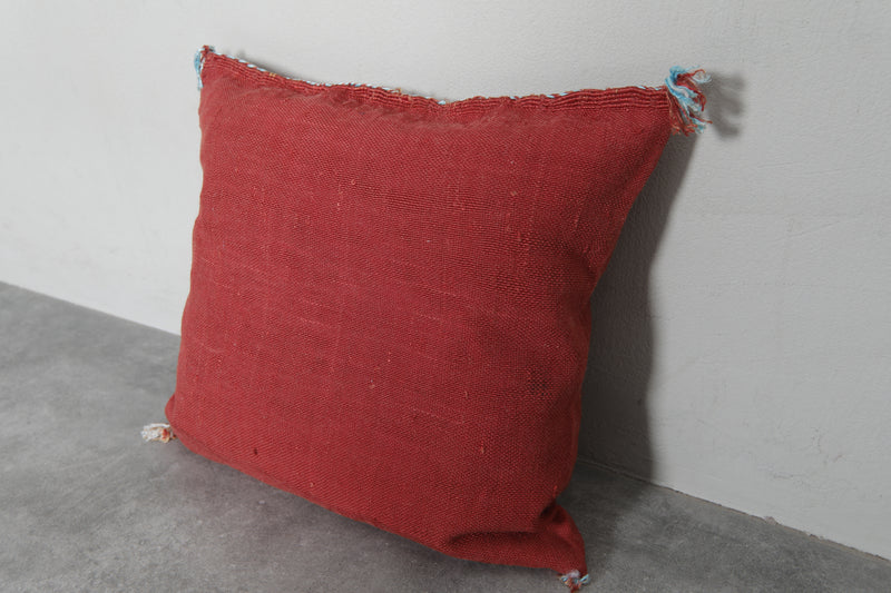 Bring Moroccan elegance and artistry into your space with this handwoven kilim pillow cover. Crafted by skilled Berber artisans, it features traditional weaving and intricate embroidery that create a rich, textured wool surface. The slightly square shape adds a unique touch, perfect for sofas, beds, or accent chairs.