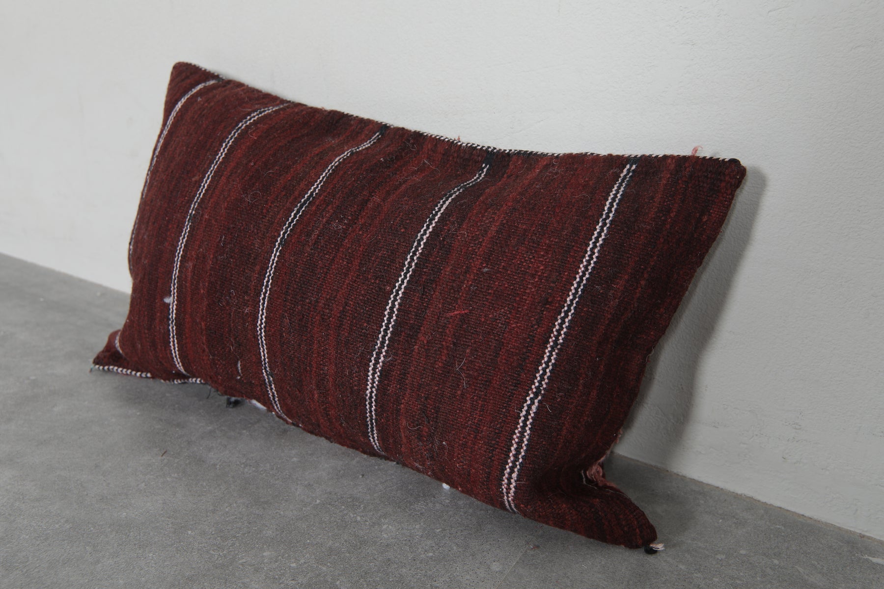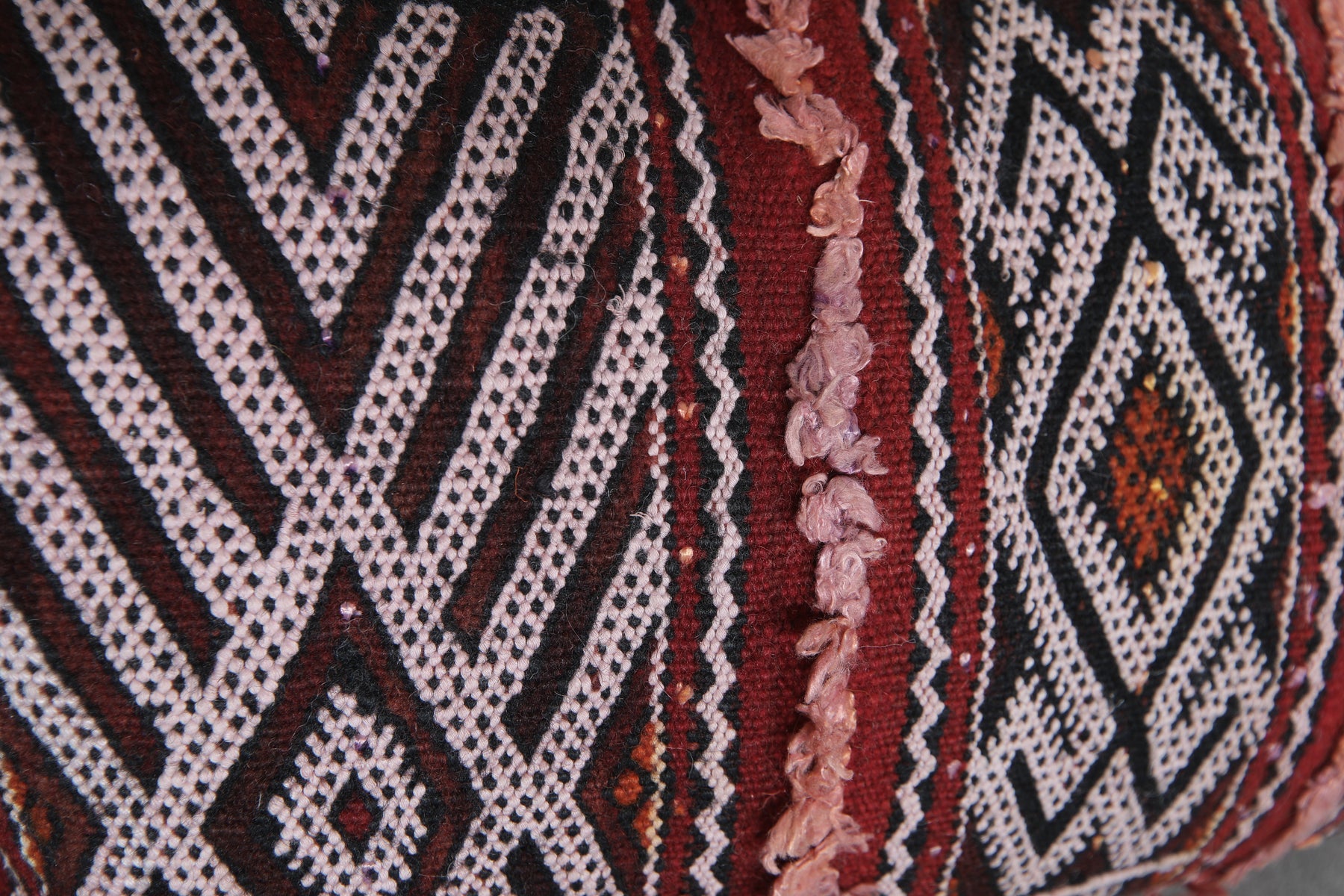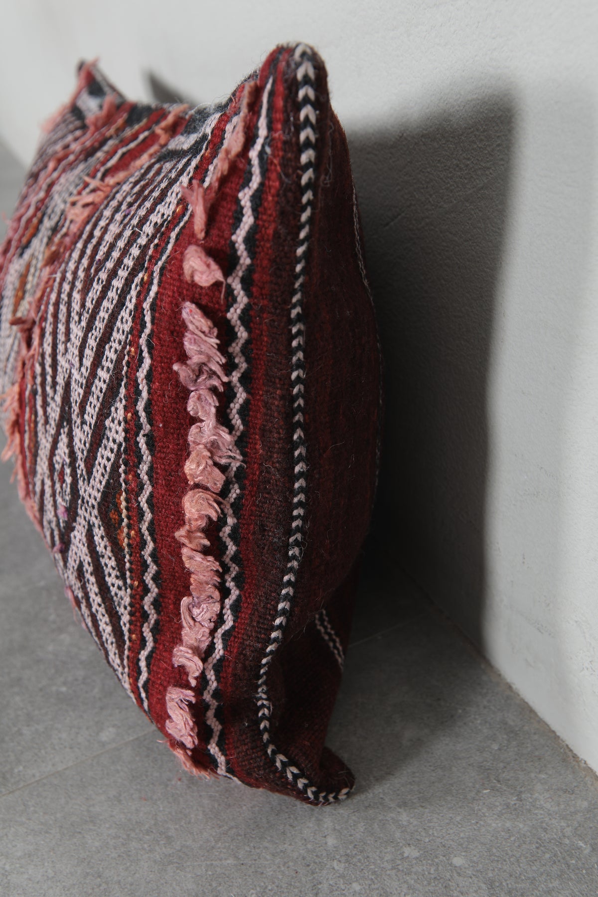 Bring a piece of Moroccan artistry into your home with this beautifully handwoven kilim pillow cover. Made by Berber artisans, it features intricate embroidery and traditional weaving techniques, showcasing a rich wool texture that adds warmth and character to any room. Its rectangular shape is perfect for layering or as a standalone accent on sofas, chairs, or beds.