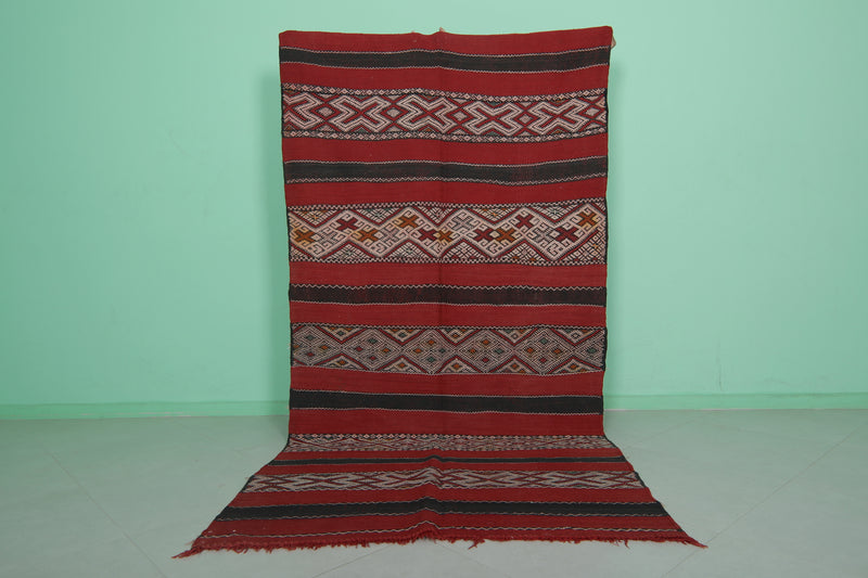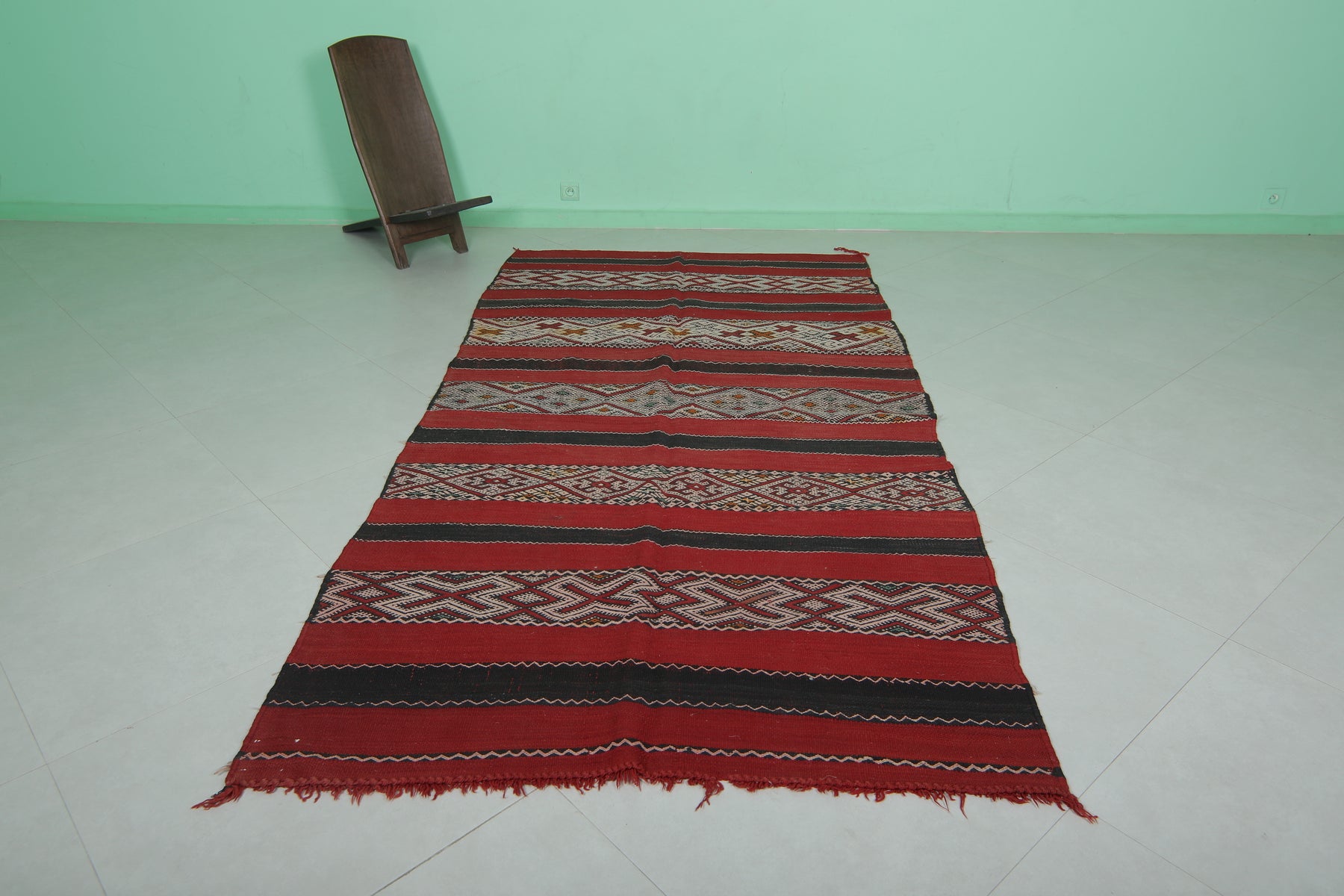 Handwoven Moroccan Kilim Rug - 4.6 FT X 9.2 FT - Berber Patterns - Handwoven Kilim